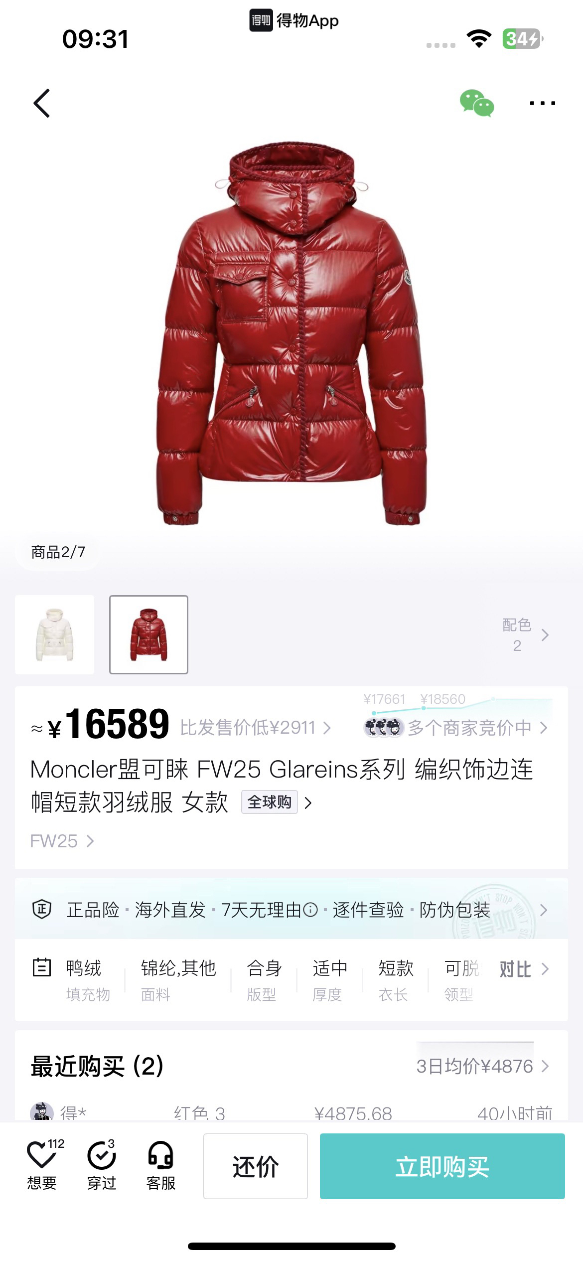 蒙𝐊爆款Glareins新款收腰小蛮腰羽绒服