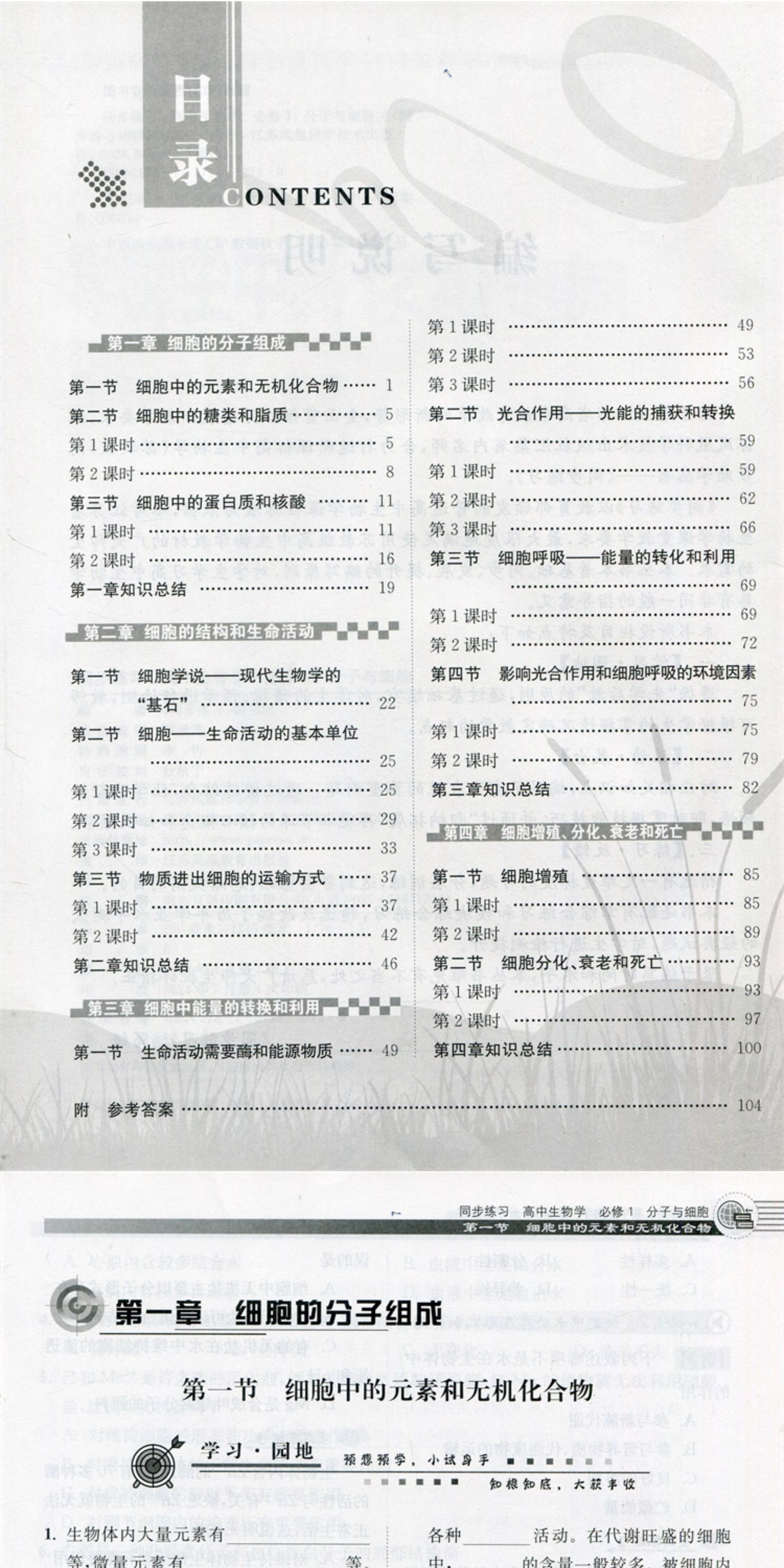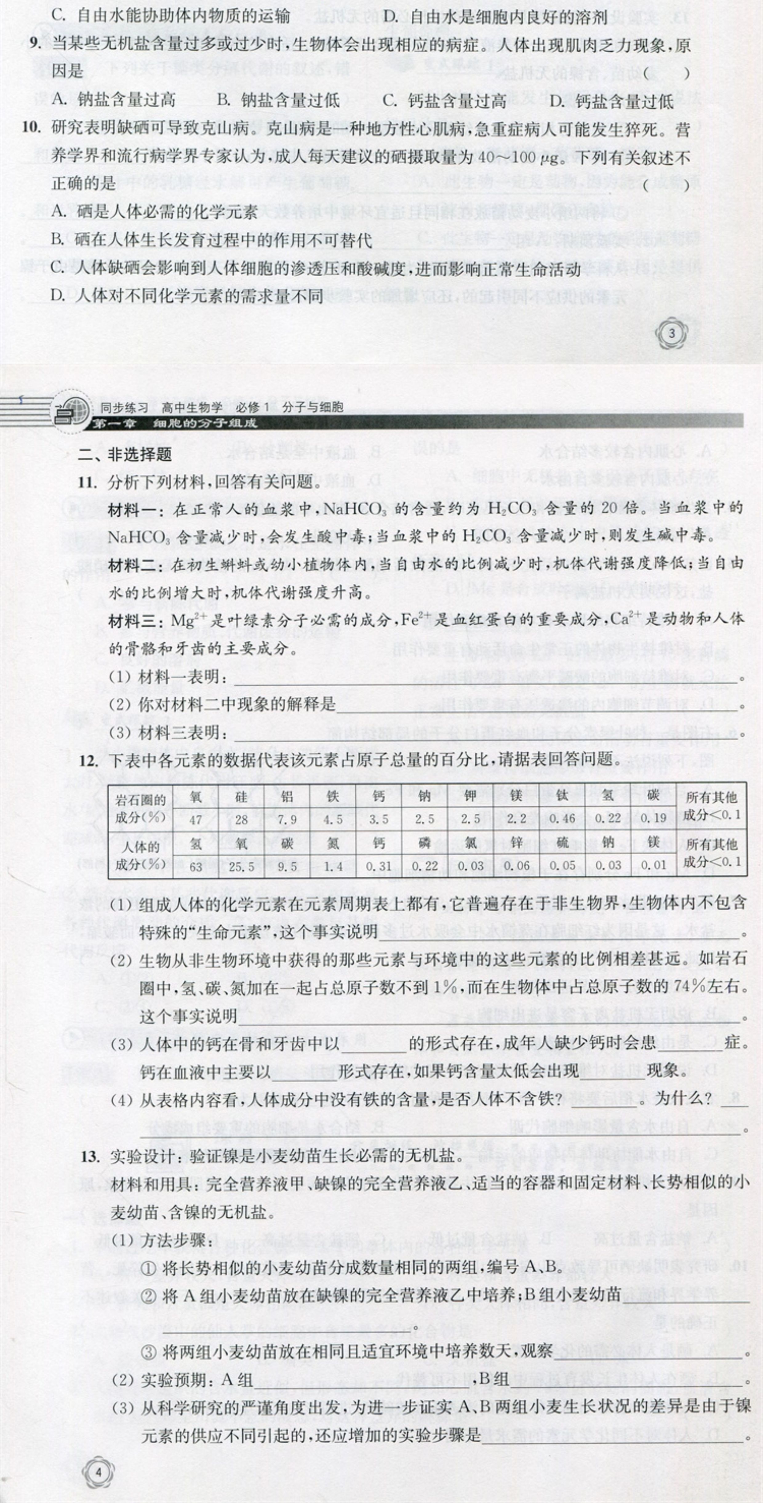 2025年 同步练习 高中生物学 苏教版 必修1 分子与细胞中学教辅