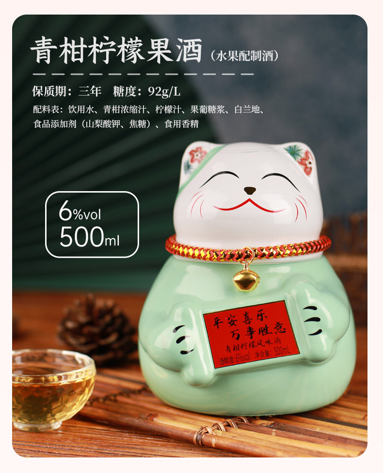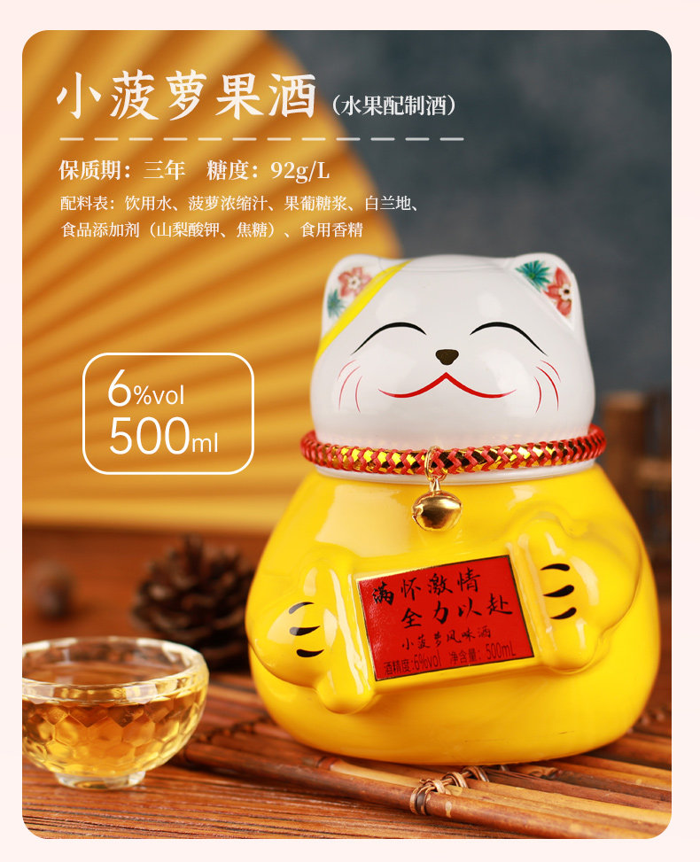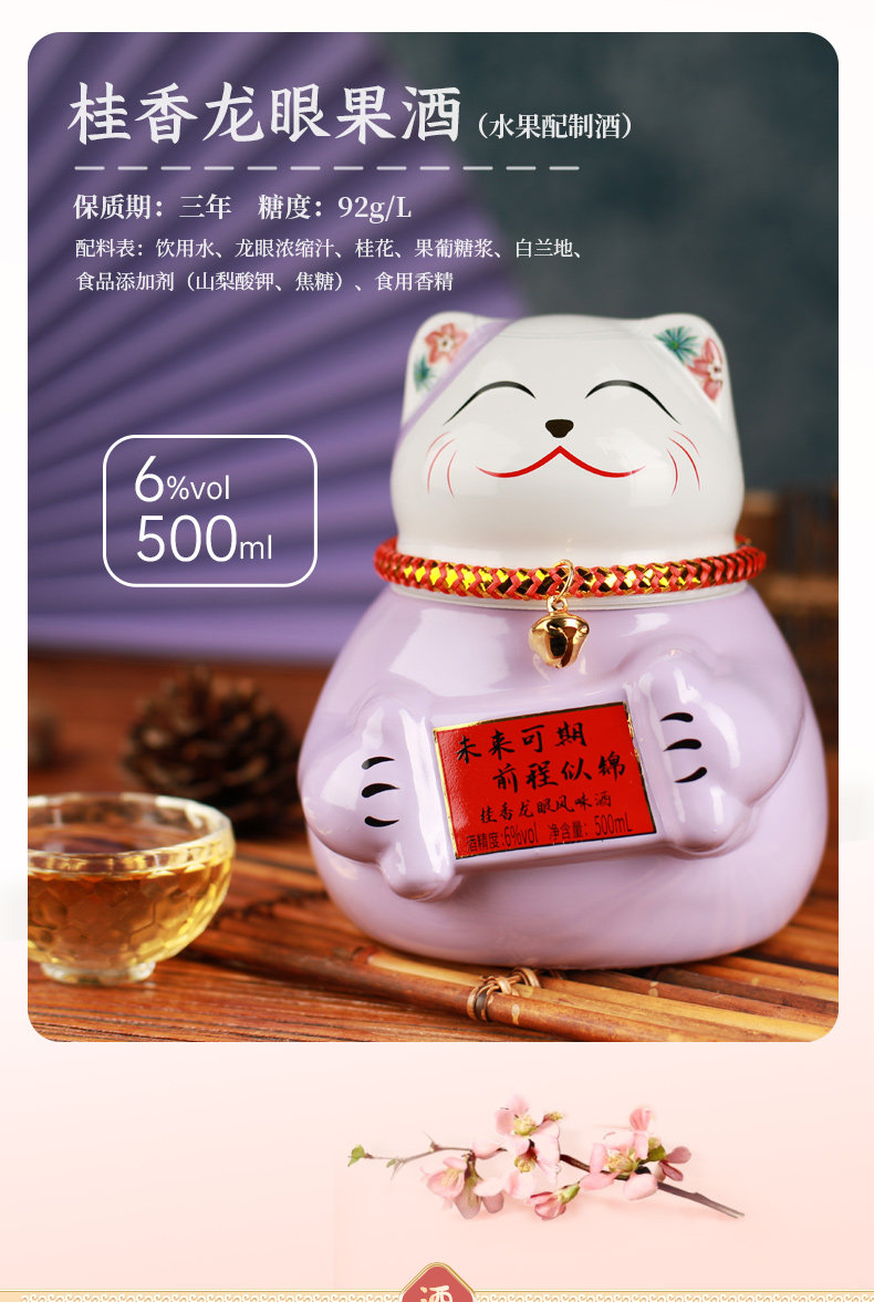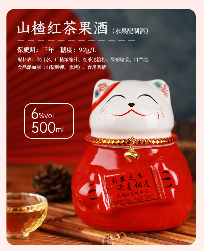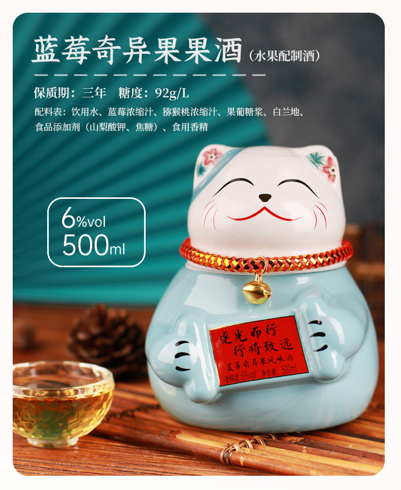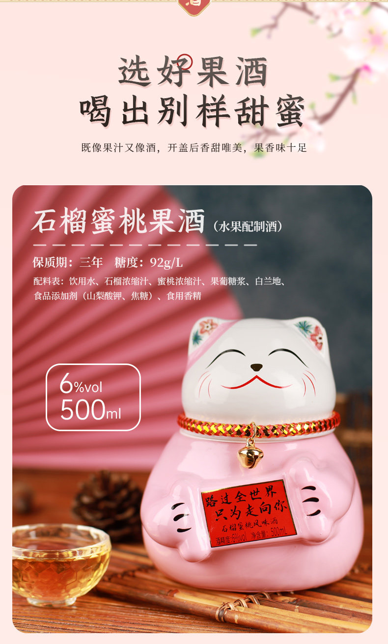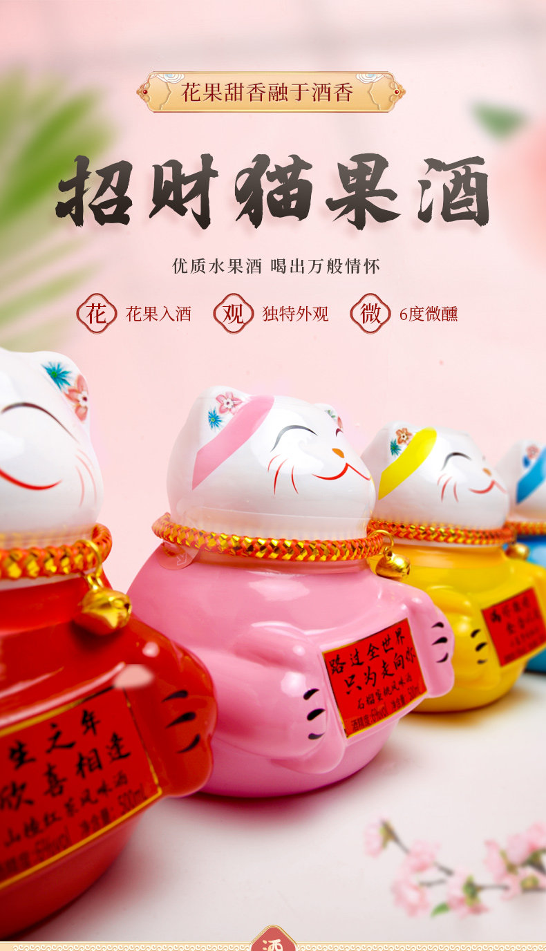 [果酒]招财猫果酒6度500ml微醺甜酒