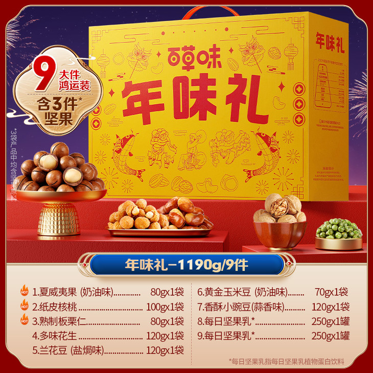 百草味坚果大礼包【年味礼】混合干果礼盒食品网红零食豪华送礼送长辈