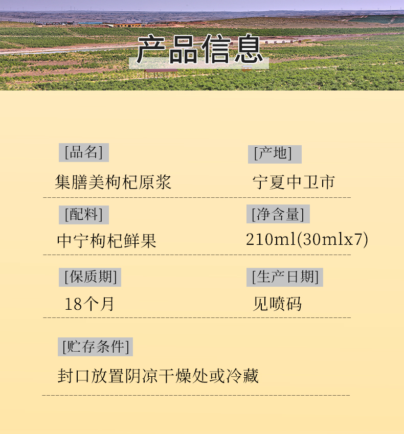 近效发70袋【中宁鲜枸杞原浆]精力差用眼多熬夜气色差保质期至26年1月集膳美30ml*7袋/盒