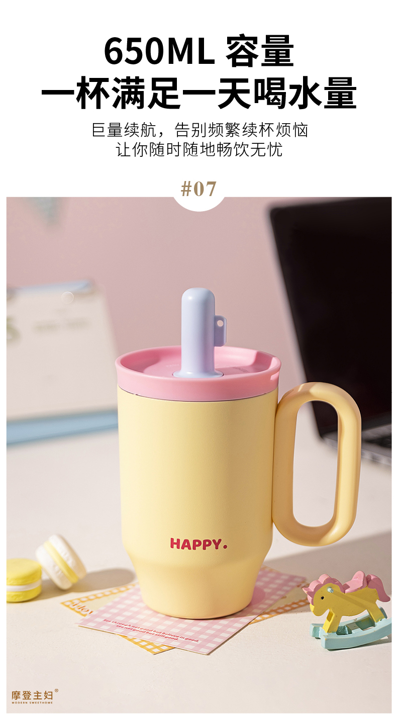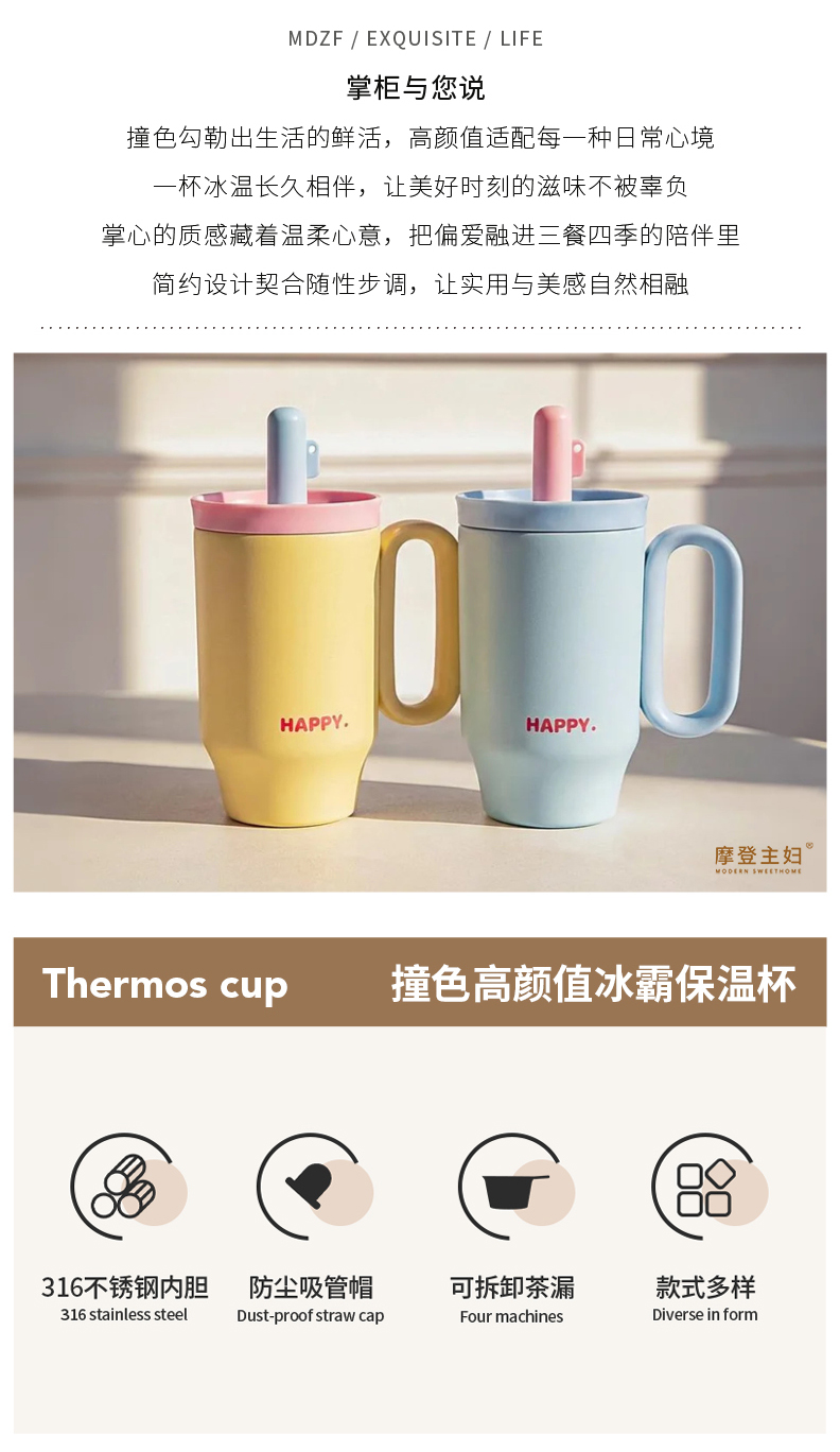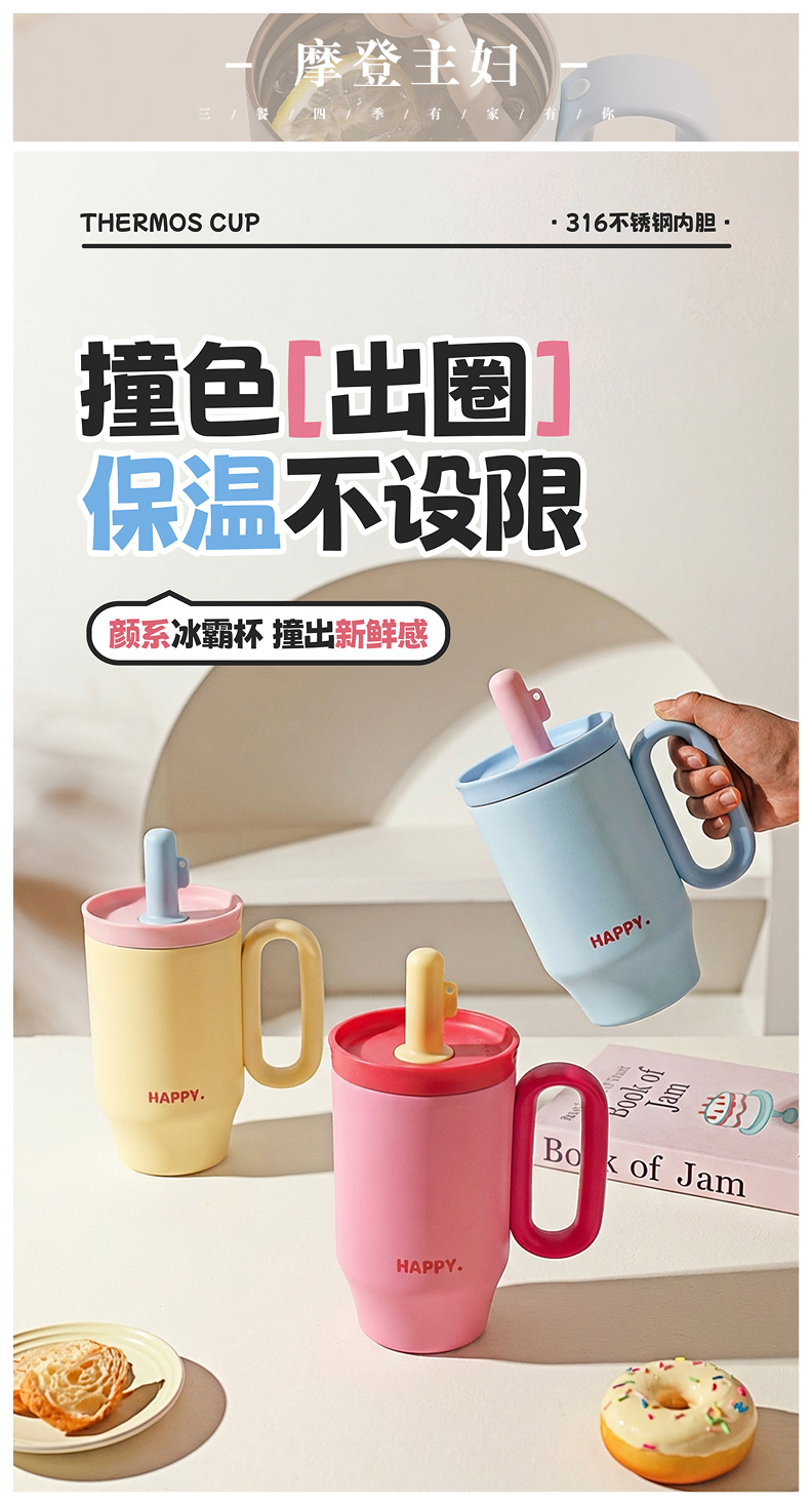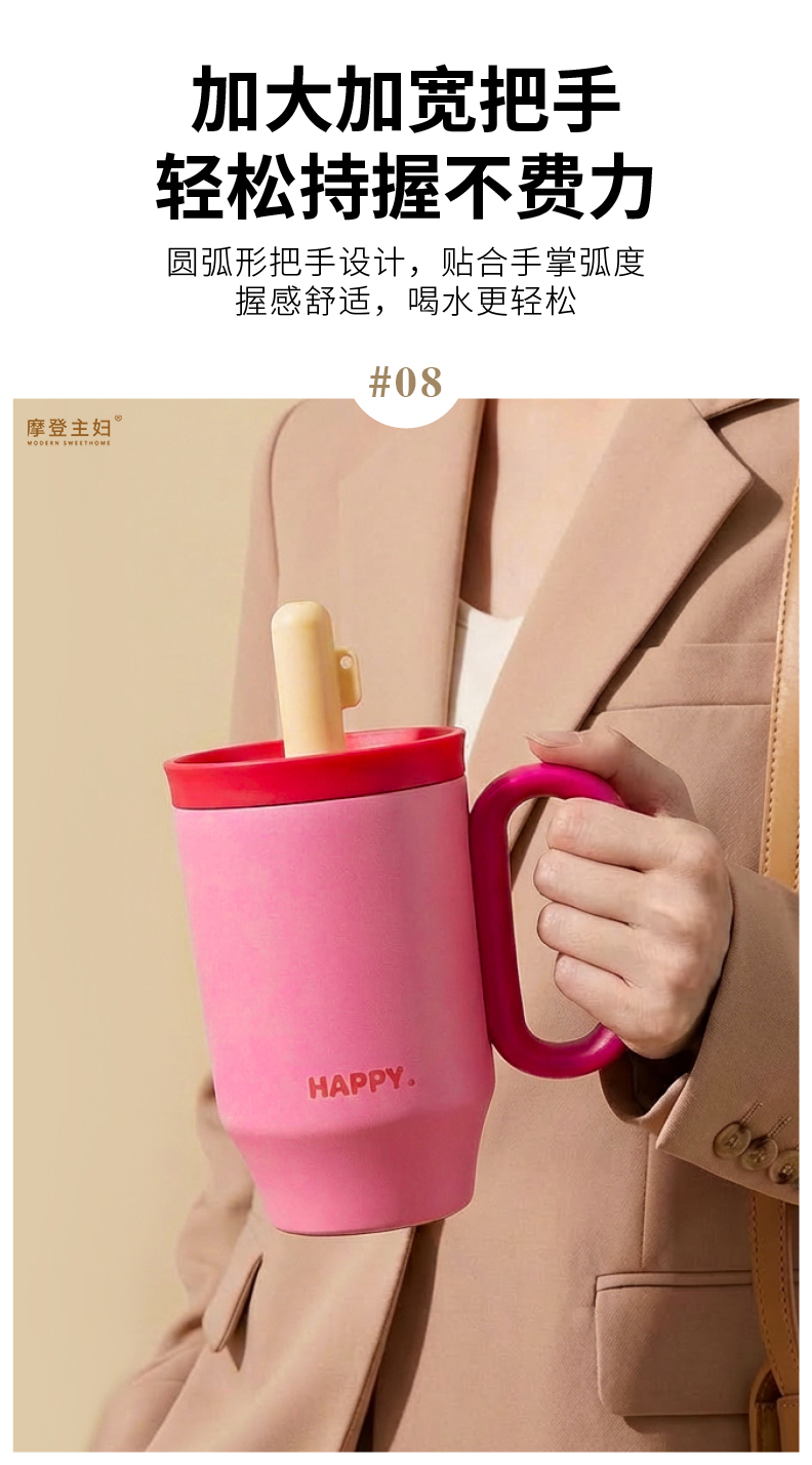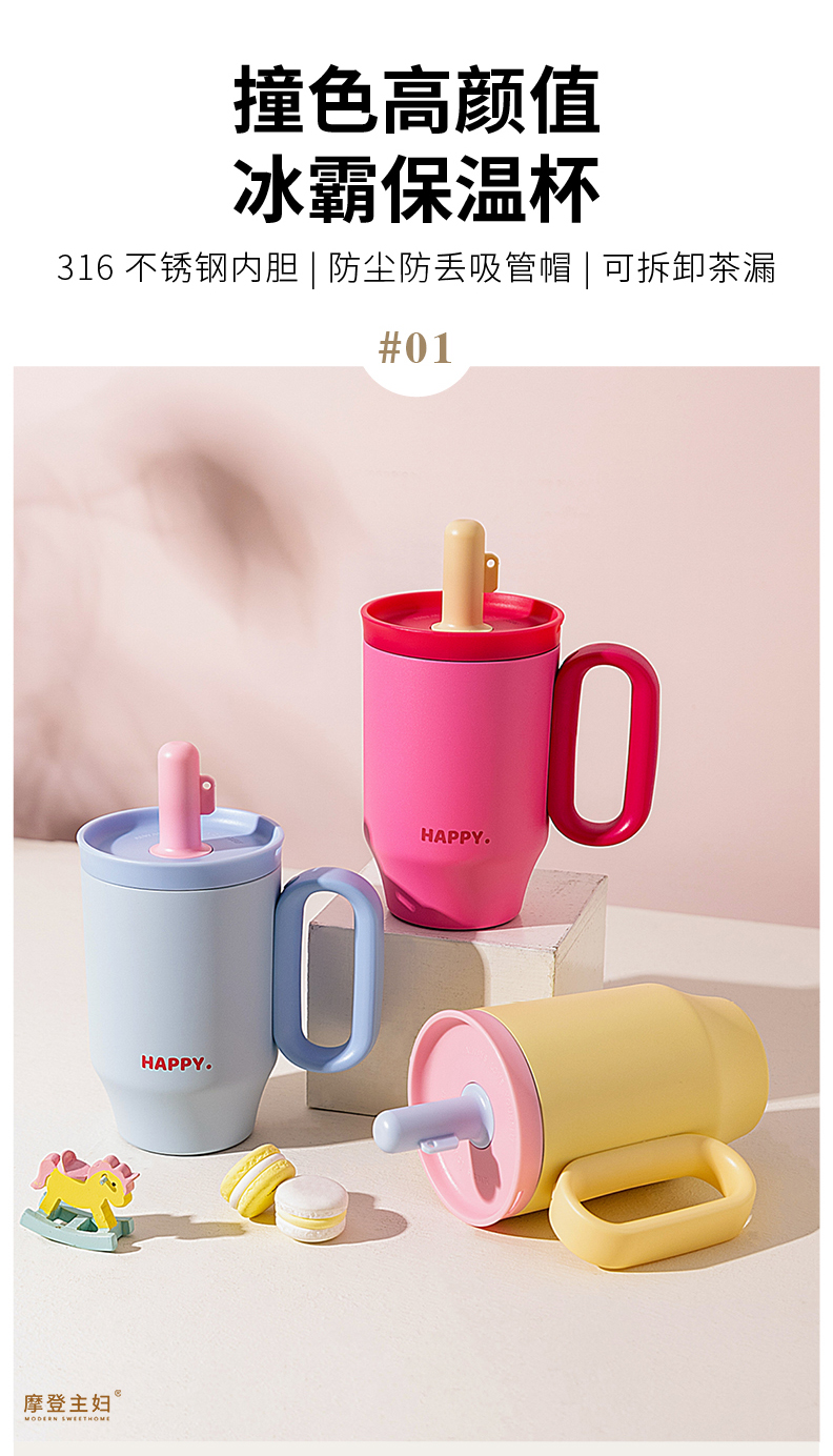摩登主妇保温杯吸管水杯女生高颜值生日礼物咖啡杯子大容量冰霸杯