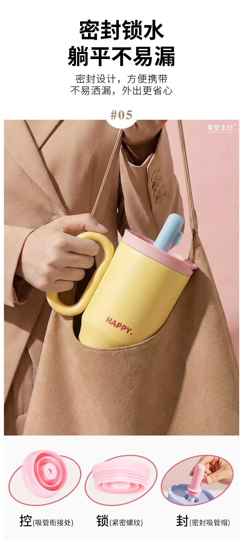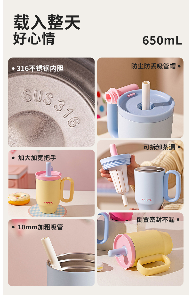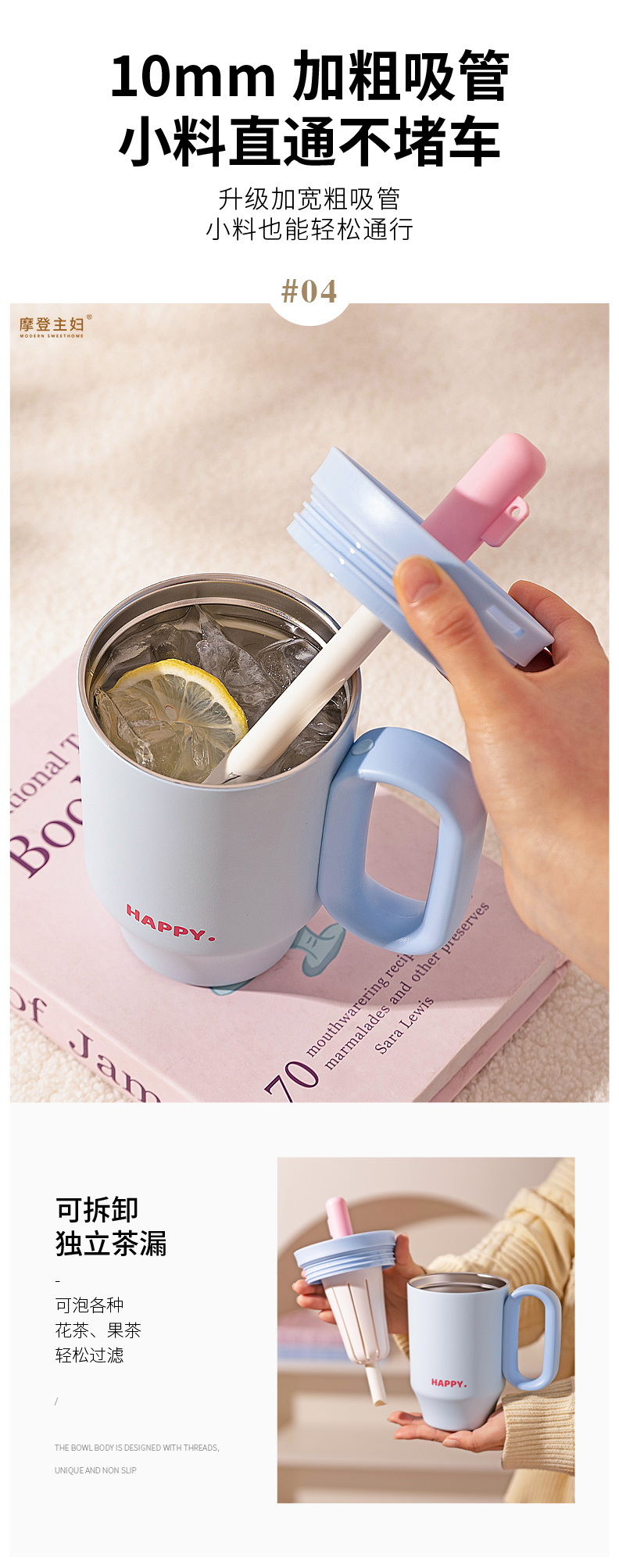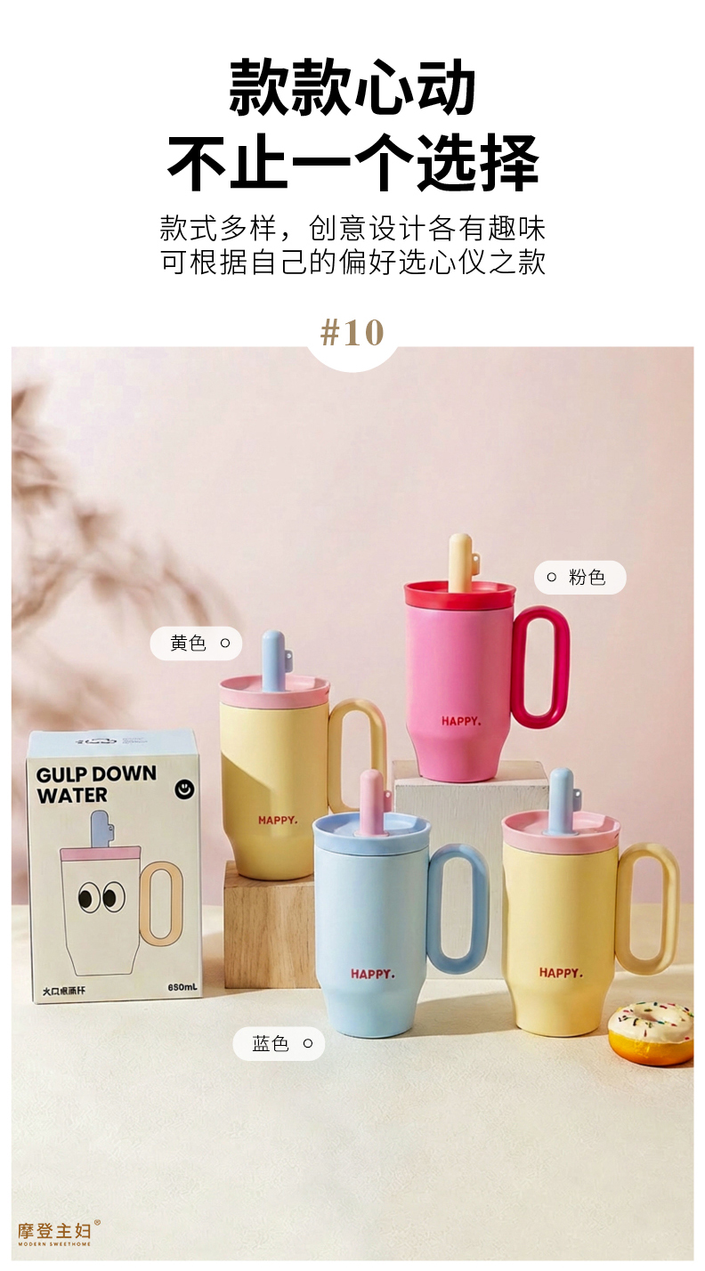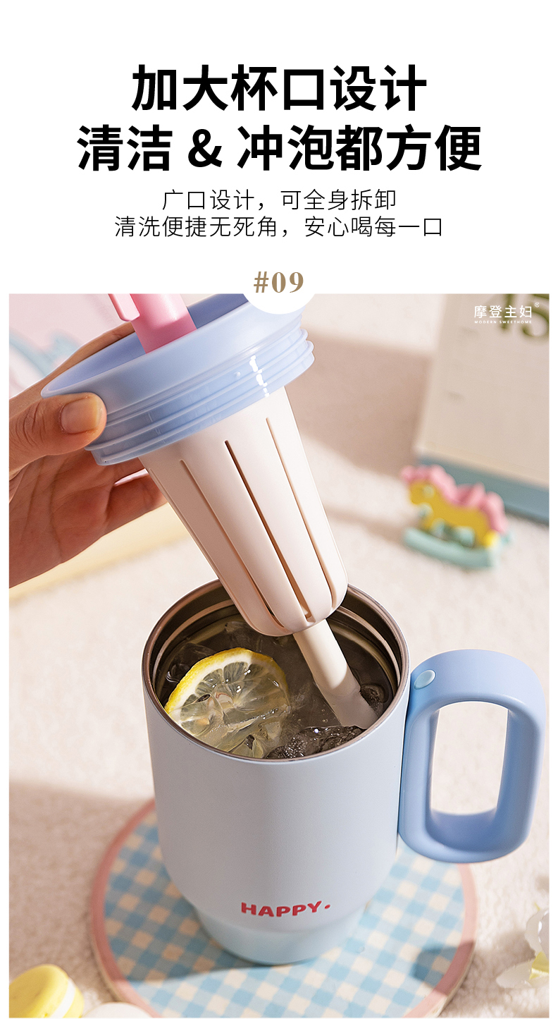 摩登主妇保温杯吸管水杯女生高颜值生日礼物咖啡杯子大容量冰霸杯