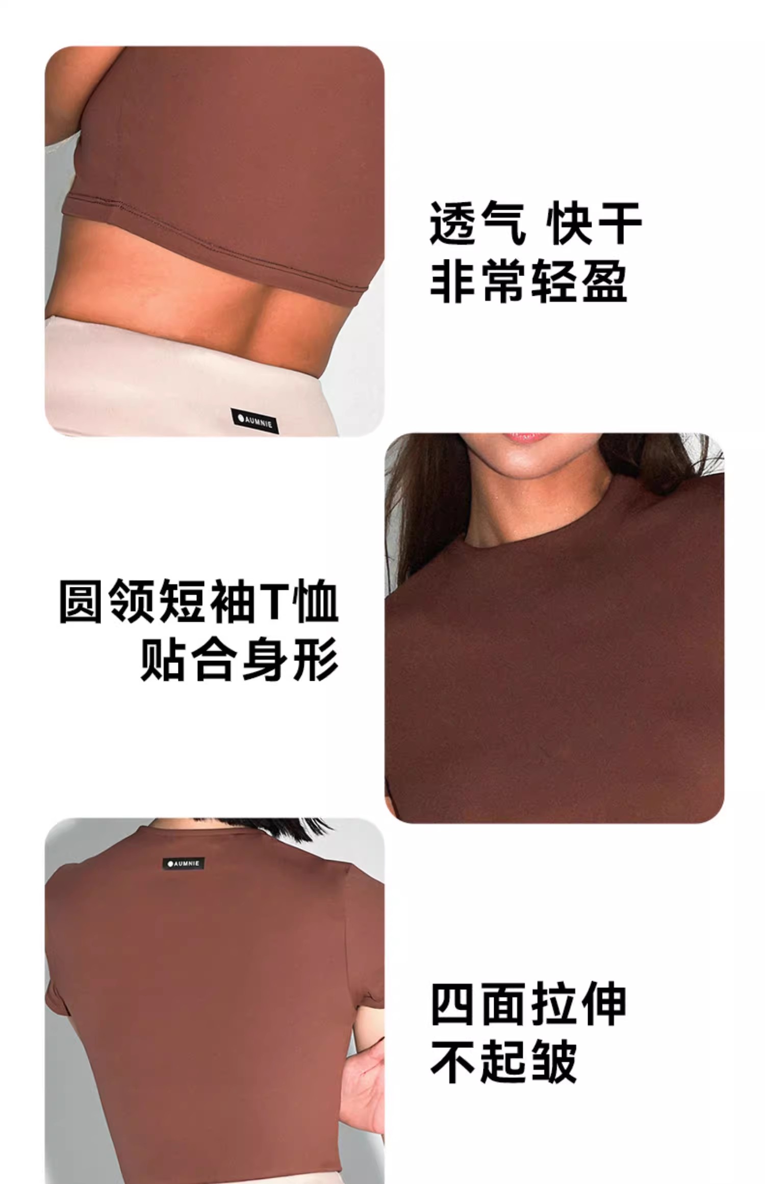 AUMNIE澳弥尼都市短T恤修身短上衣百搭休闲健身运动跑步健身短袖