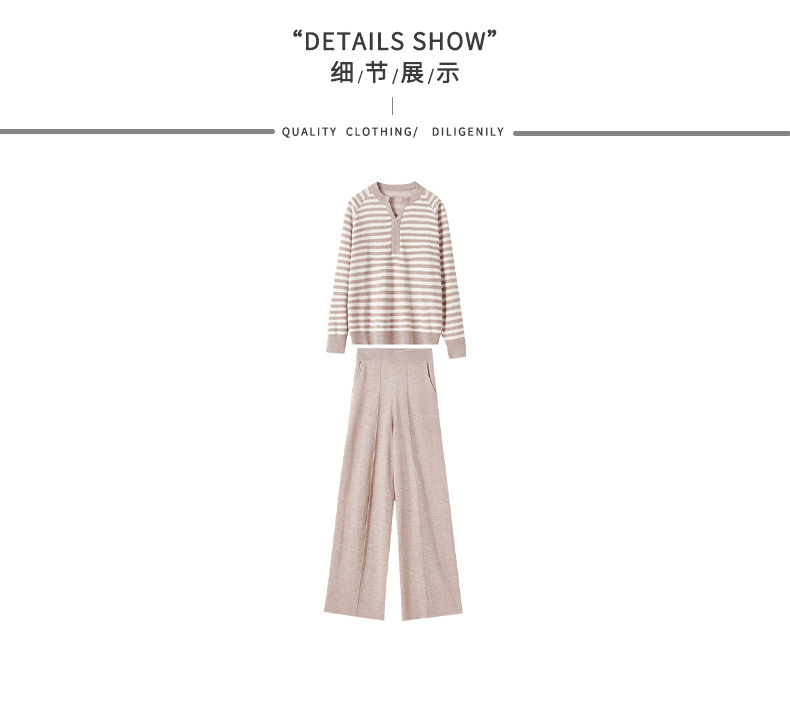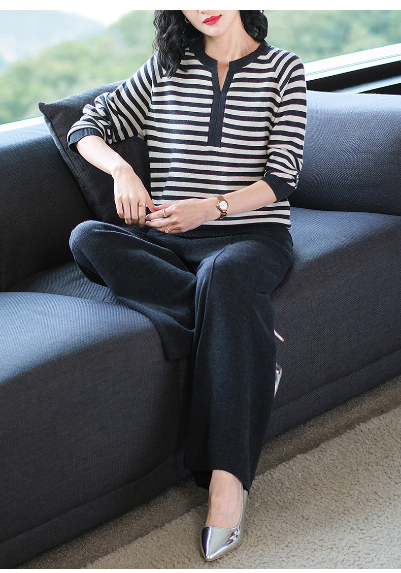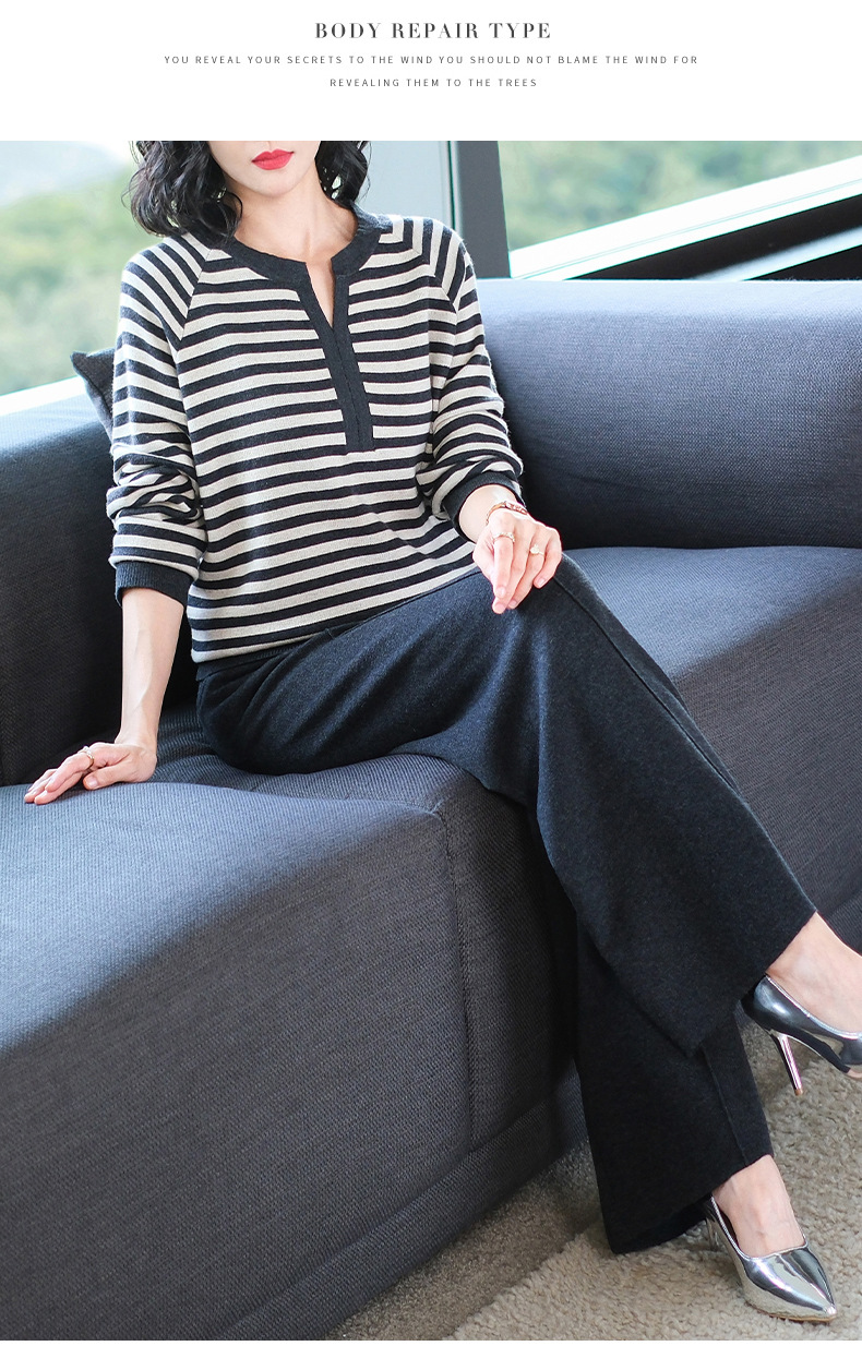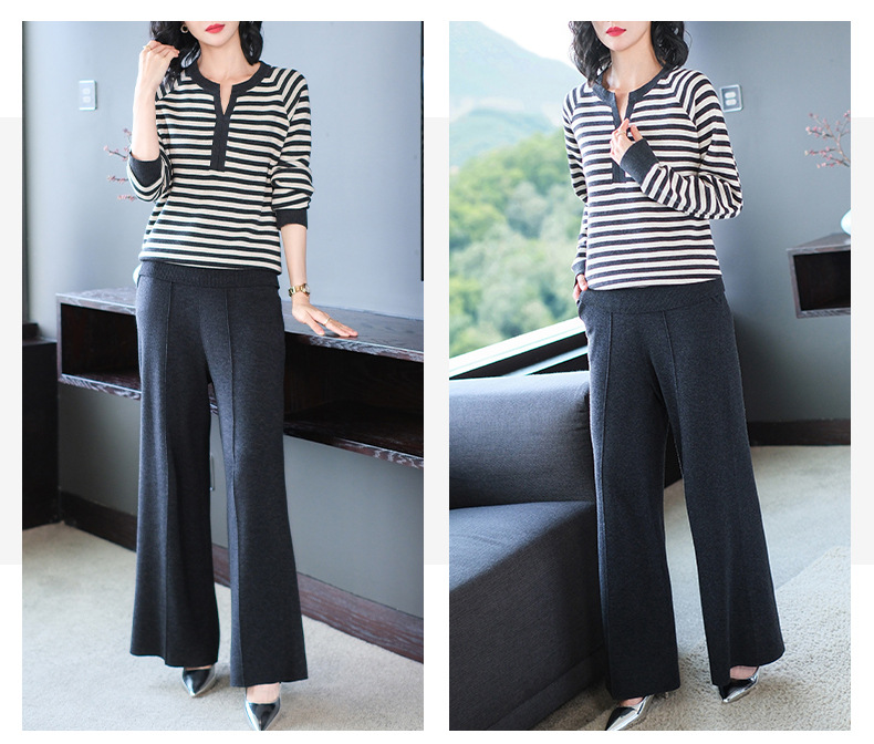 OSL 9321套装时尚洋气横条羊毛上衣阔腿裤两件套针织套装 商品图2