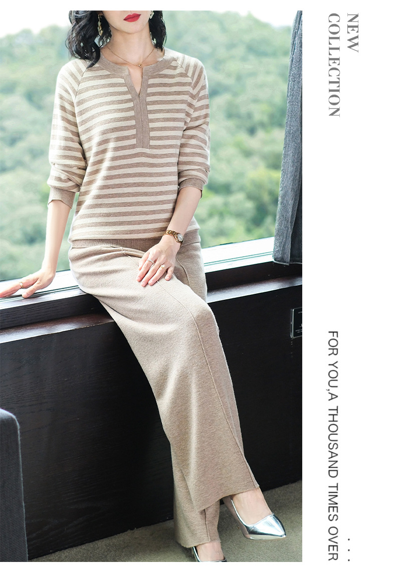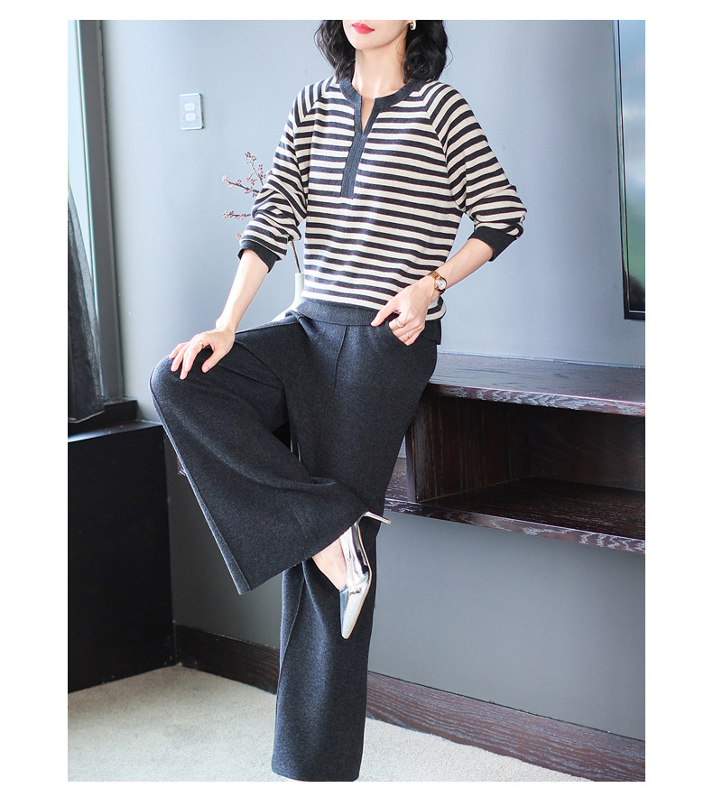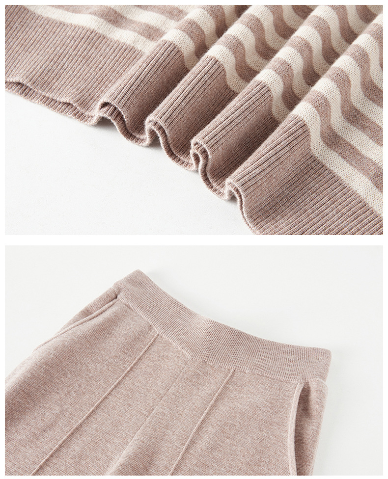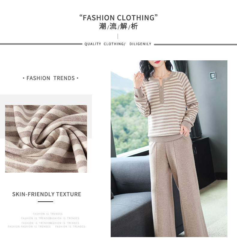 OSL 9321套装时尚洋气横条羊毛上衣阔腿裤两件套针织套装 商品图3
