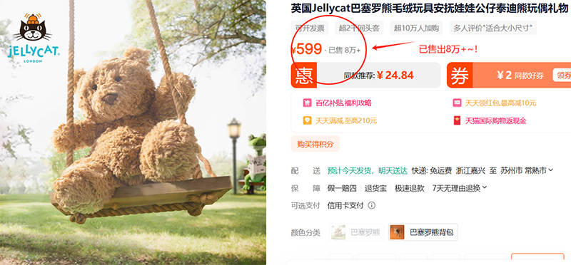 英国Jell*ycat,蕞蕞新,海外柜子售价都在199~599左右,销量超爆