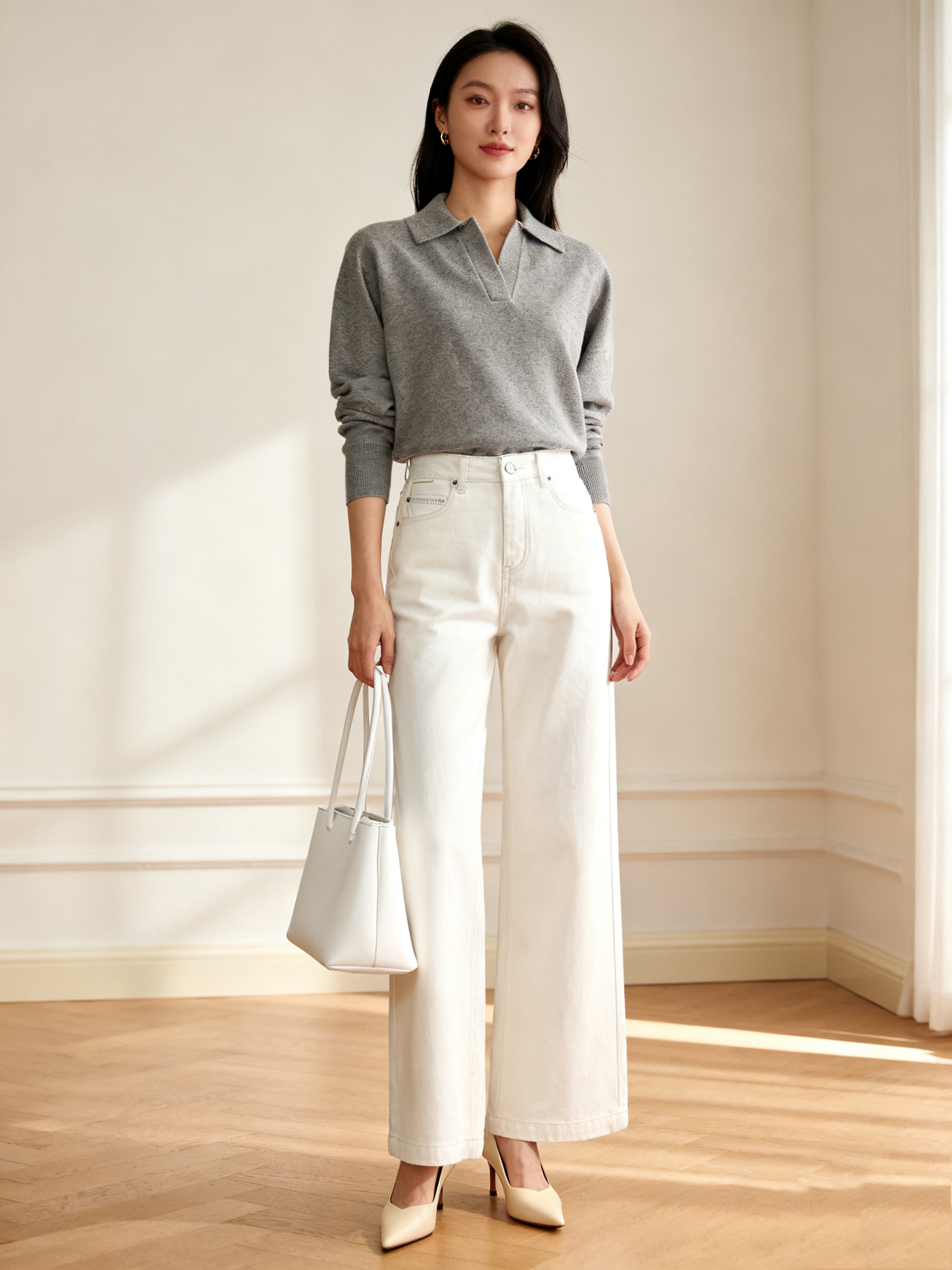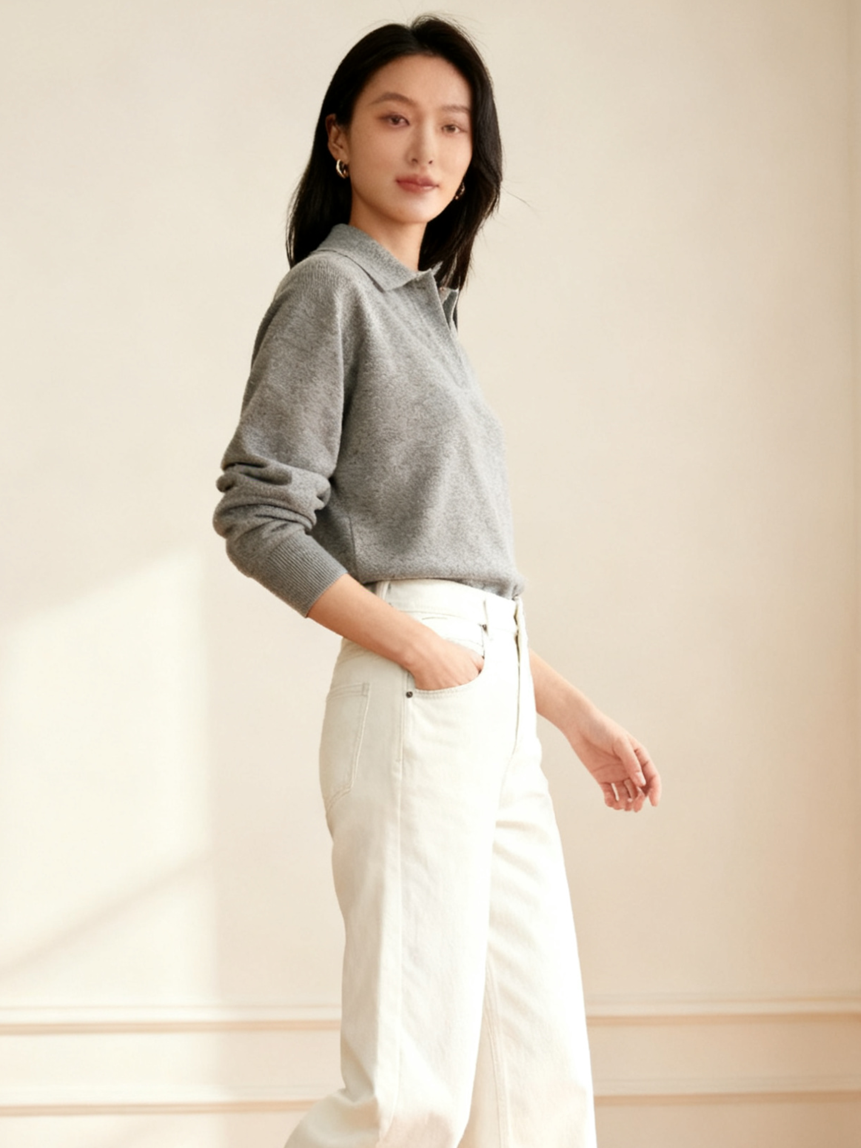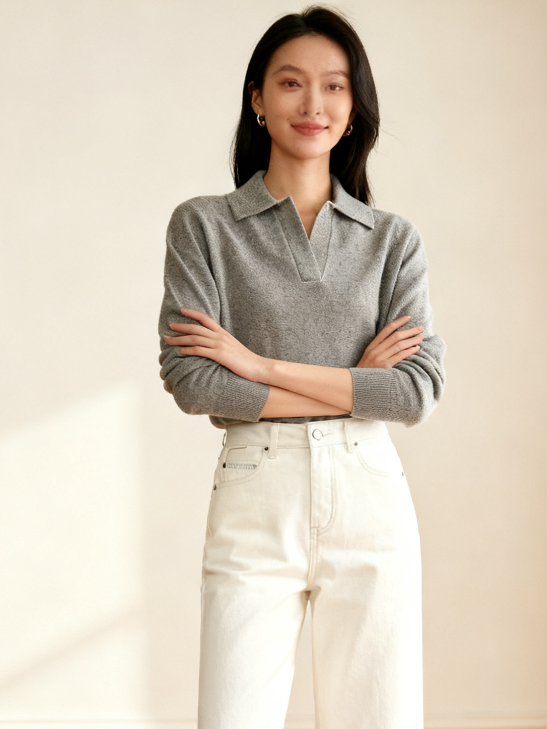 AM路卡西 知性翻领V领针织衫100%羊毛 DF8810033