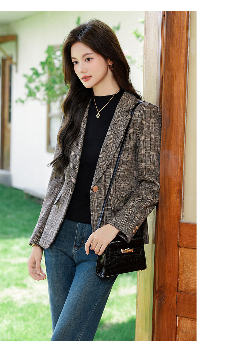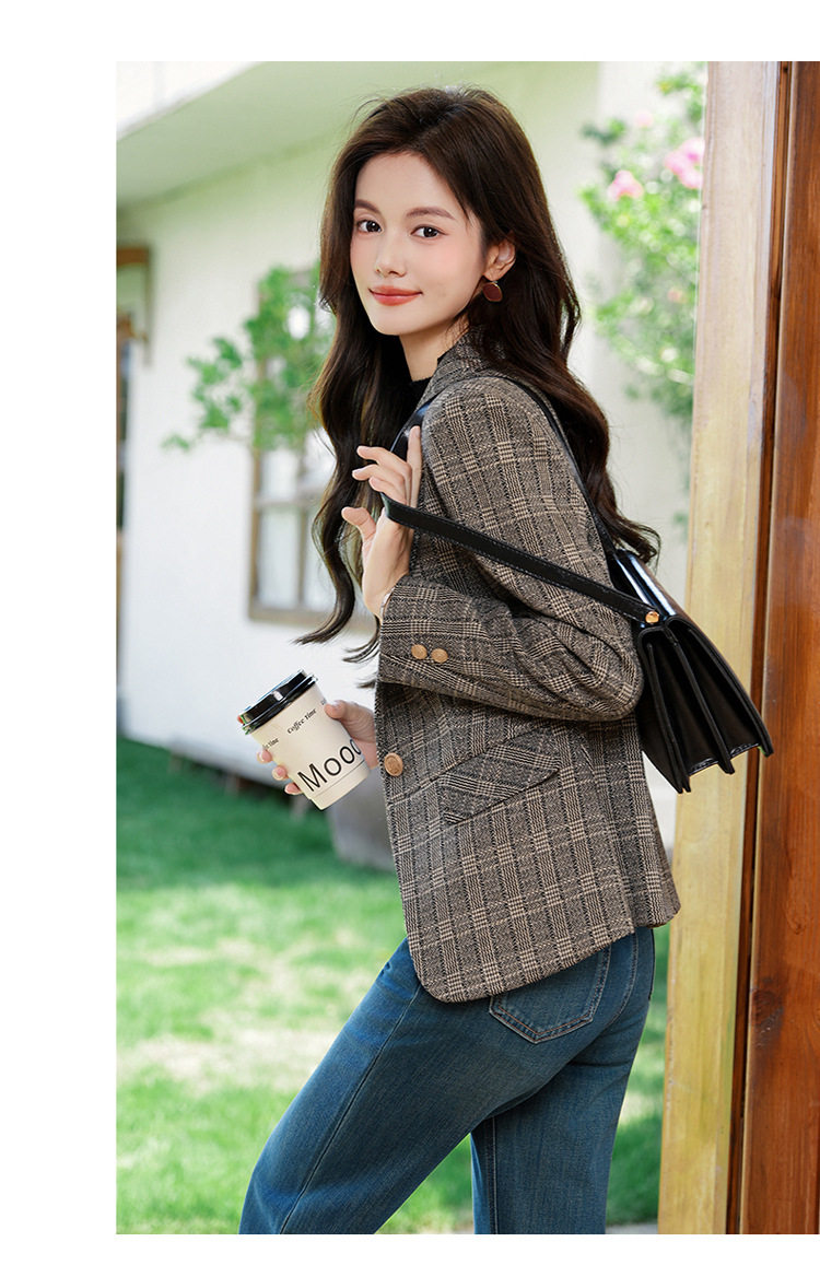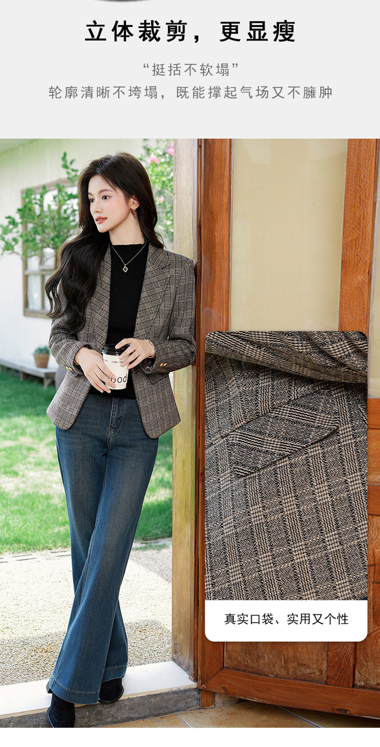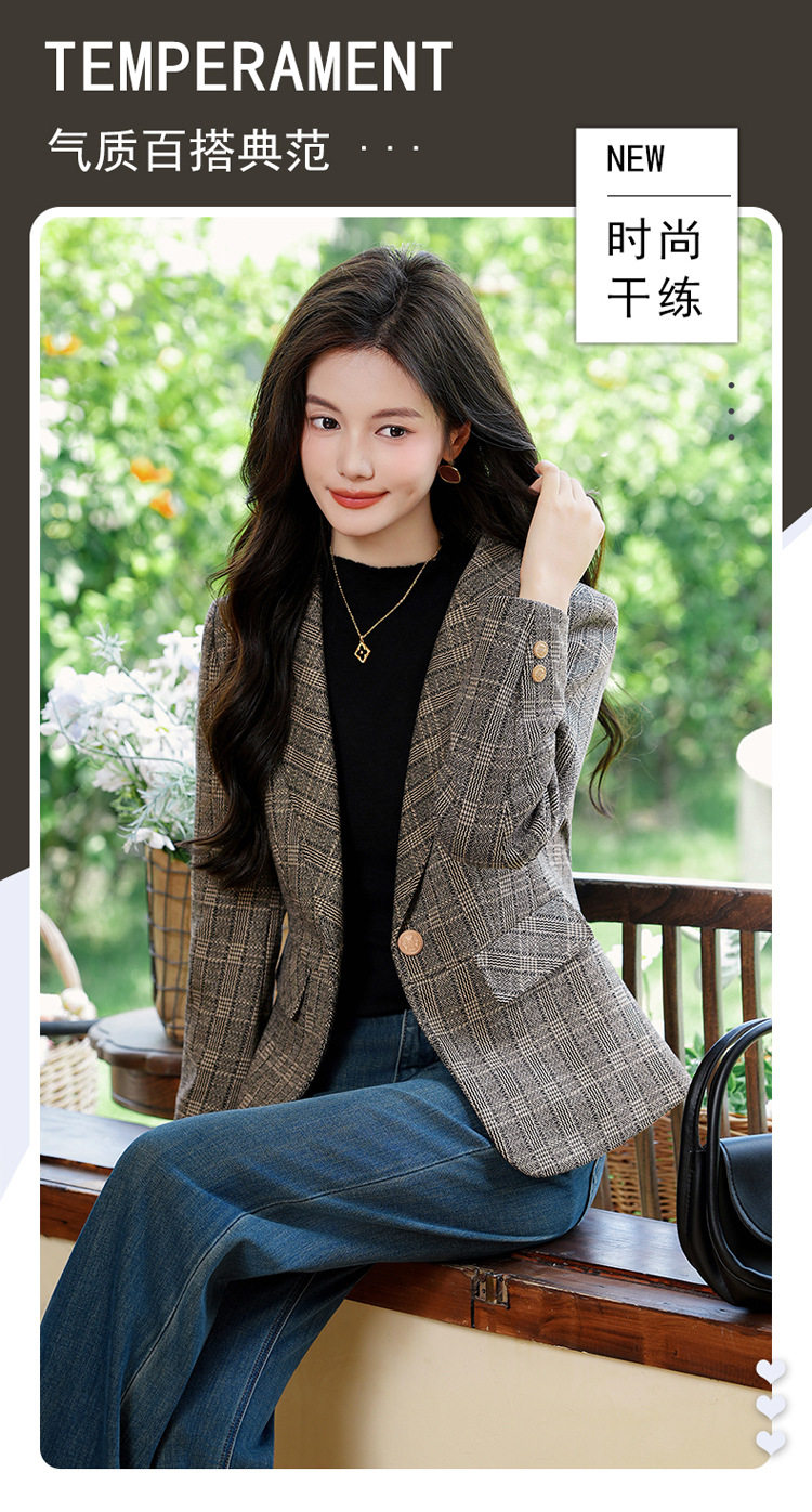 「自」全新升级【铂金会员183/天猫249/差价66】(00336)洛诗琳气质格纹西装外套2025秋冬小个子显瘦时尚格子上衣
