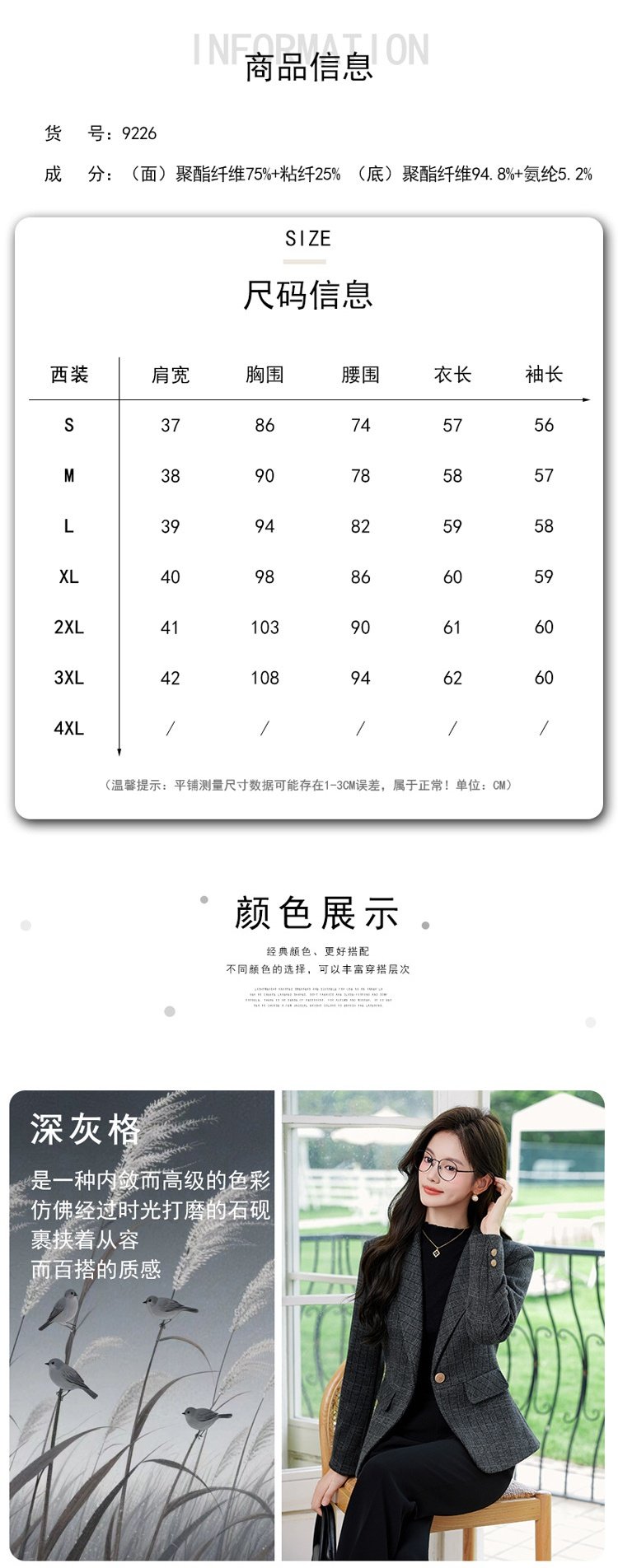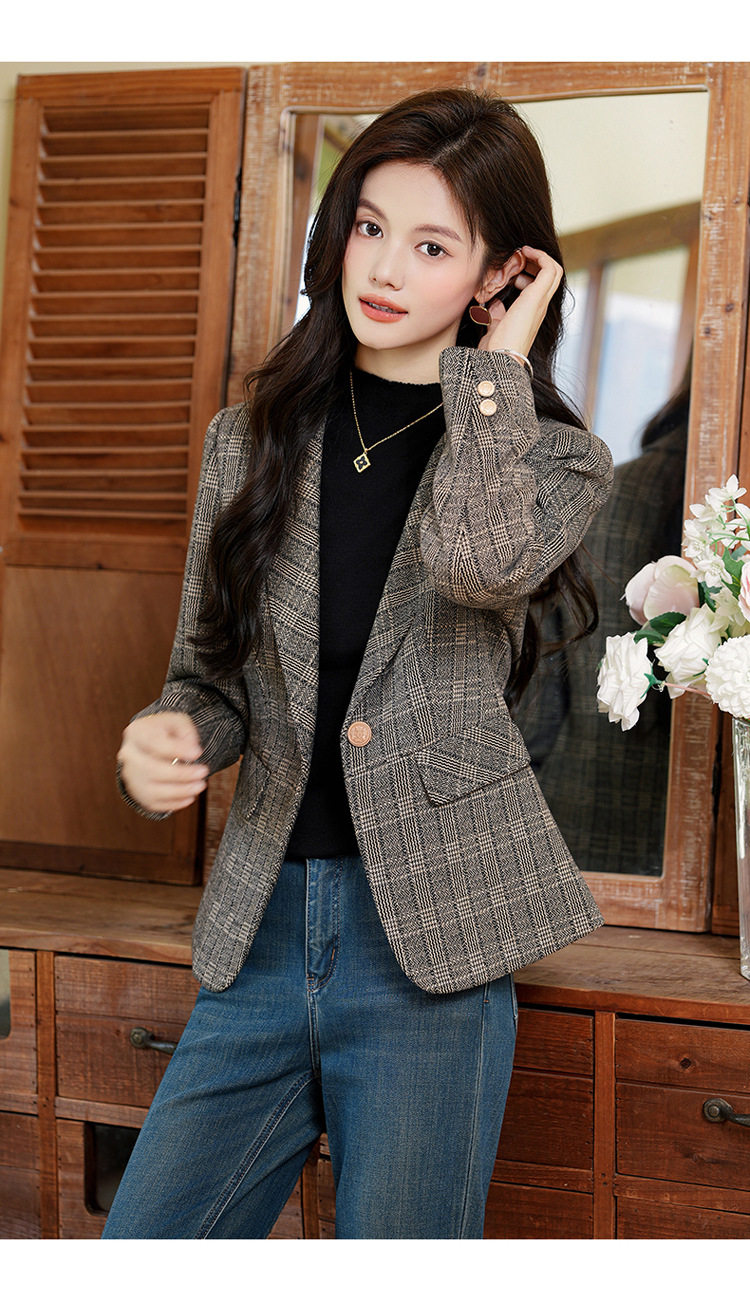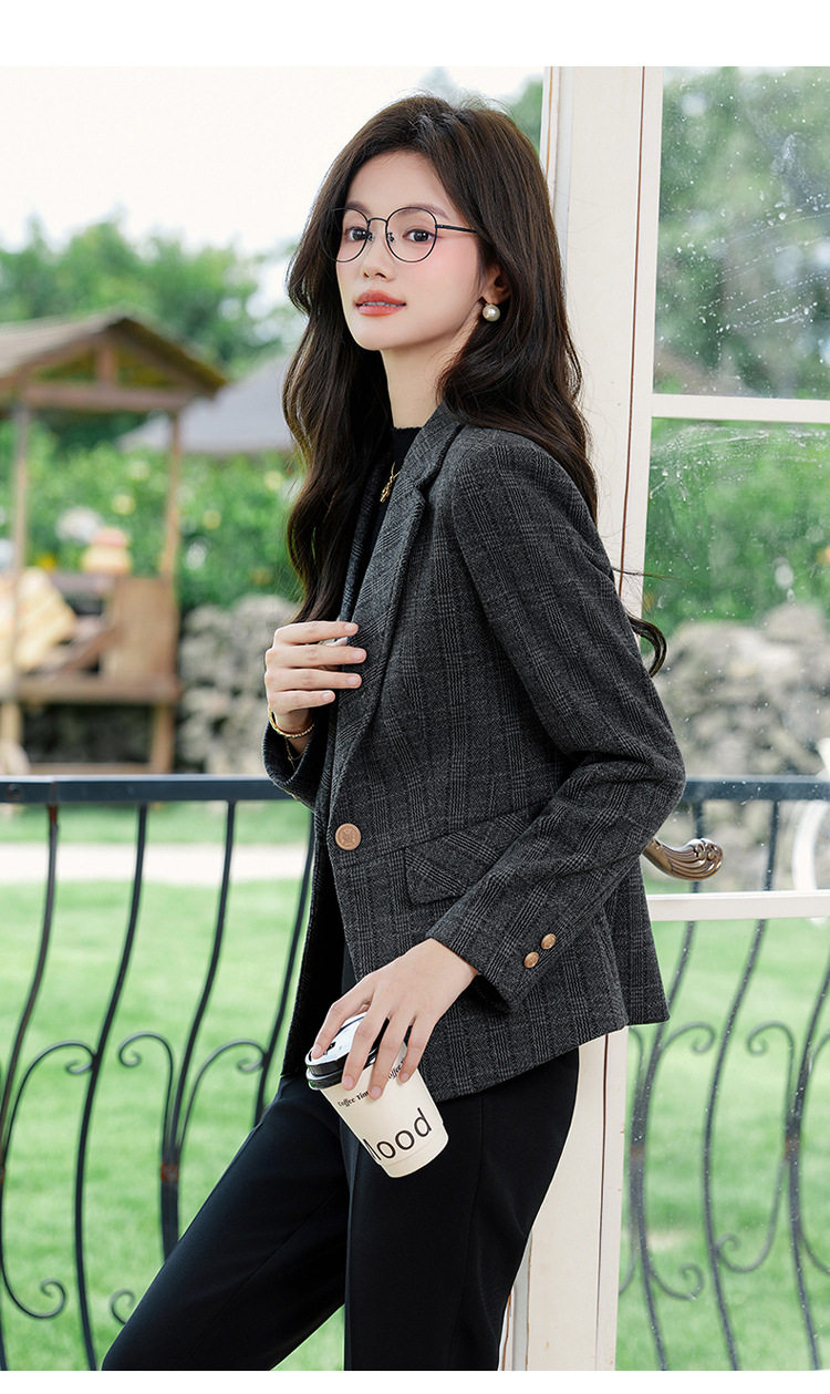「自」全新升级【铂金会员183/天猫249/差价66】(00336)洛诗琳气质格纹西装外套2025秋冬小个子显瘦时尚格子上衣
