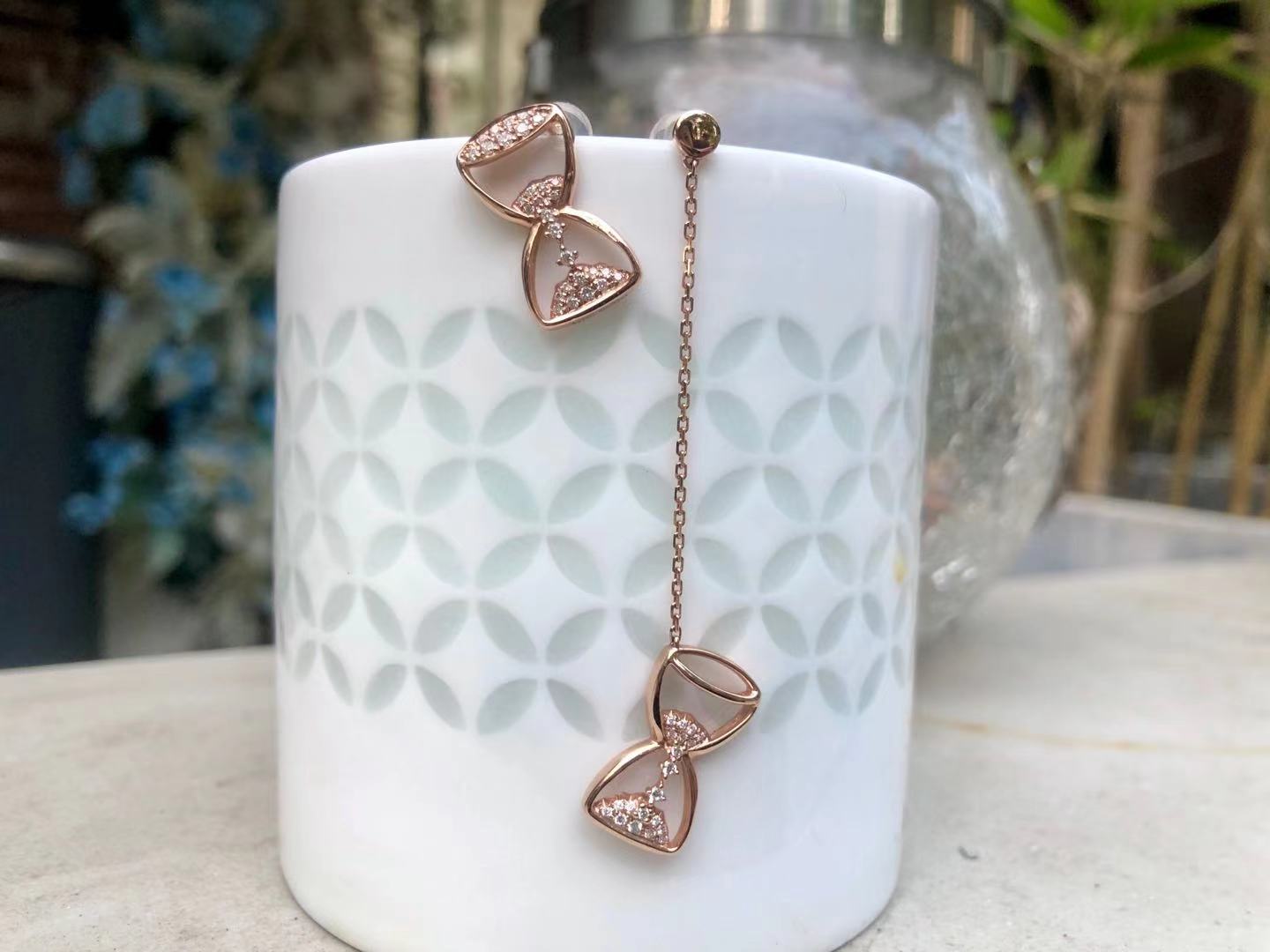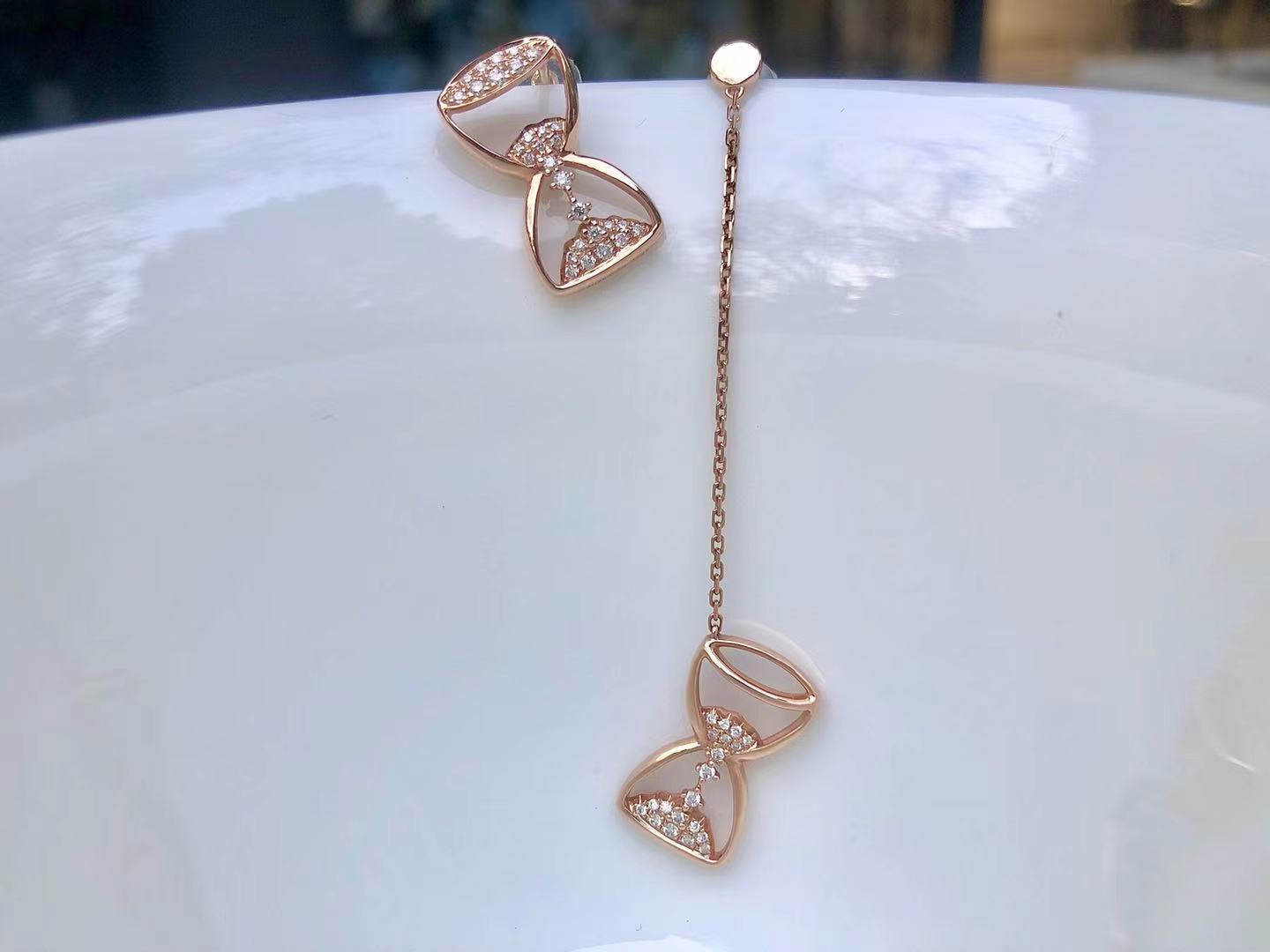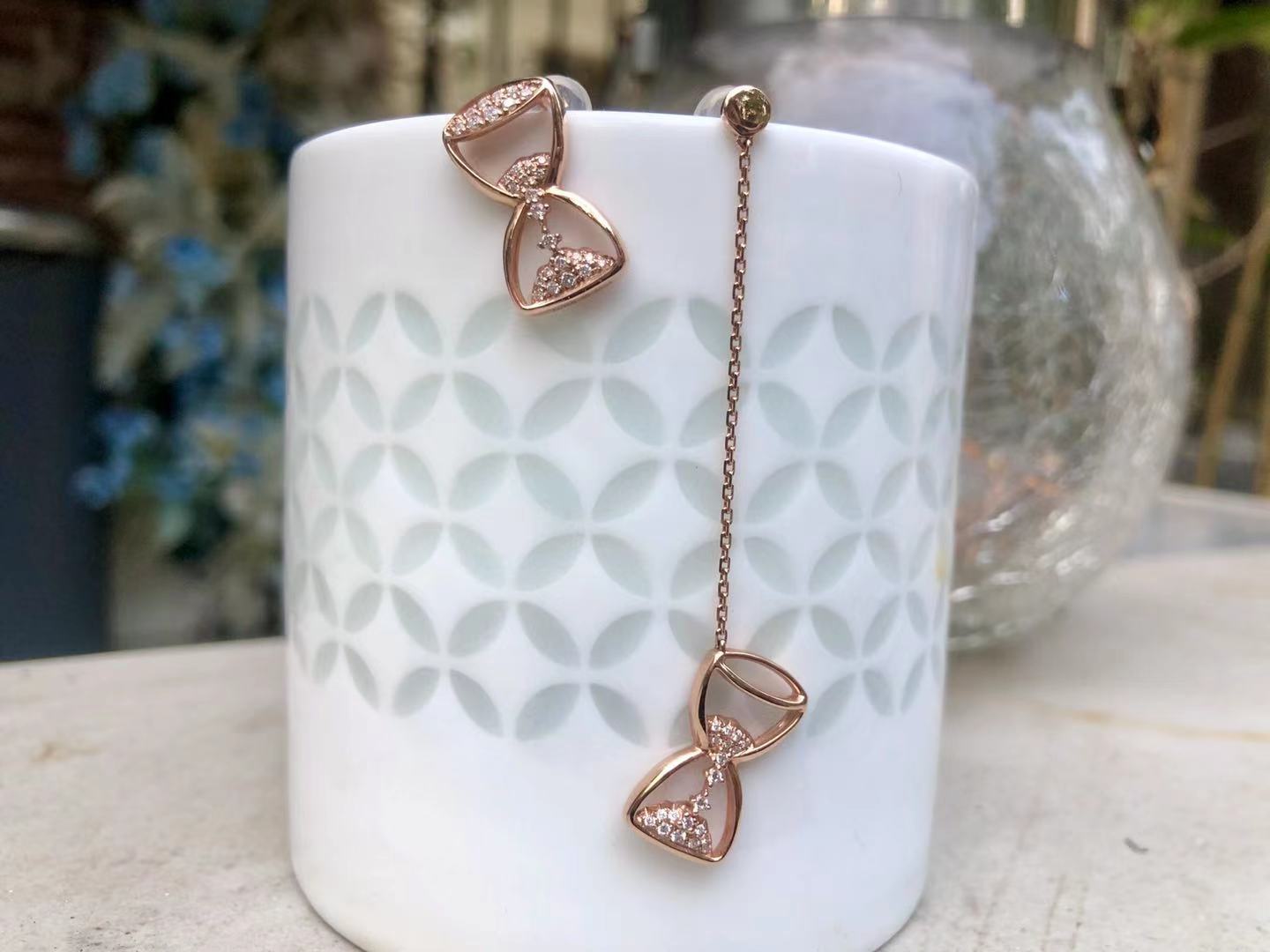 「沙漏」钻石玫瑰金耳钉/耳坠