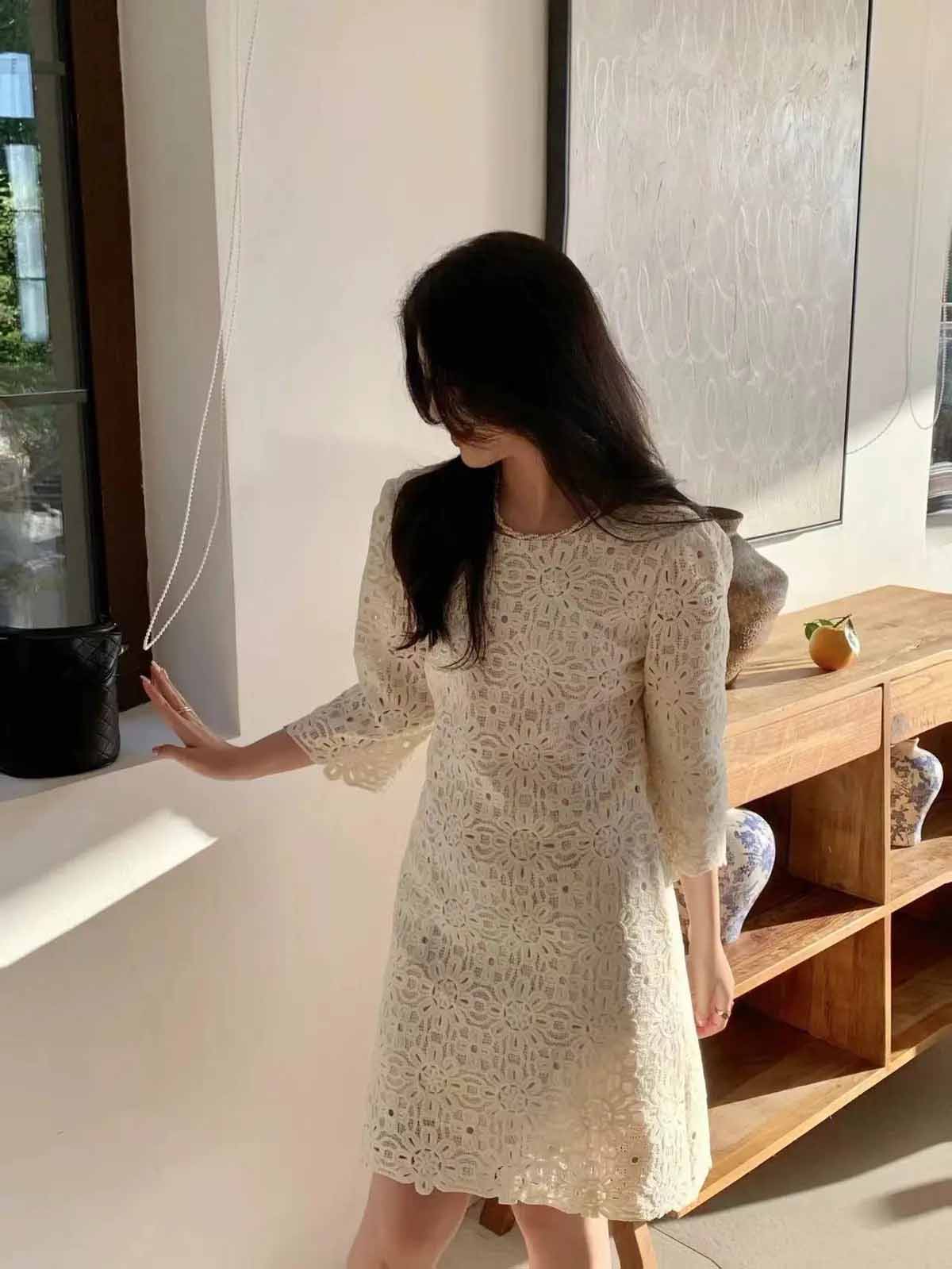顺丰包邮洛诗琳41123法式镂空连衣裙2025春季新款气质蕾丝裙273