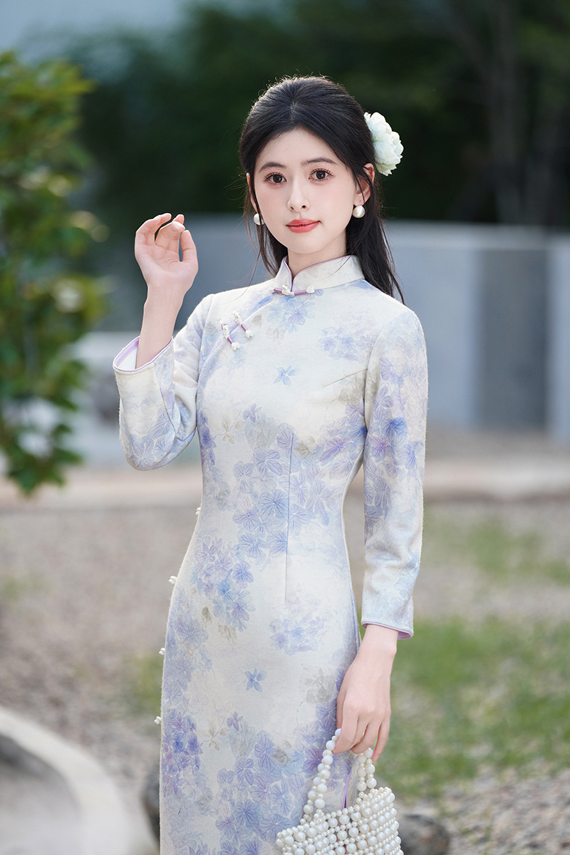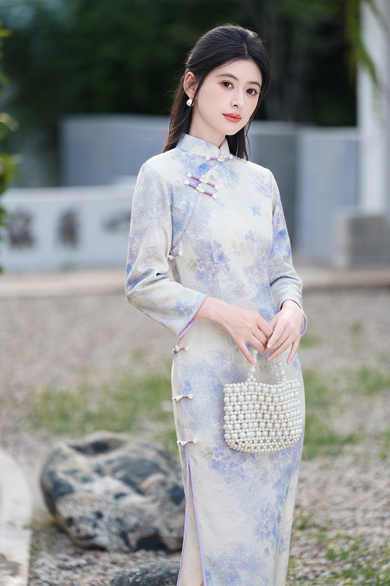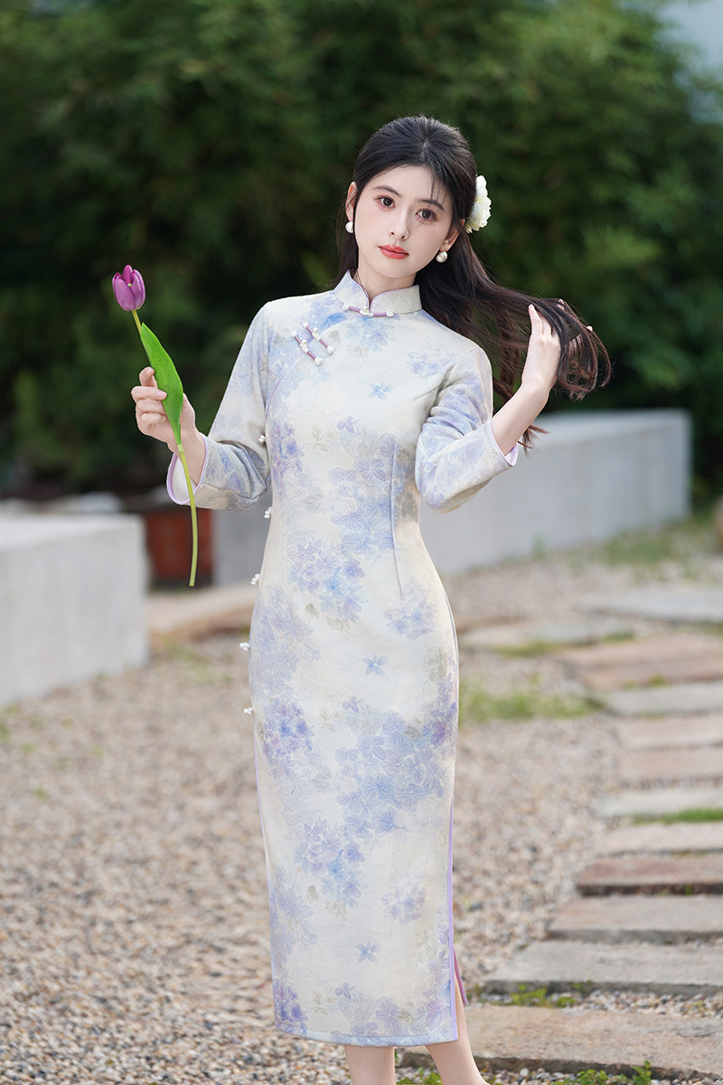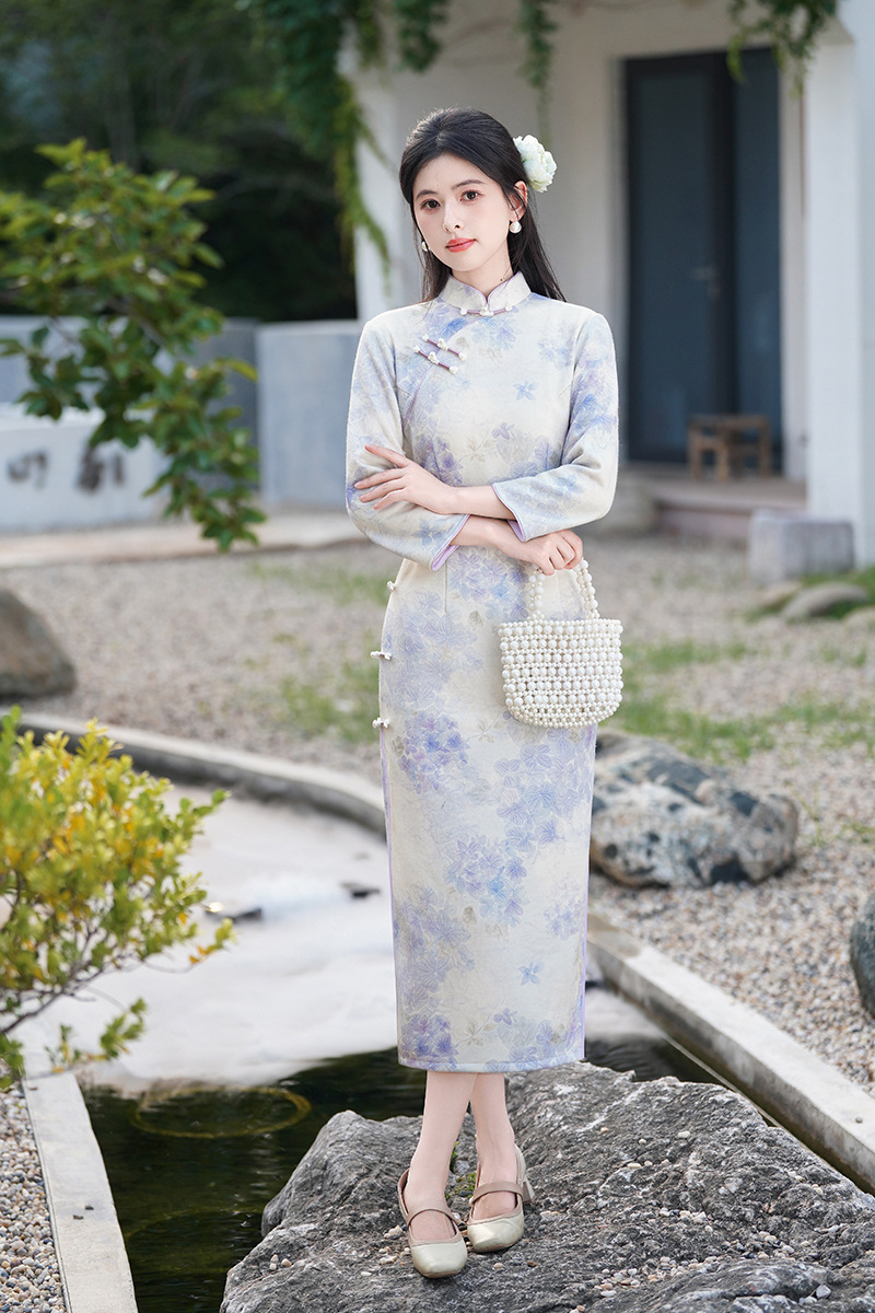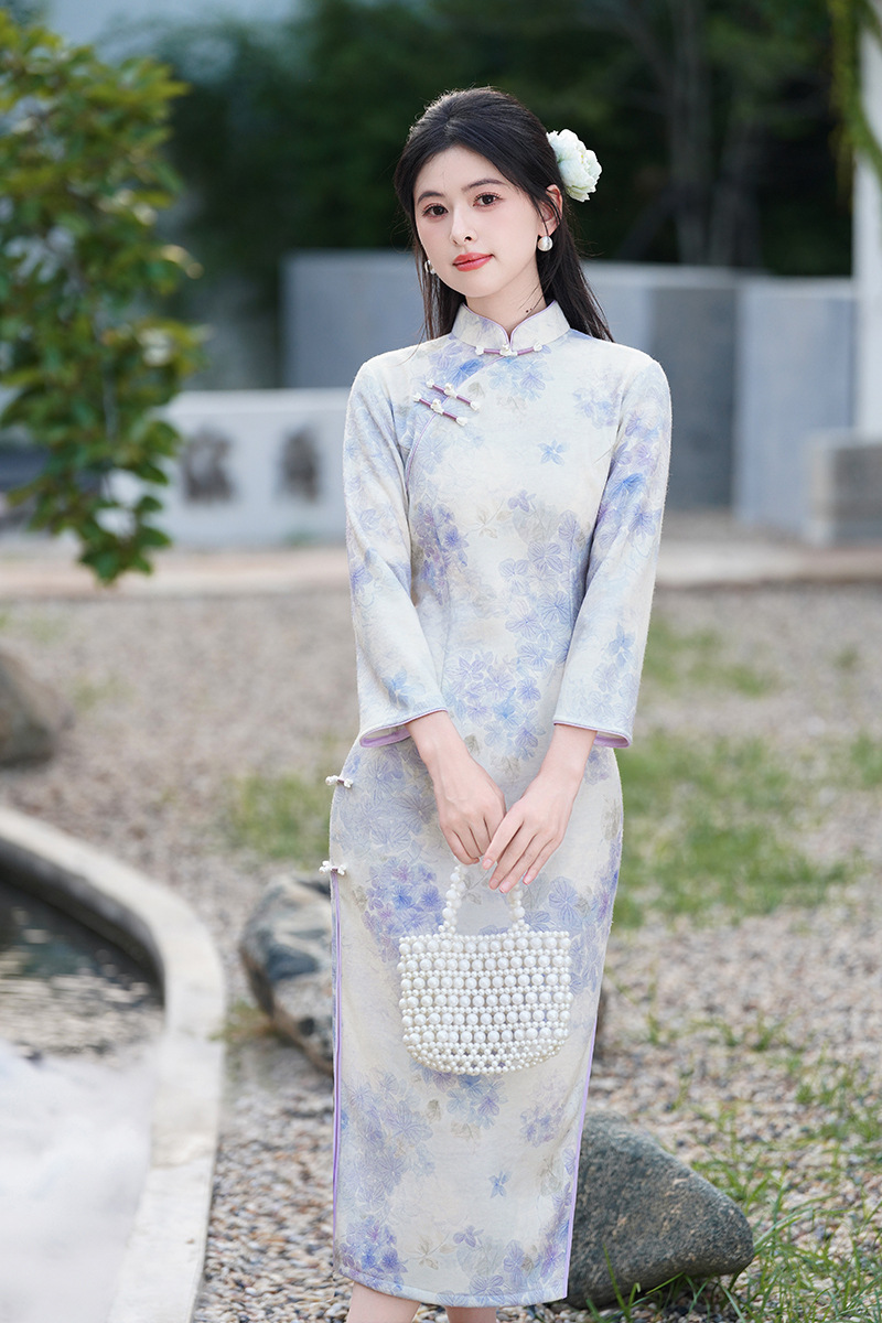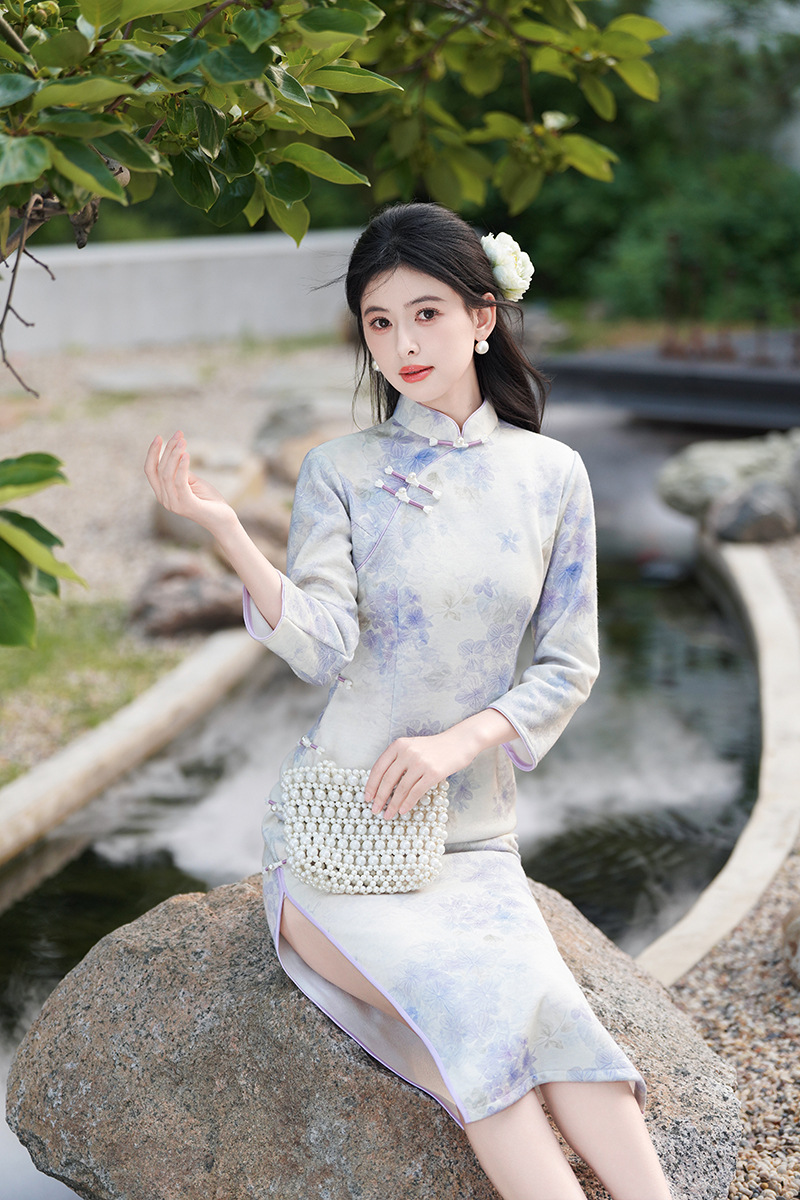 2025年冬季新款旗袍单层七分袖中长款 商品图0