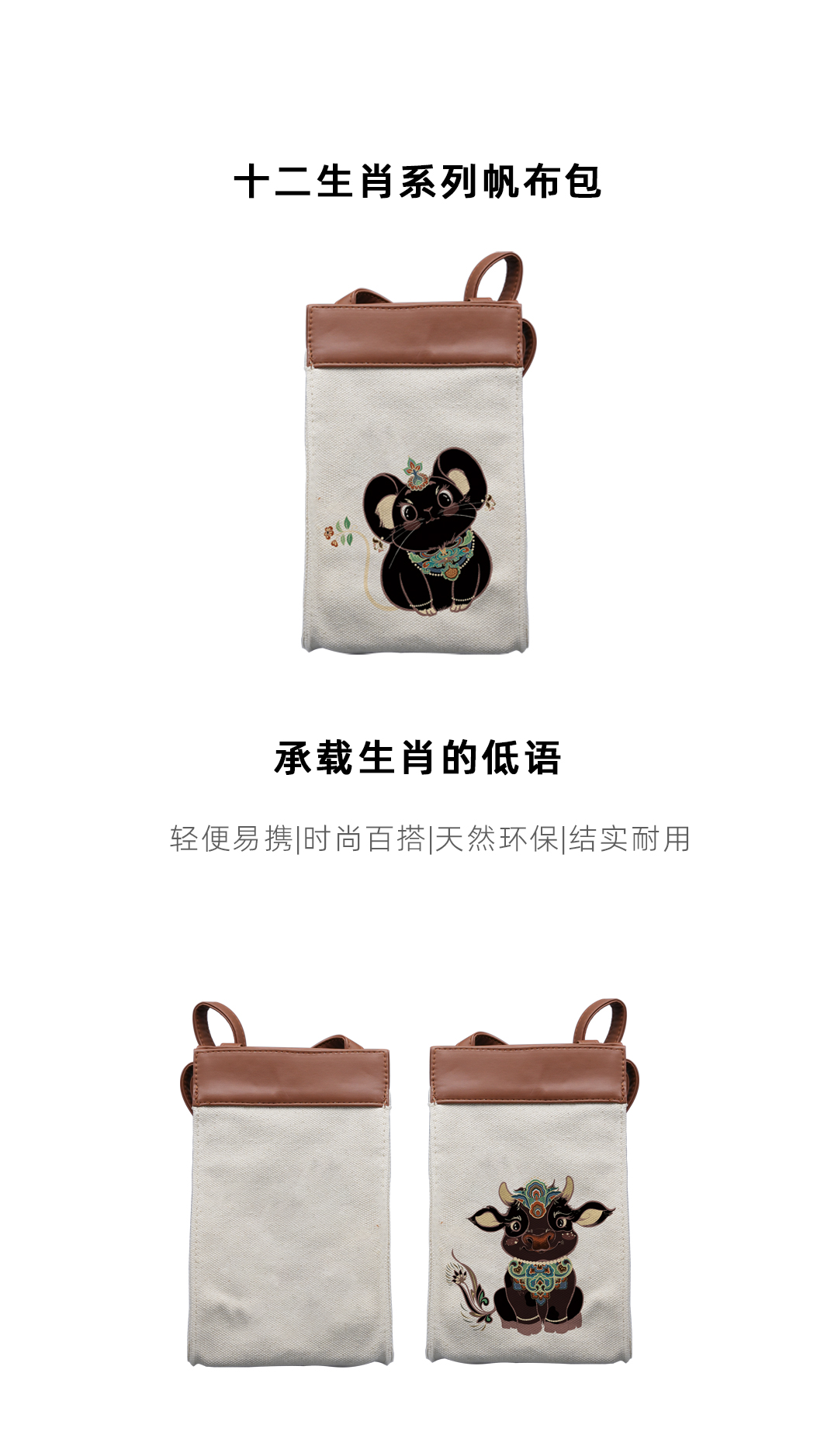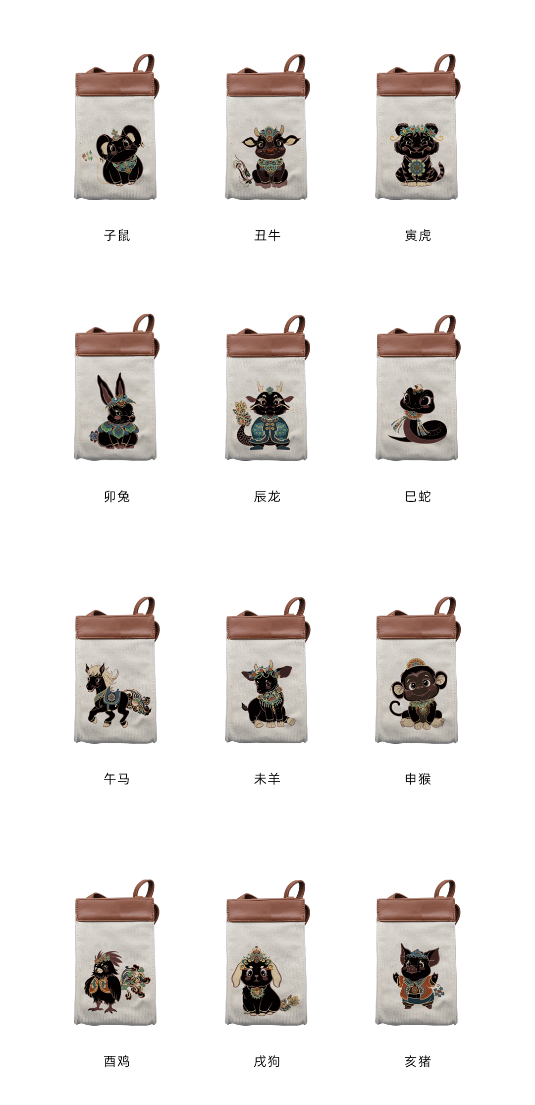 敦煌十二生肖帆布包(白)