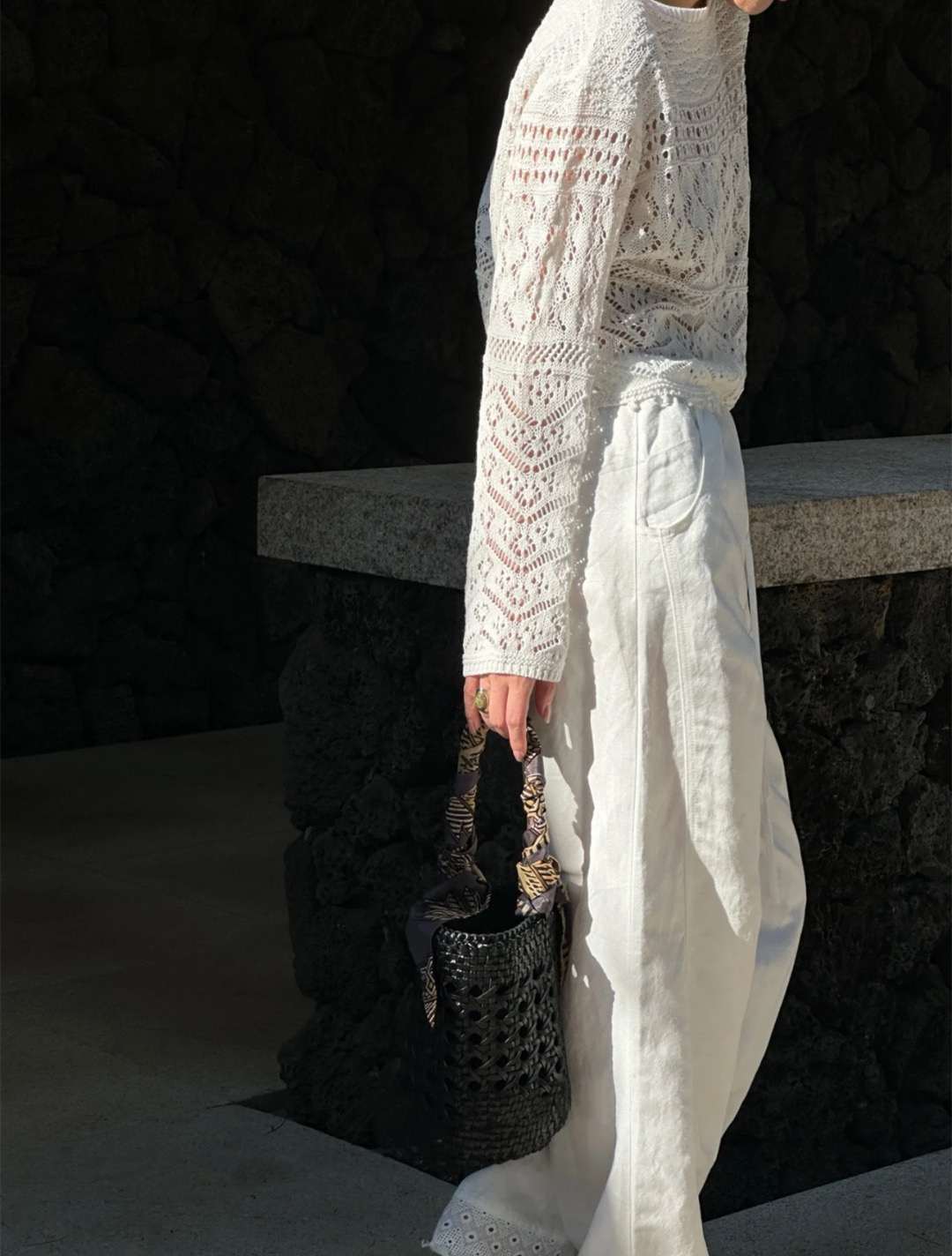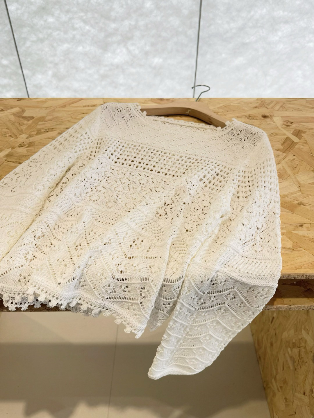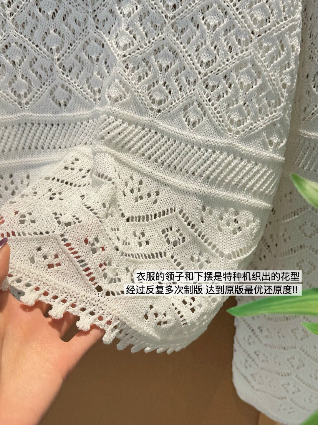 衣服的领子和下摆是手工钩花⚠️ 这是特种机织出的花型 经过反复多次制版 达到原版最优还原度‼