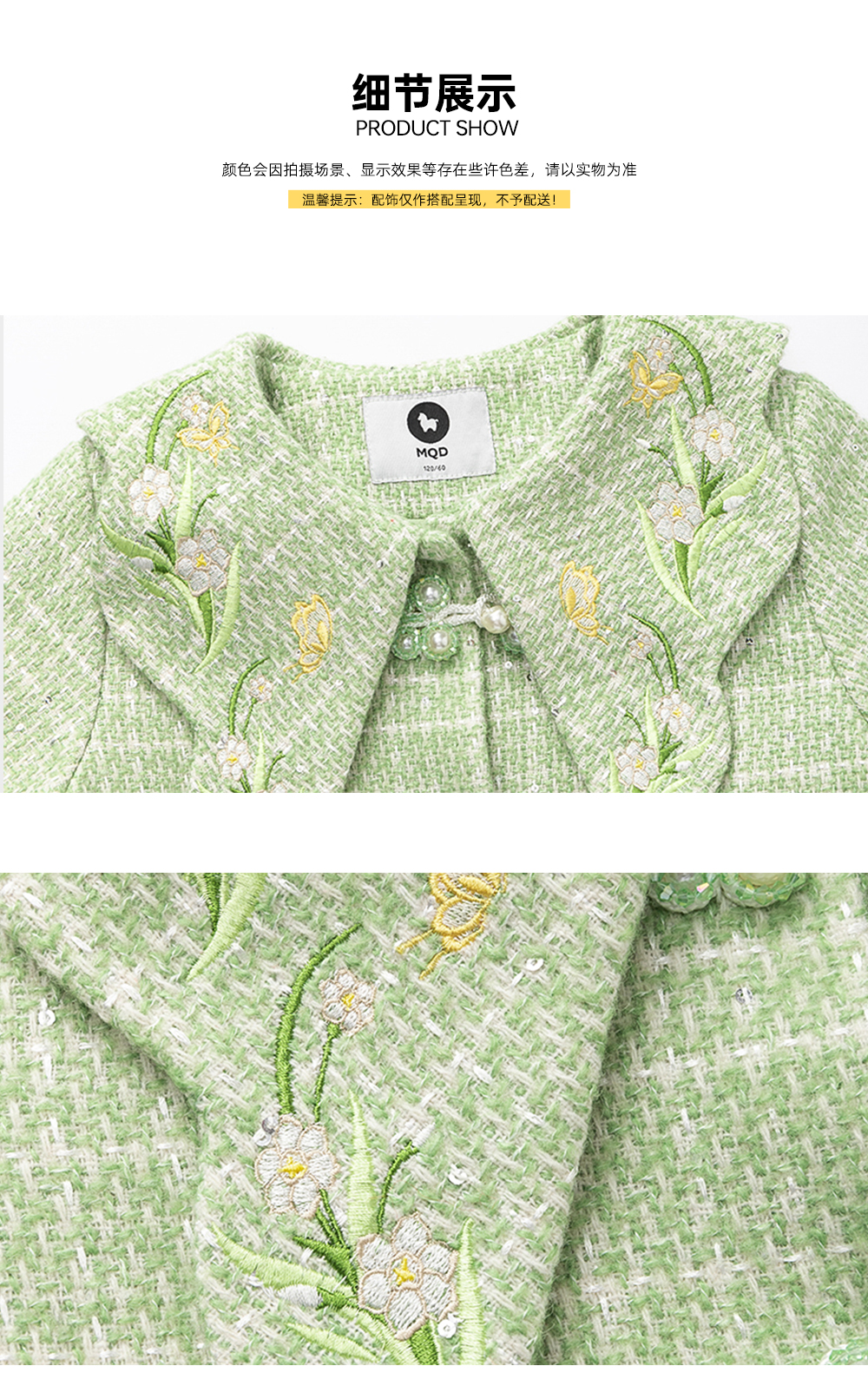 【秒】【特】【MQD】【专柜同款】女童绣花冬大衣外套