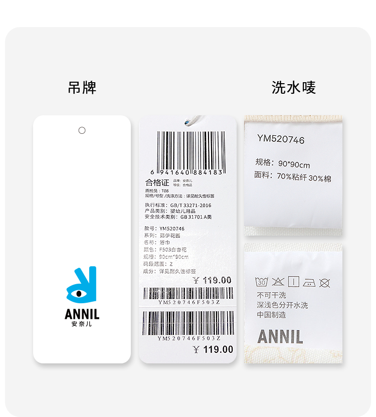 【实体店同款】男女宝宝浴巾夏季新款安奈儿童装YM520746