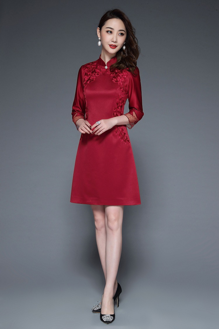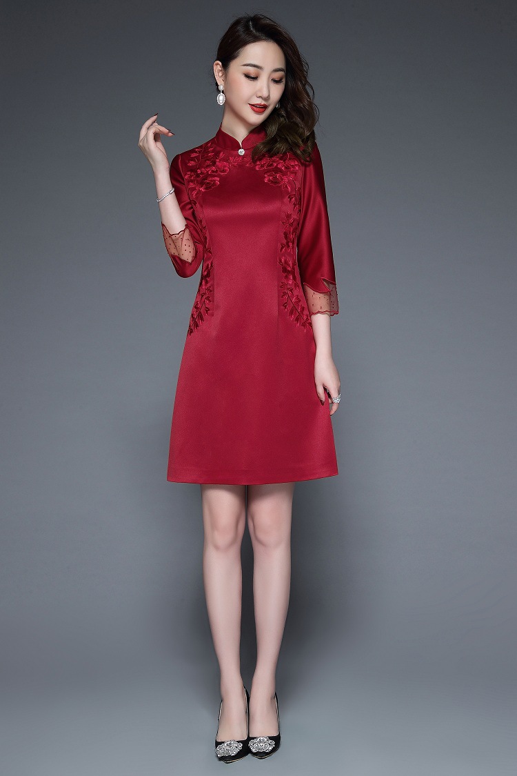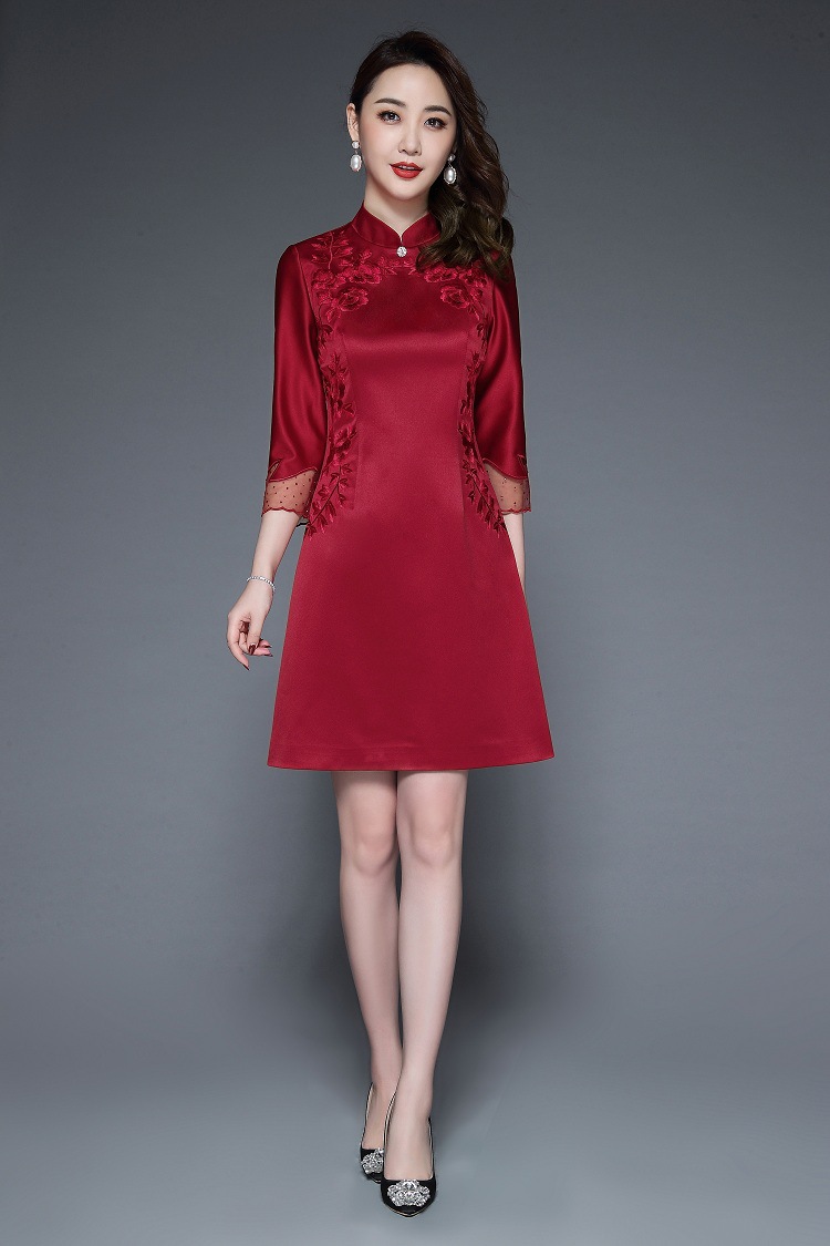 TQ-2830新款高端气质遮肚显瘦妈妈婚宴礼服A字连衣裙
