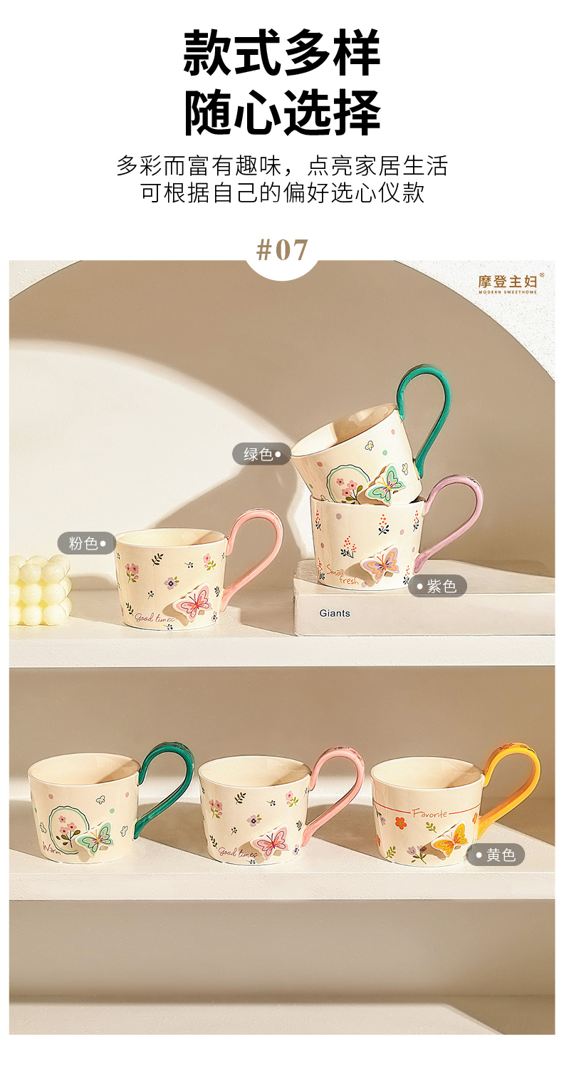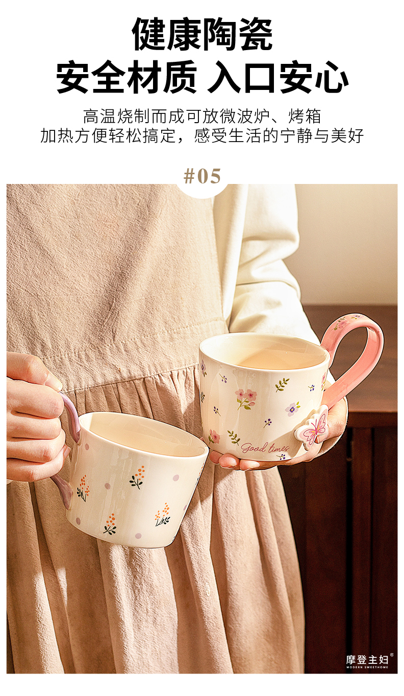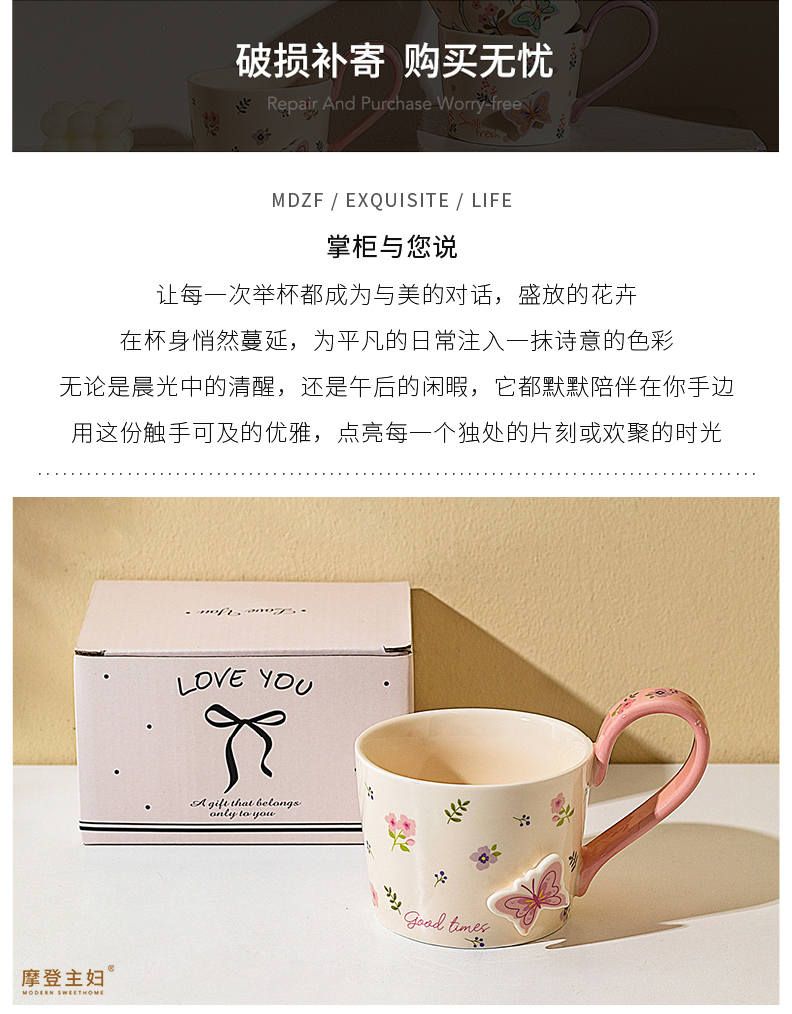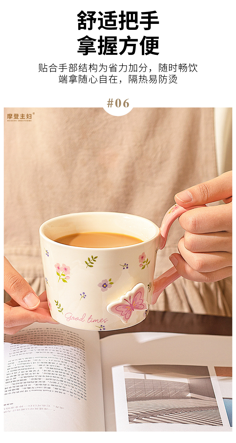 摩登主妇浮雕马克杯高颜值女陶瓷杯家用漂亮喝水杯咖啡杯子早餐杯