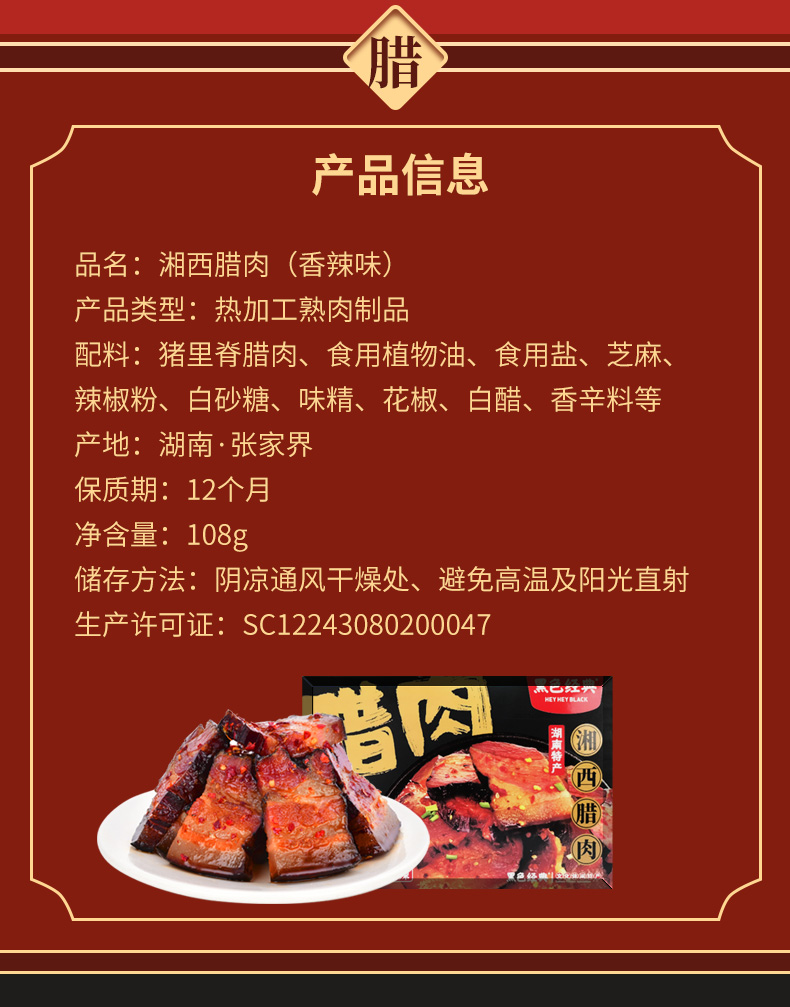 【湘西特产】黑色经典盒装湘西腊肉108g 独立小包 开袋即食10小包左右
