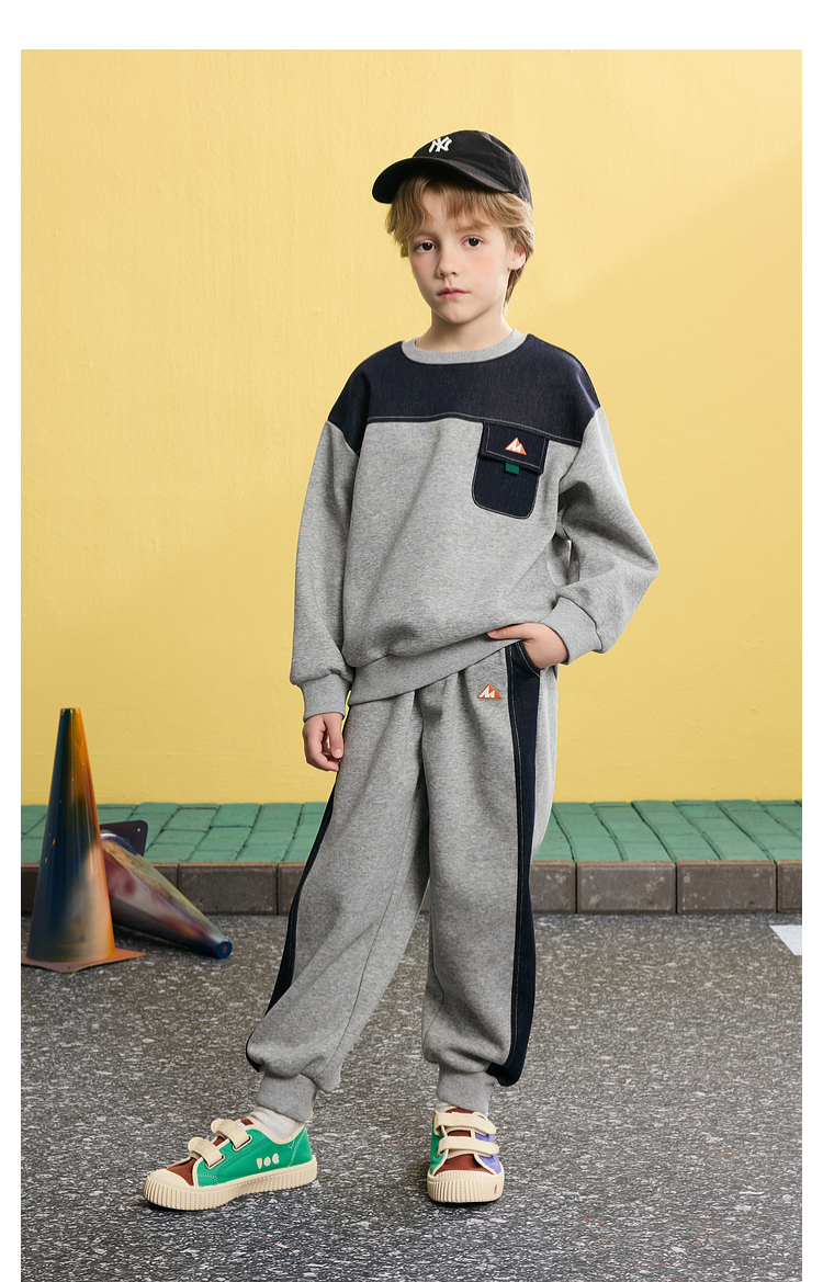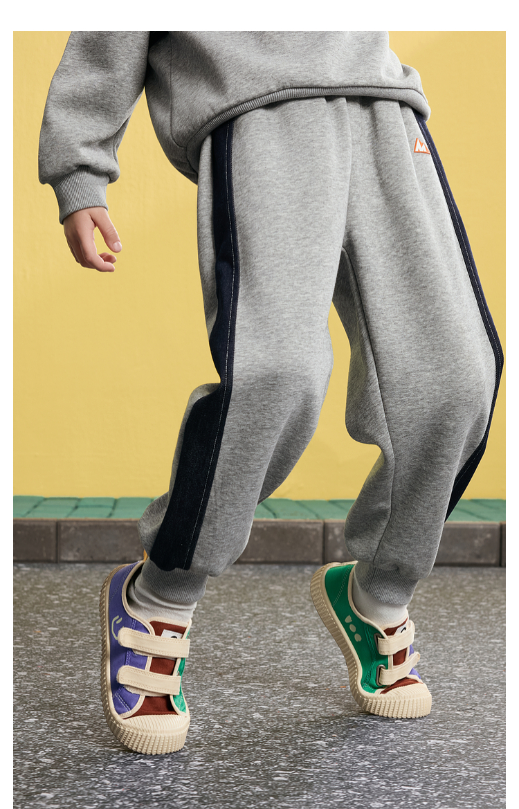 【MQD】男童春季新品学院风潮酷休闲条杠拼色简约运动束脚针织裤