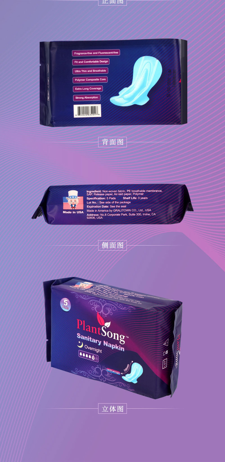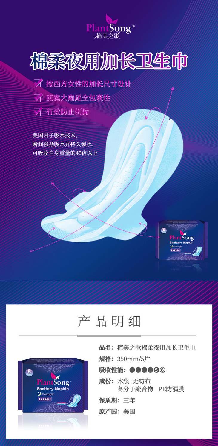 植美之歌棉柔夜用加长卫生巾350mm5p