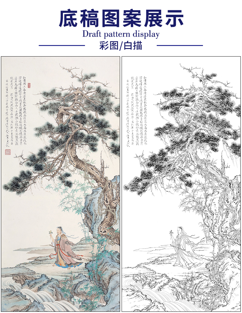 任重山水人物工笔画白描底稿《东篱嗅菊图》临摹勾线高清打印稿RD79