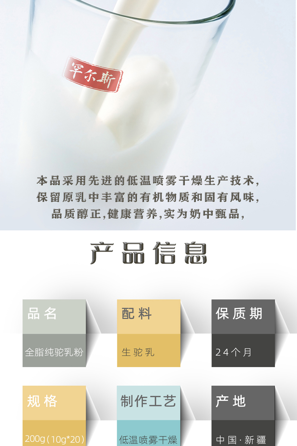 罕尔斯全脂纯驼乳粉200g(10g*20)新疆特产新疆礼物直发