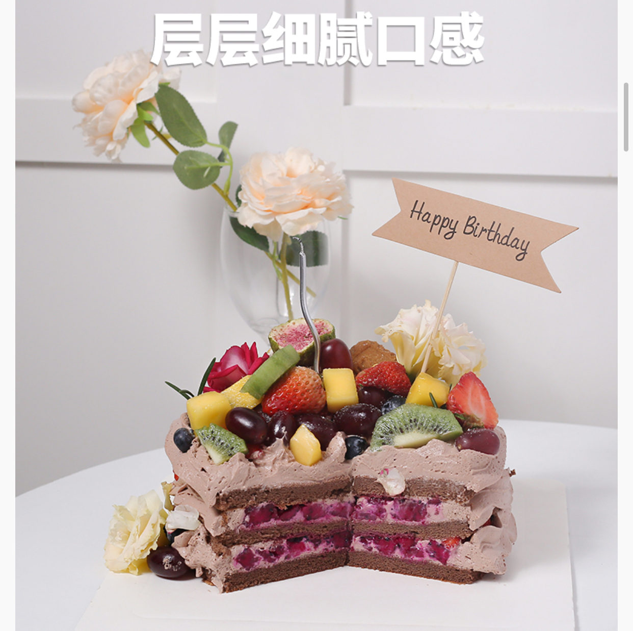 伊甸园 动物 奶油鲜果巧克力生日蛋糕 (双层鲜果夹心)