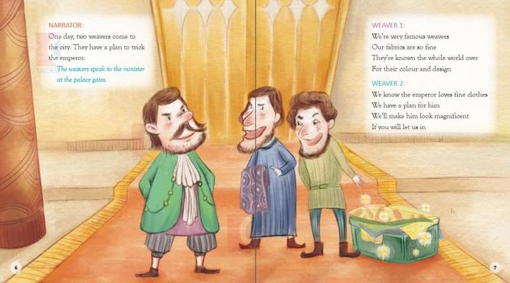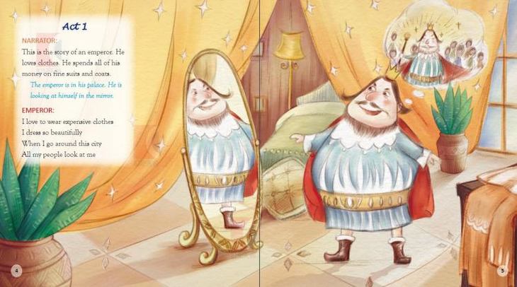 剧本讲述了一个自负的皇帝的故事。他喜爱昂贵的服装。一天,两个裁缝来到皇宫,请命为皇帝做一套只有聪明人才能看见的衣服。皇帝很开心,给了两个裁缝很多钱。两个裁缝其实什么都没做,只是在假装而已。衣服做好了,虽然谁都看不见,但是都出于不想被认为愚蠢的原因说衣服非常漂亮。皇帝非常满意这套新衣服。大臣组织了大巡游,让人民都能见一下这套新装。所有的人都假装自己能看见那套衣服,直到人群中一个小孩喊出了真相。很快所有的人都开始笑皇帝。皇帝觉得自己很愚蠢。