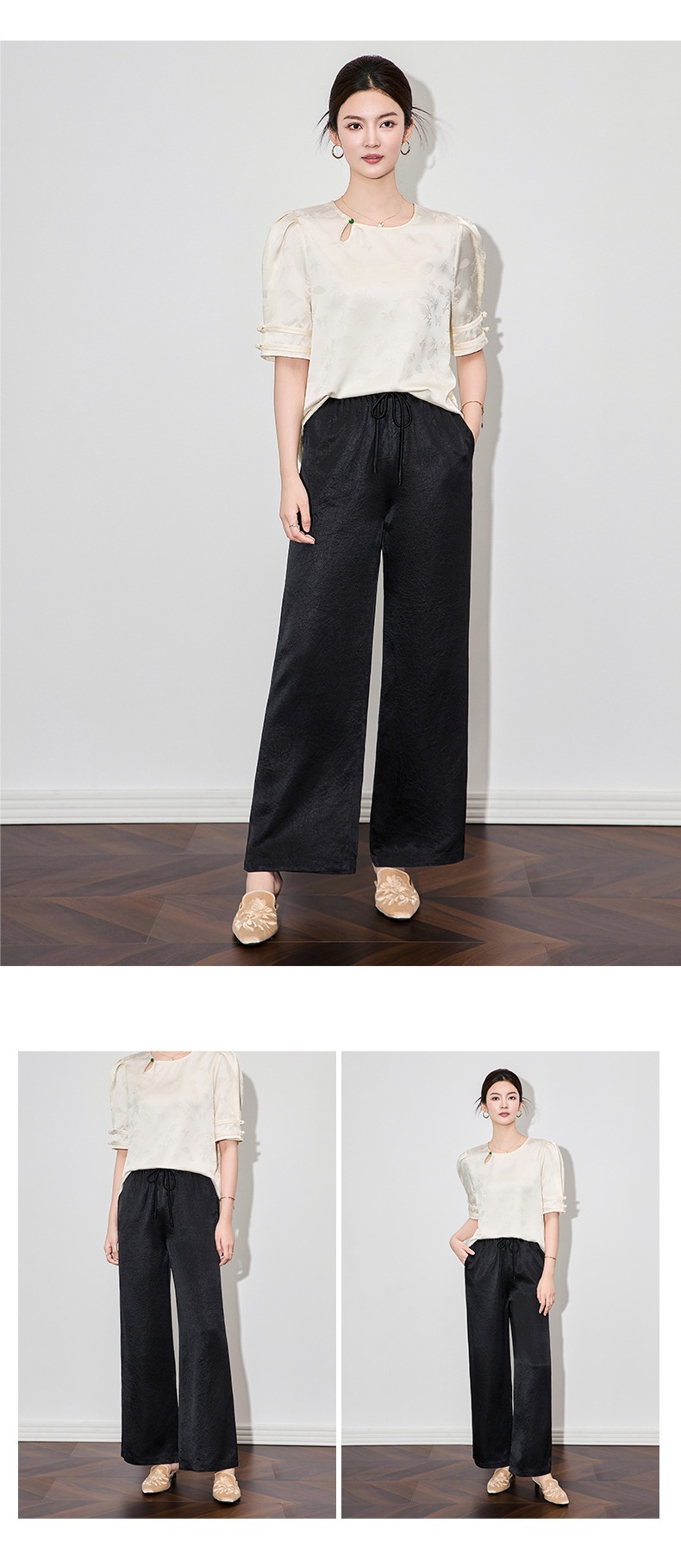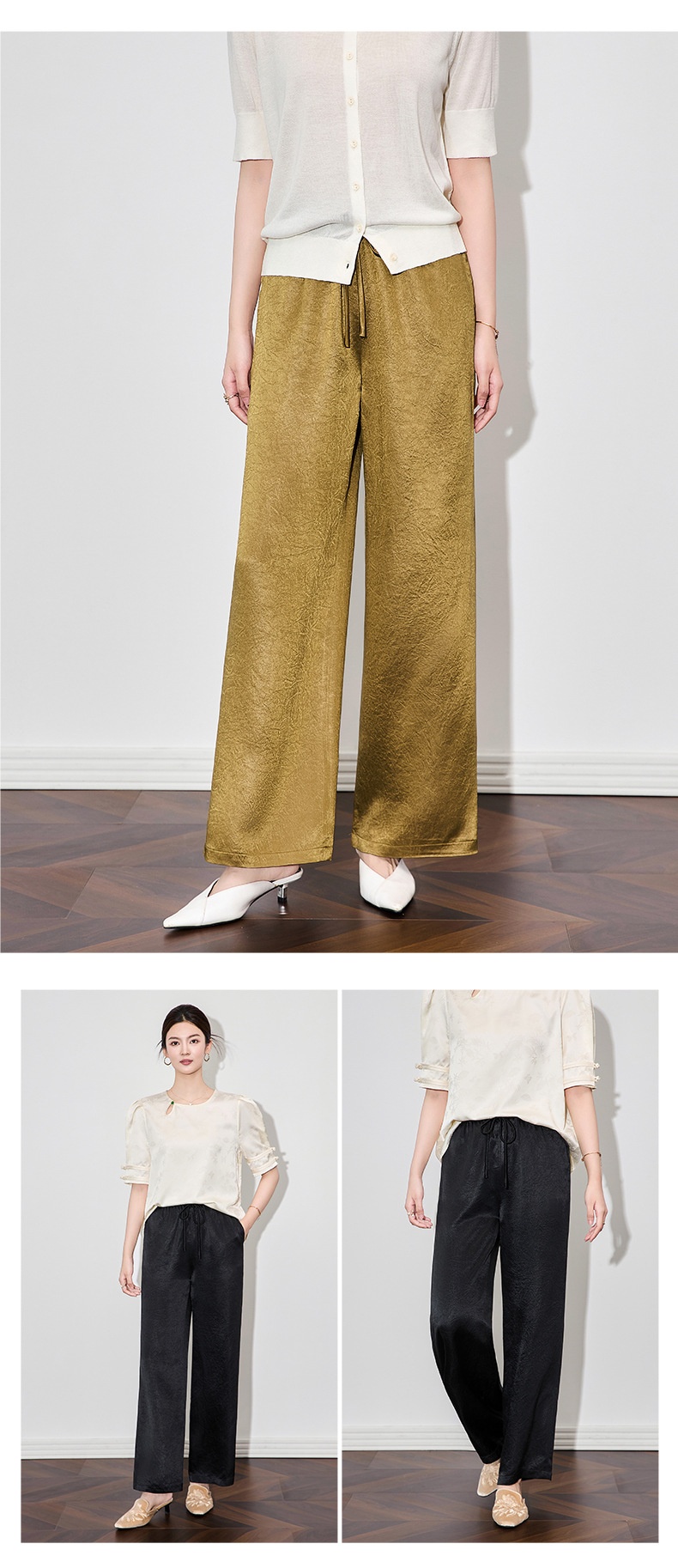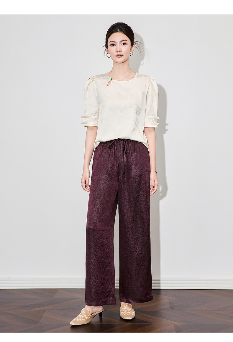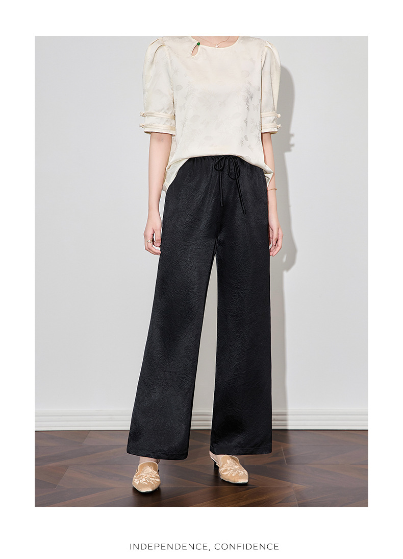 「高货wl」全新升级【铂金会员220/天猫299/差价79】(95145)洛诗琳简约通勤醋酸直筒裤2025夏季轻盈国风慵懒休闲裤女
