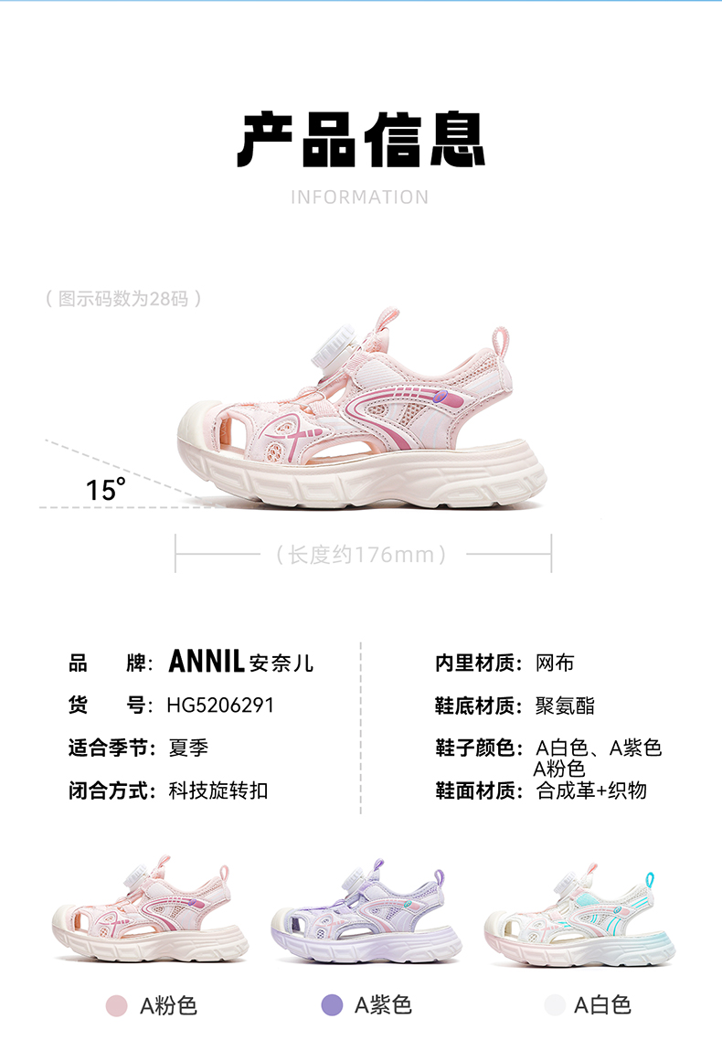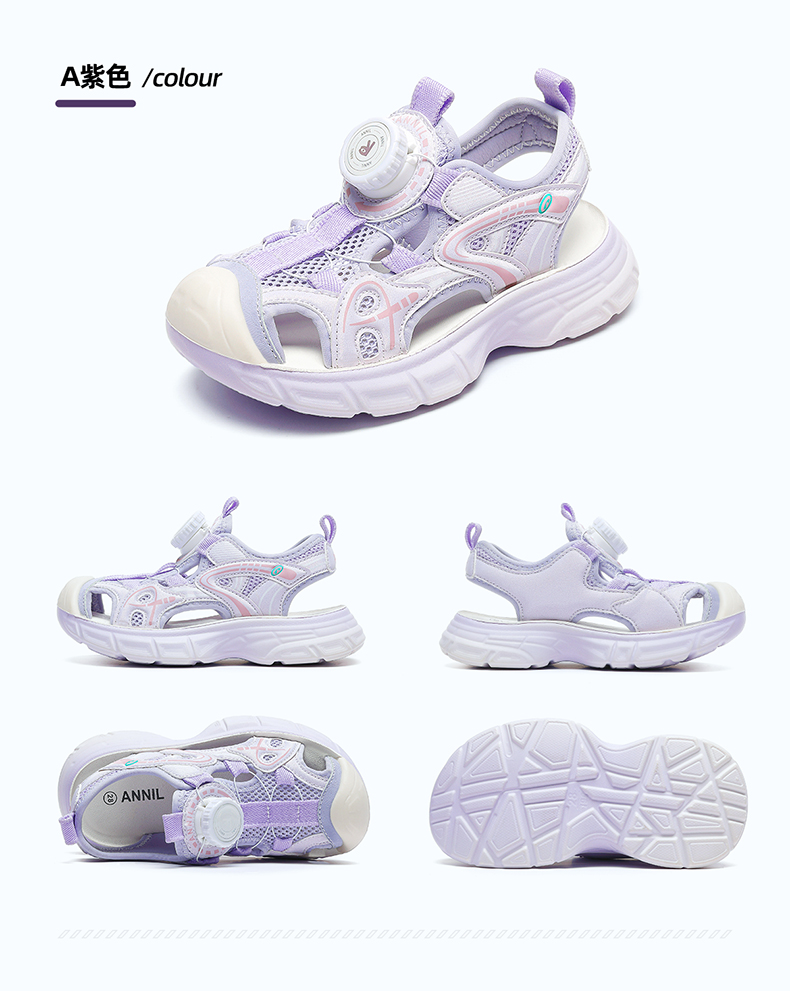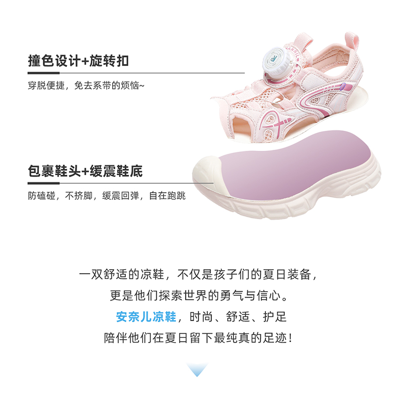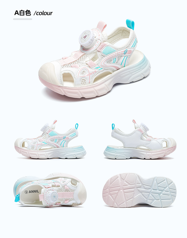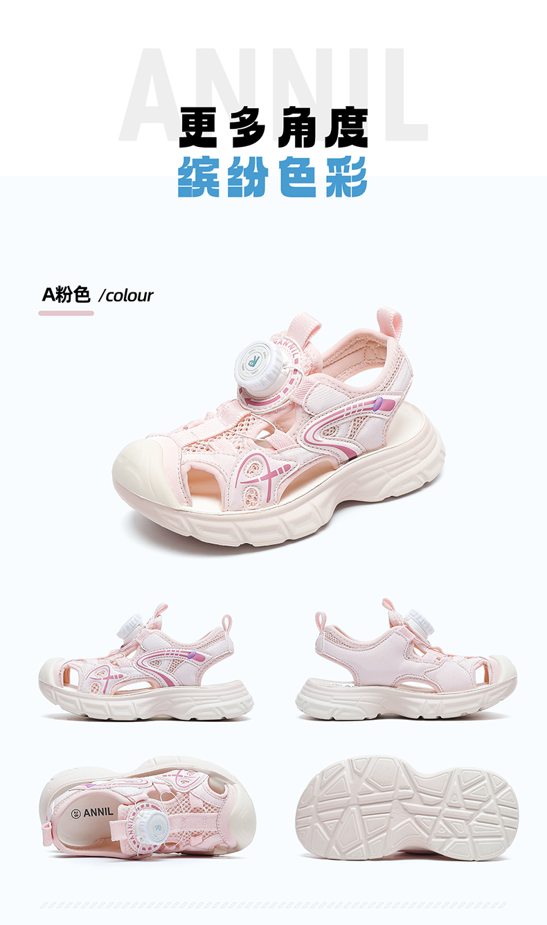 ANNIL/安奈儿女童包头凉鞋2025年夏季新款软底旋钮休闲儿童凉鞋沙滩鞋子HG5206291