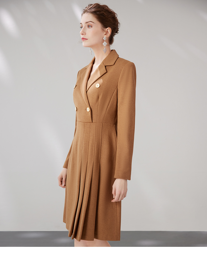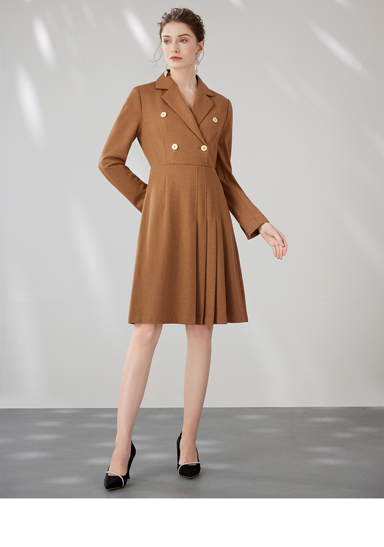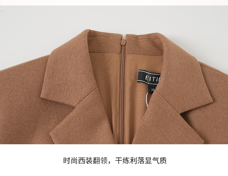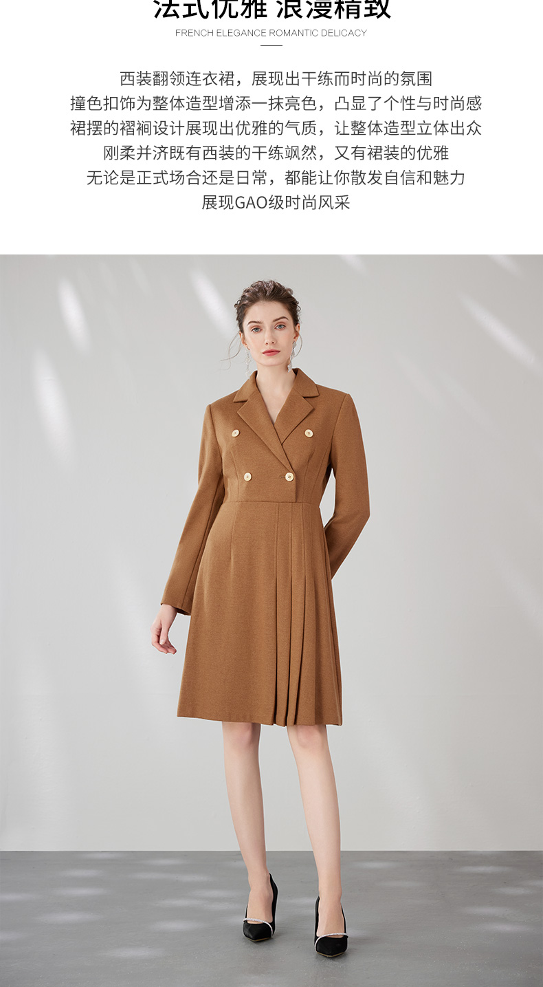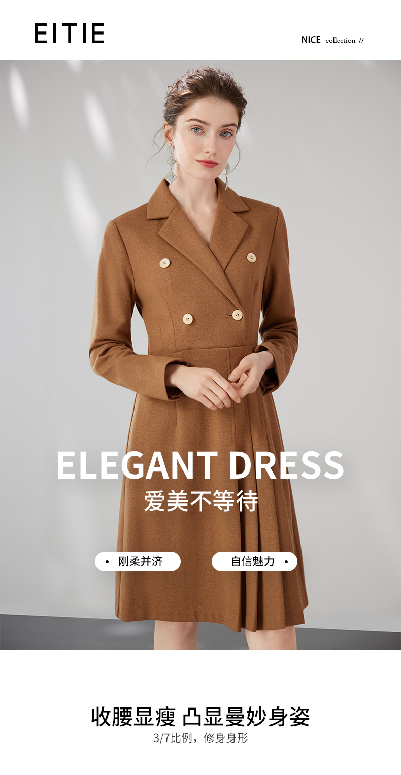 EITIE爱特爱冬季新款时尚修身经典翻领百褶A字裙摆连衣裙7207905