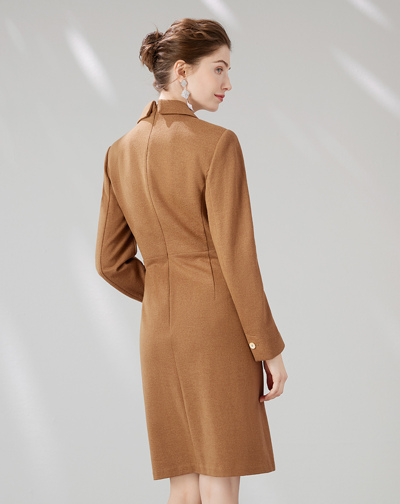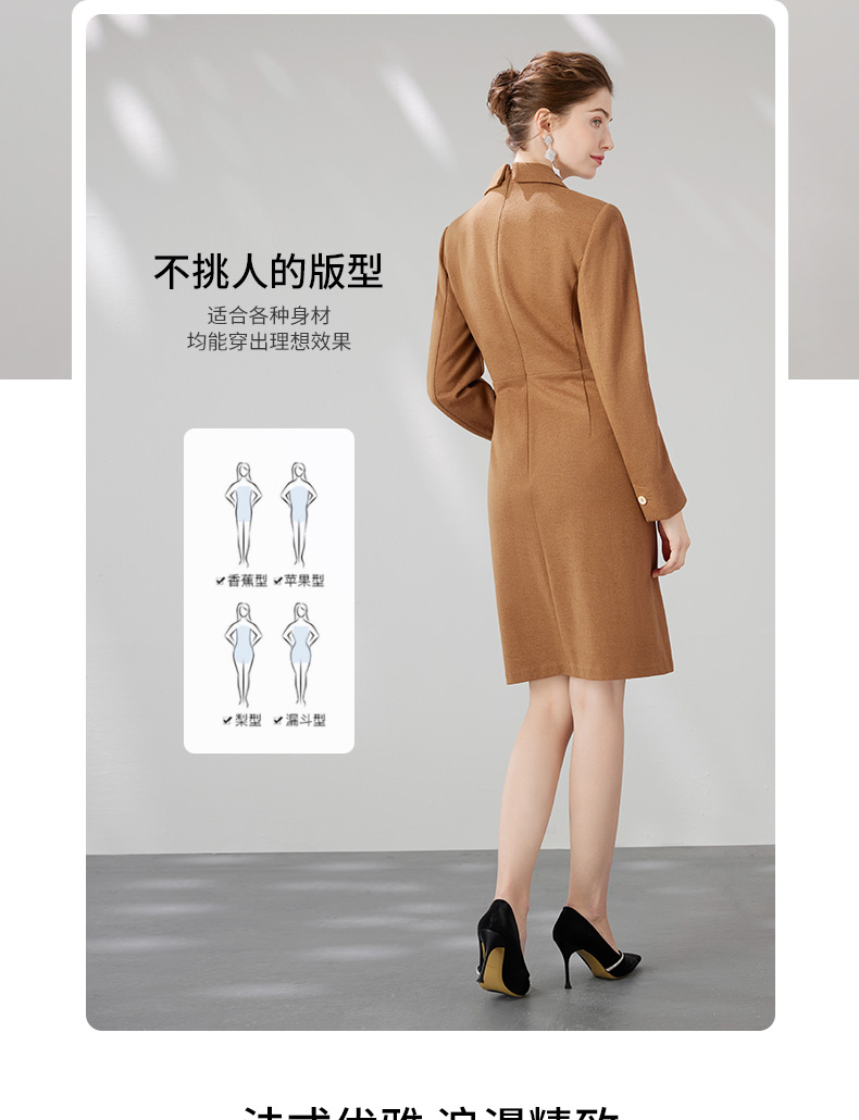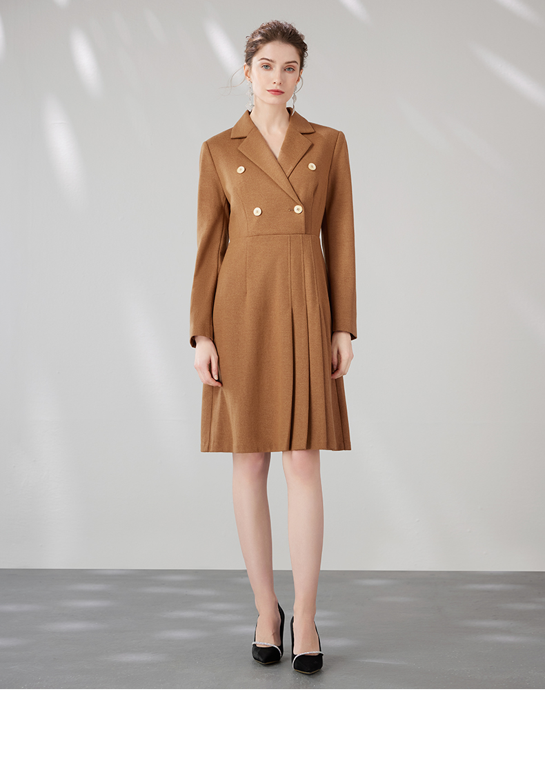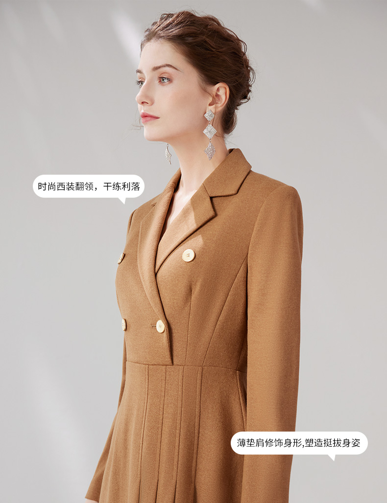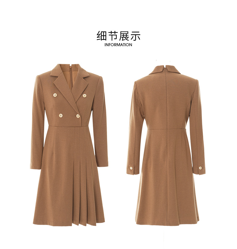 EITIE爱特爱冬季新款时尚修身经典翻领百褶A字裙摆连衣裙7207905