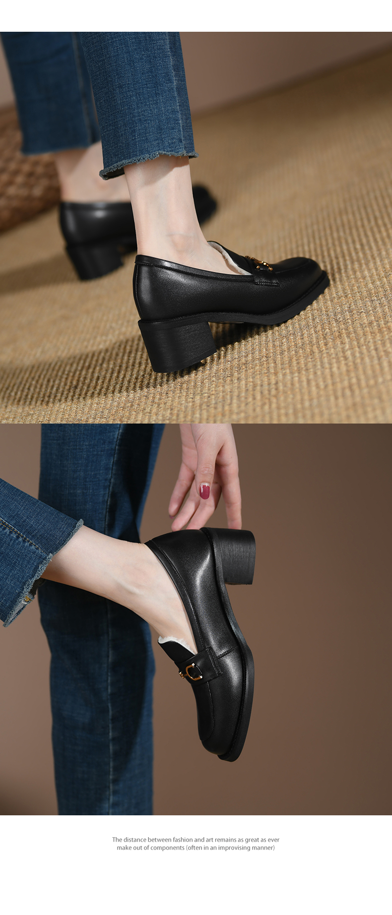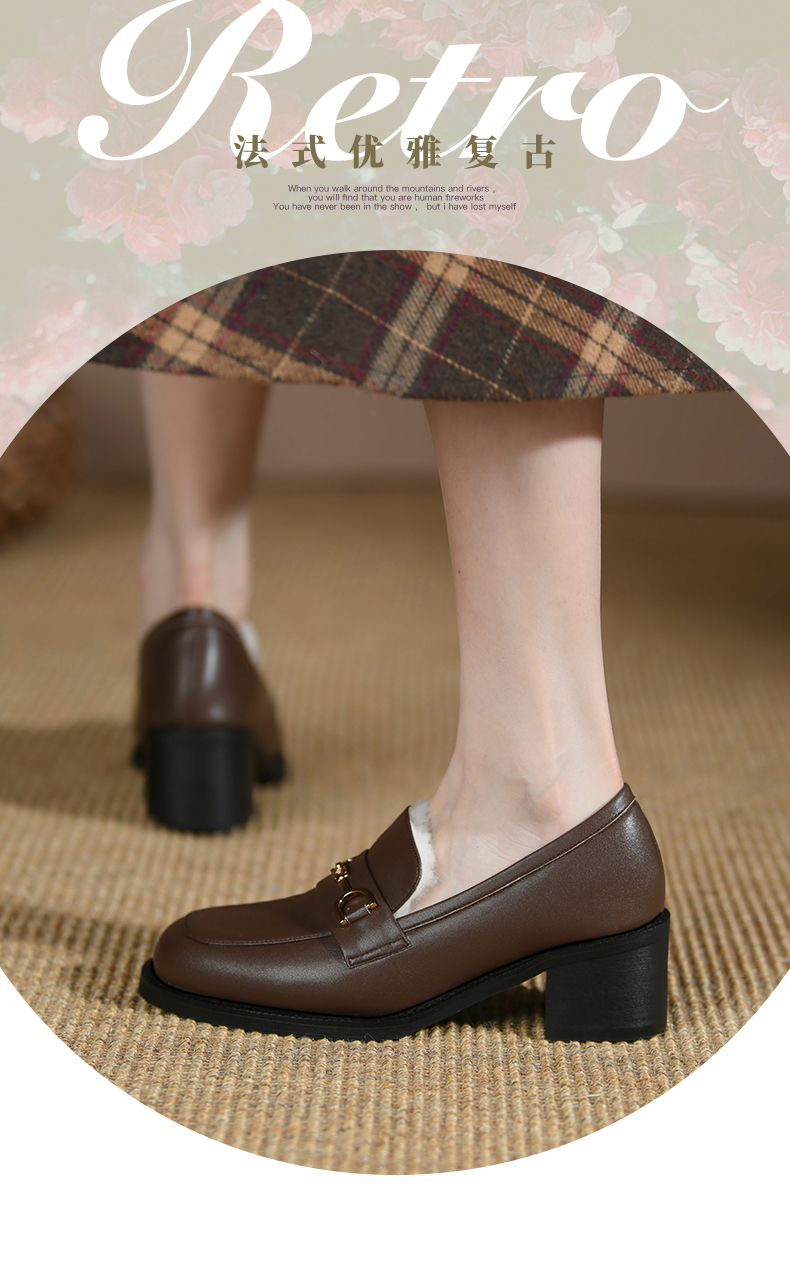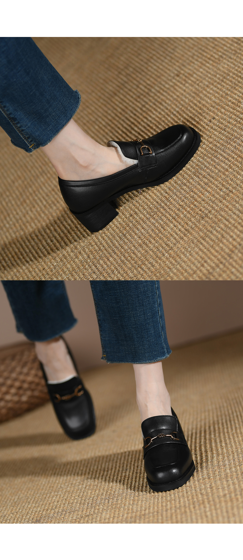 圆头复古低跟简约单鞋,乐福鞋一脚蹬小皮鞋 MT-MD7729