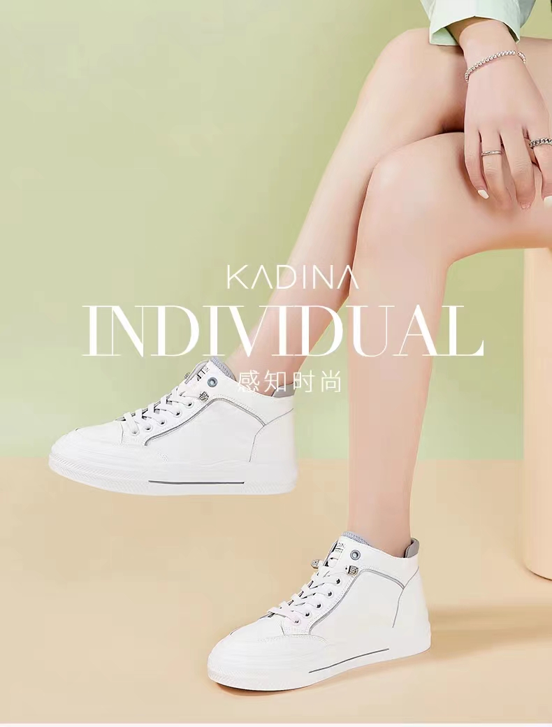 卡迪娜23年春季新款松紧带平跟板鞋深口女休闲鞋小白鞋KC232406