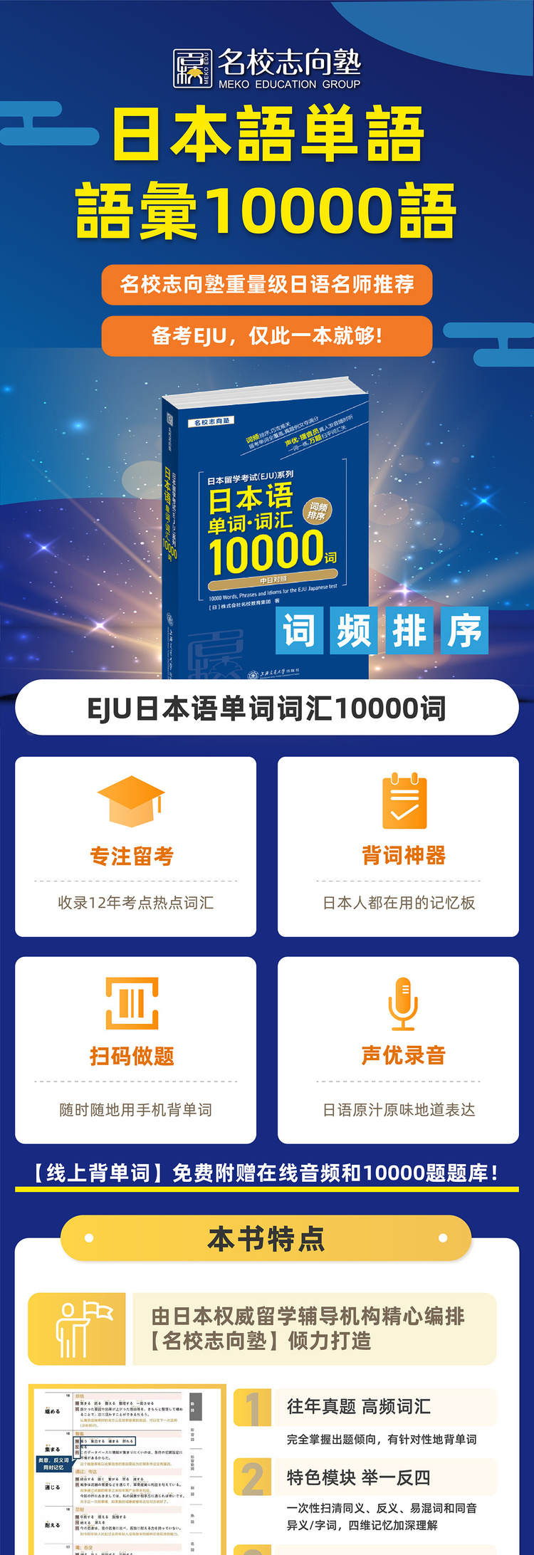 日本语单词.词汇10000词 9787313221704 日本留学考试(EJU)系列 中日双语辅导教