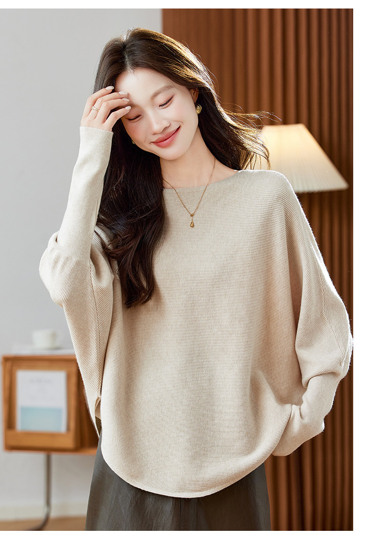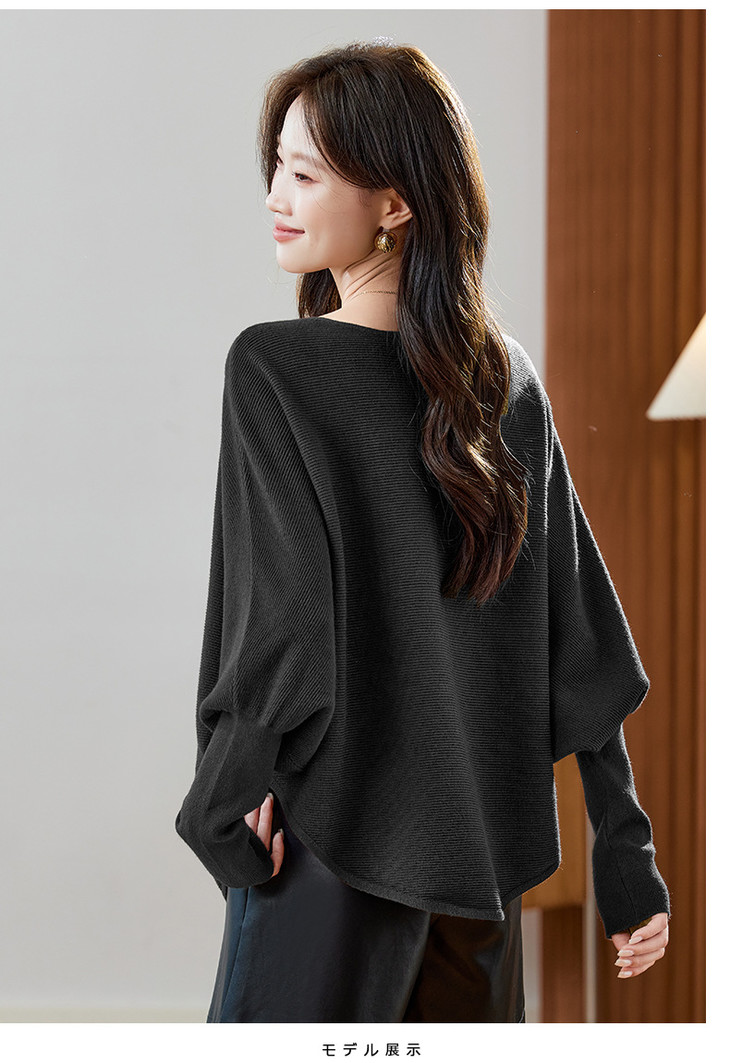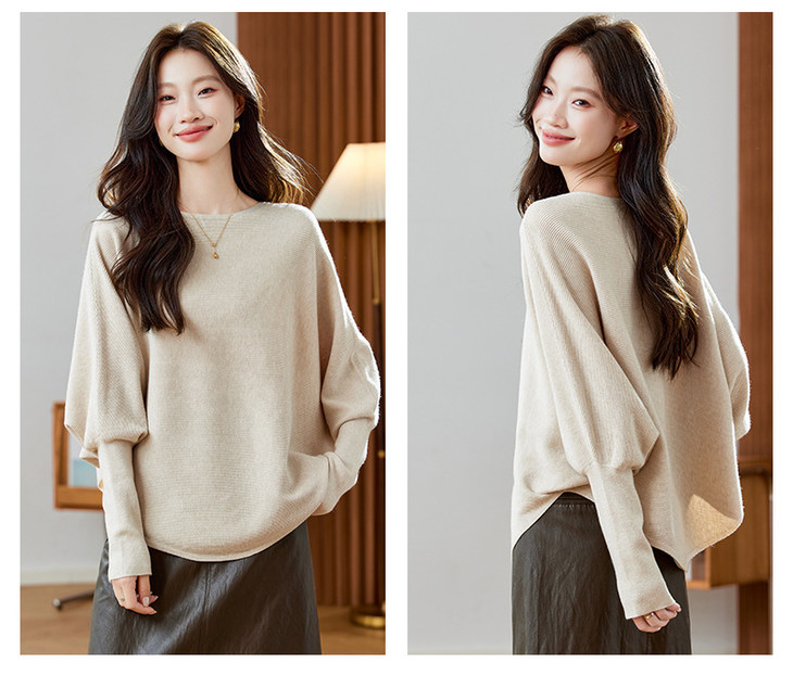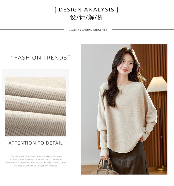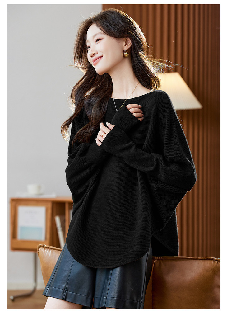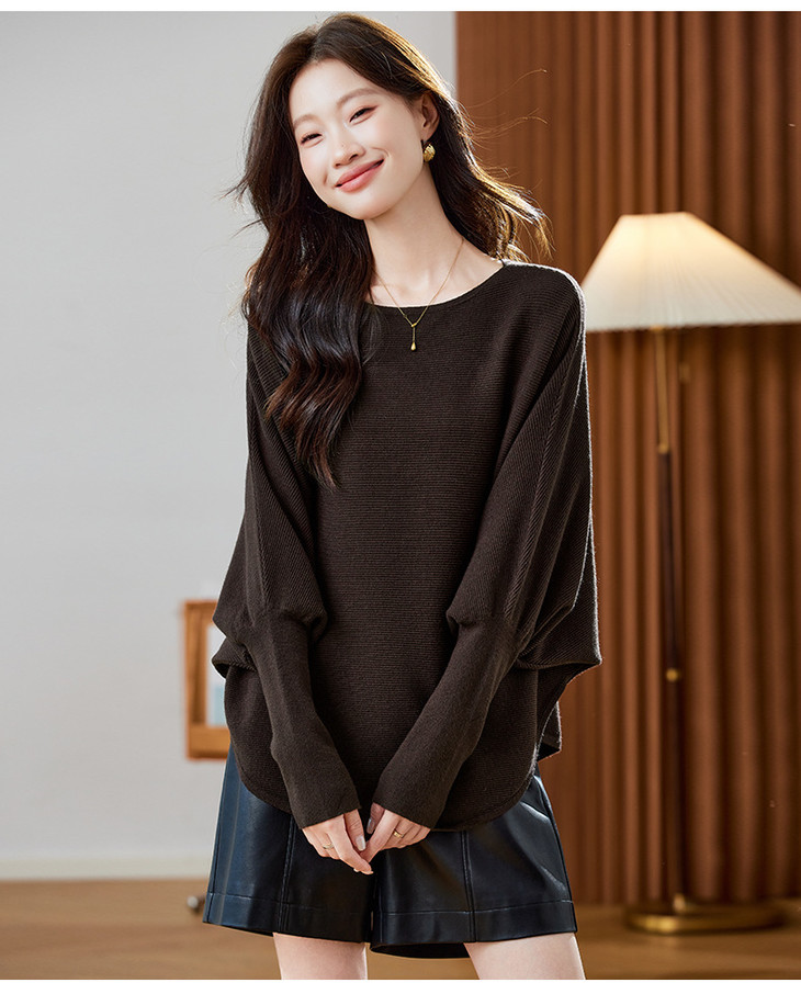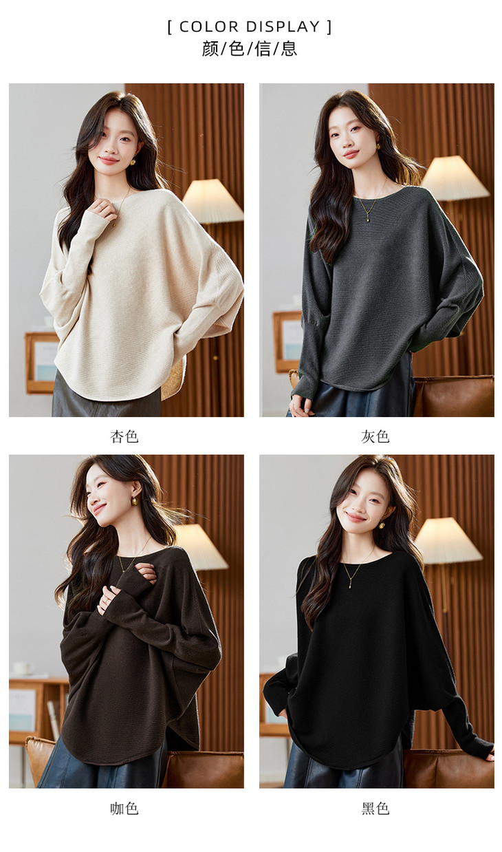 不规则蝙蝠袖毛衣,宽松慵懒风高级感针织打底衫上衣CC-QL-8347