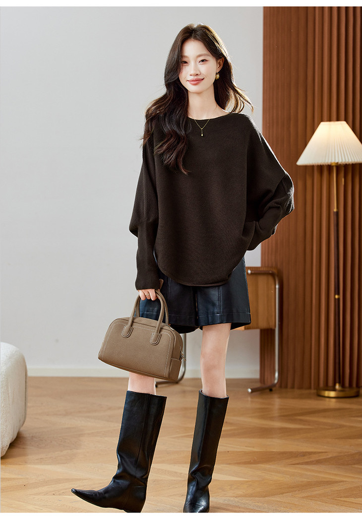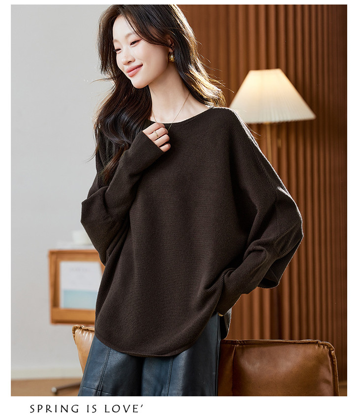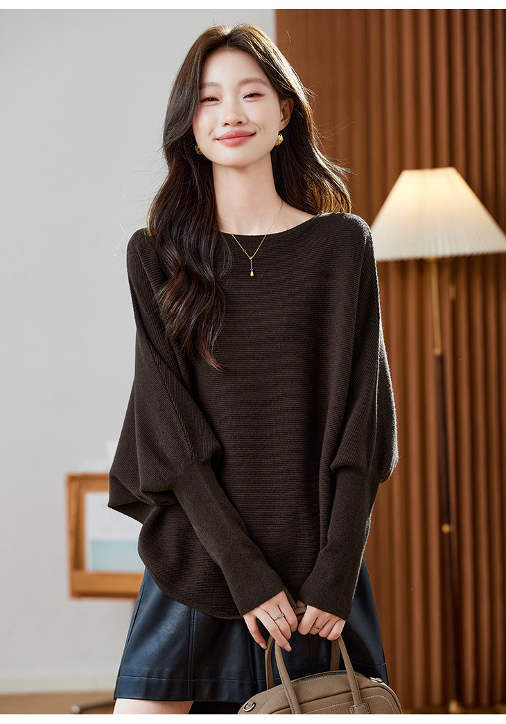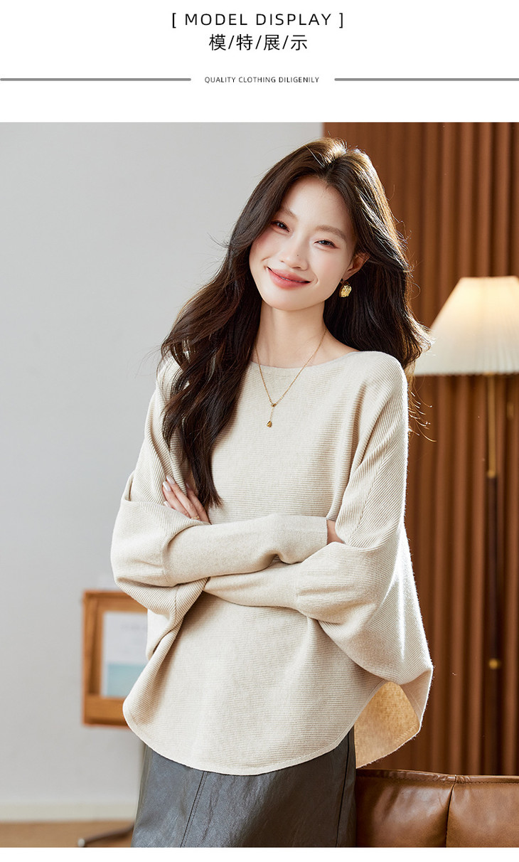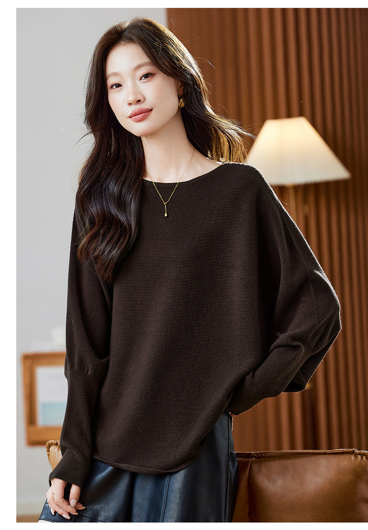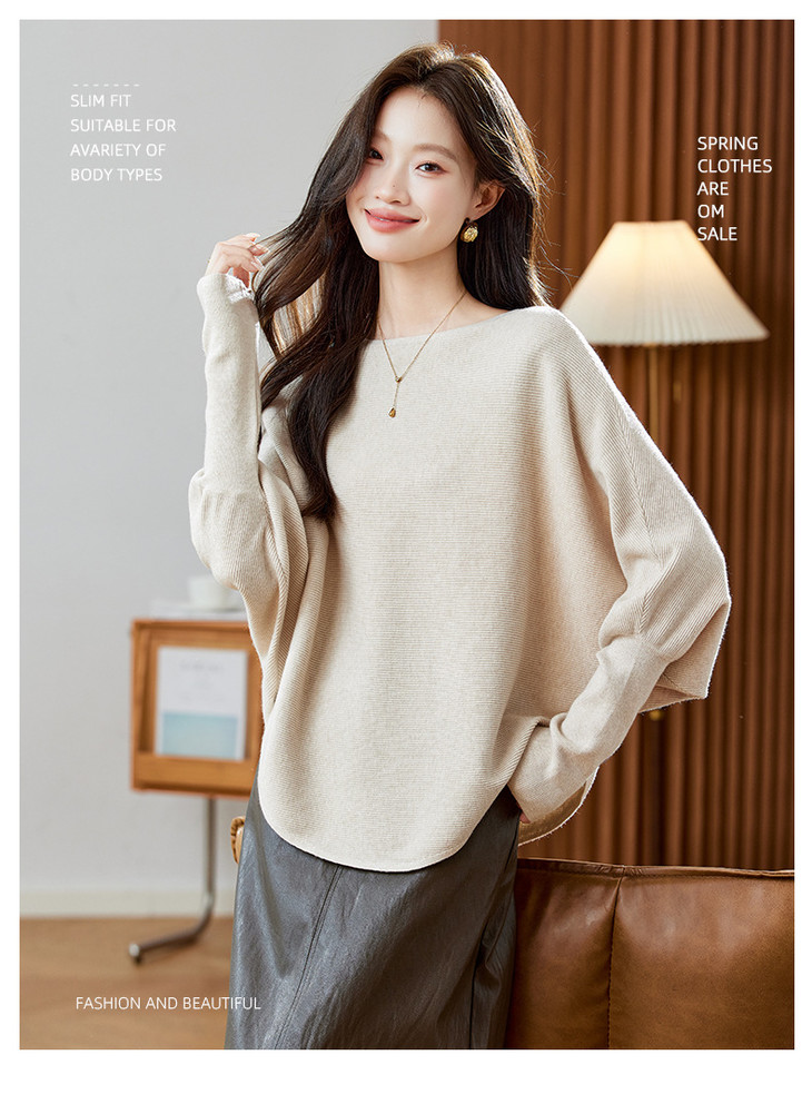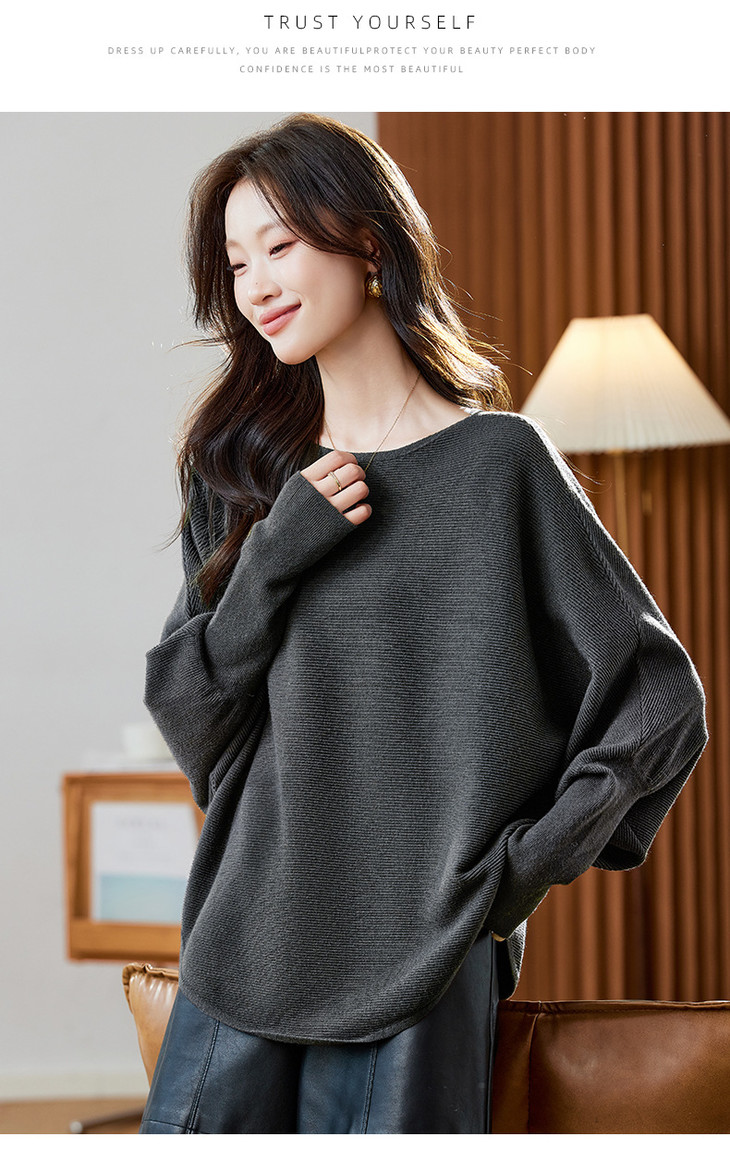 不规则蝙蝠袖毛衣,宽松慵懒风高级感针织打底衫上衣CC-QL-8347