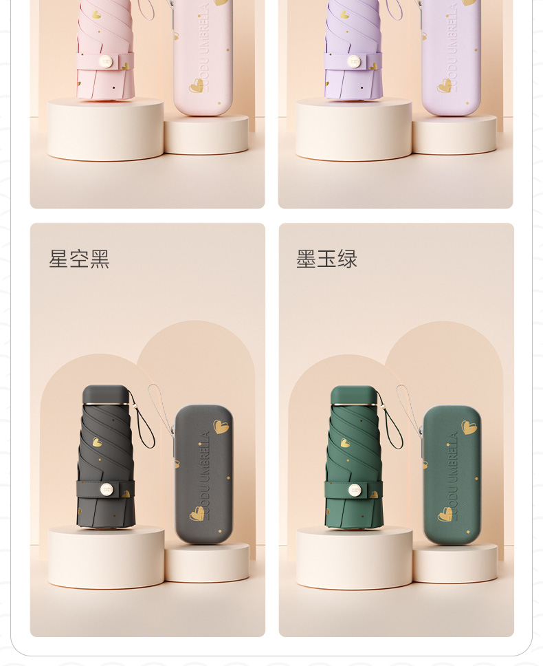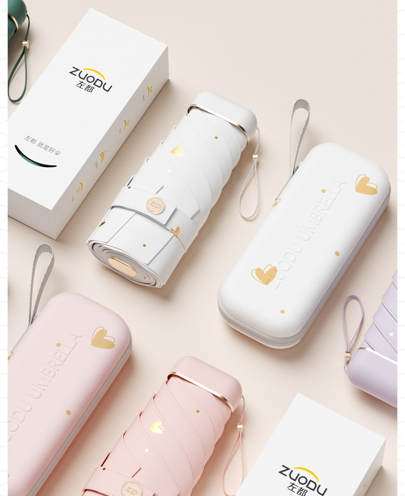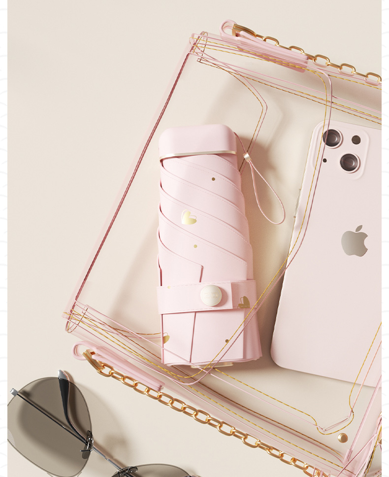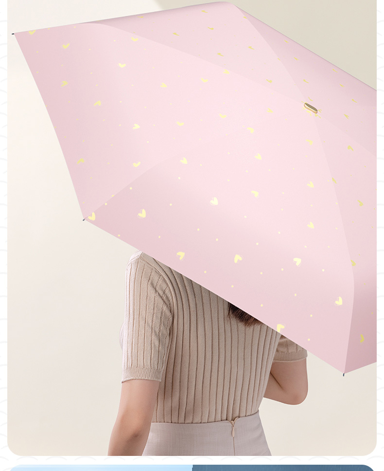 【口袋伞】左都烫金爱心扁伞太阳伞 晴雨两用 防紫外线