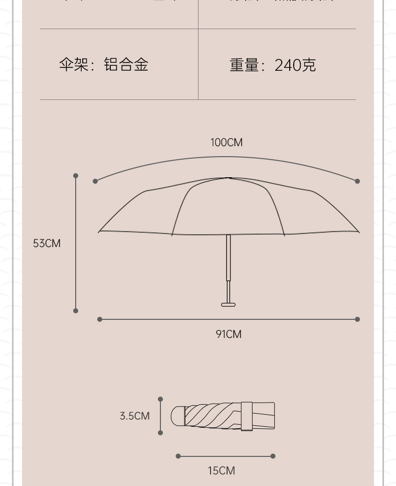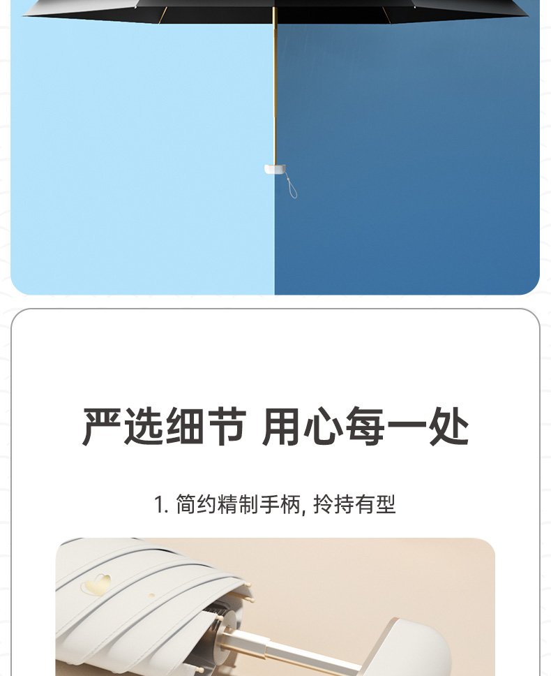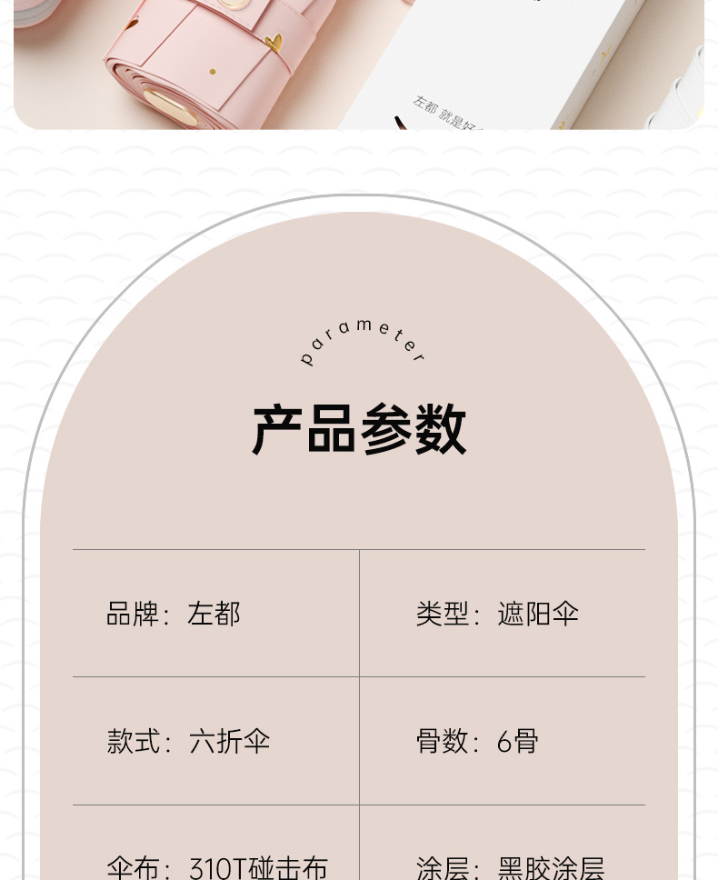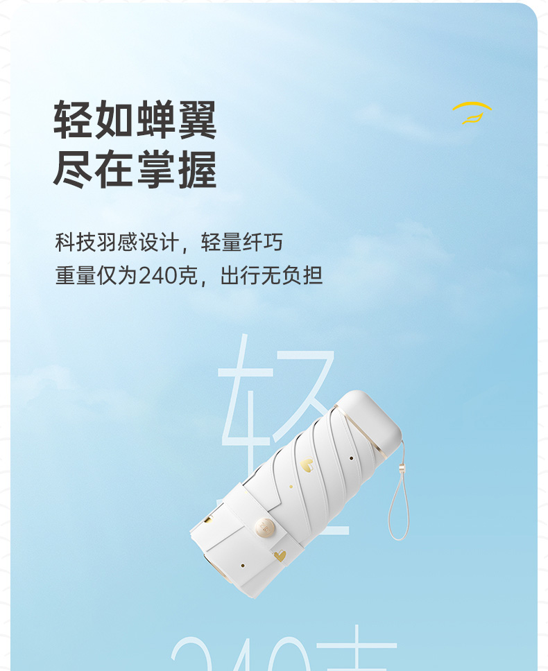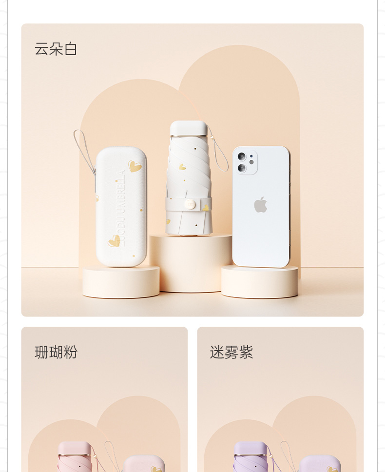 【口袋伞】左都烫金爱心扁伞太阳伞 晴雨两用 防紫外线