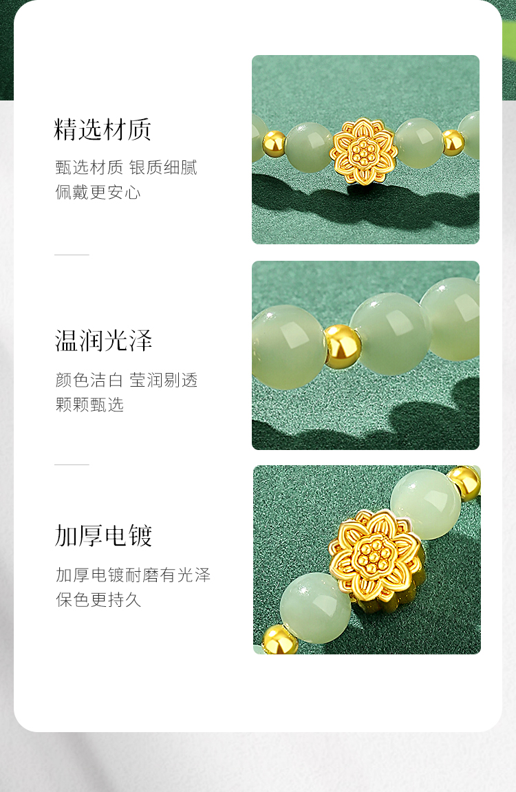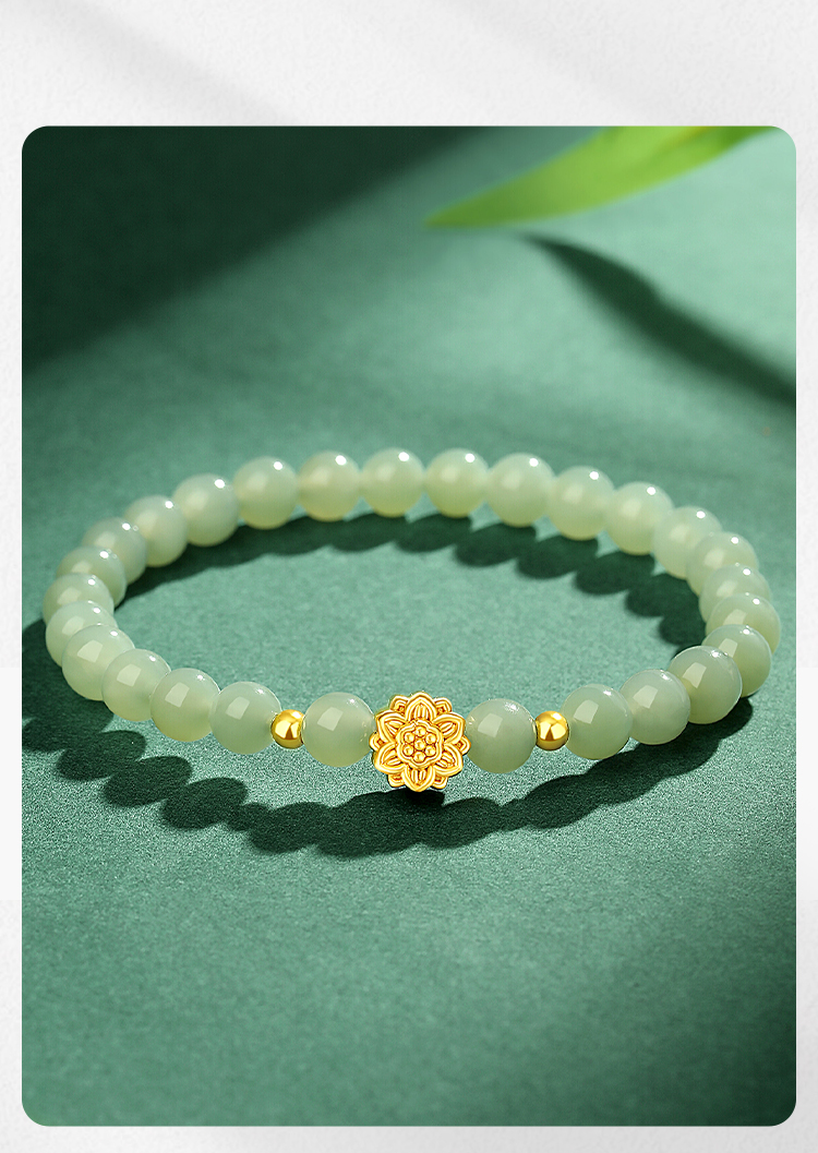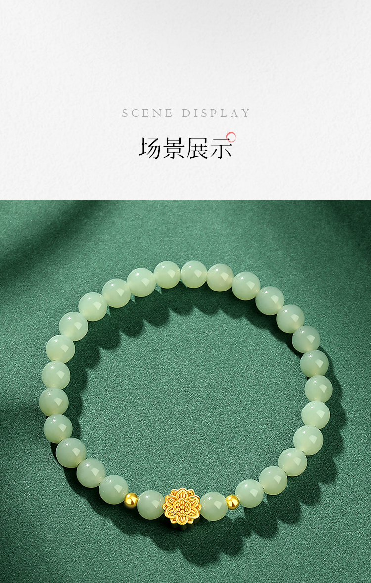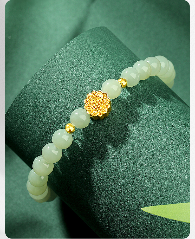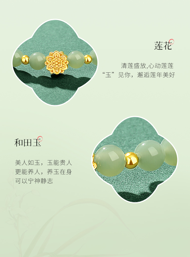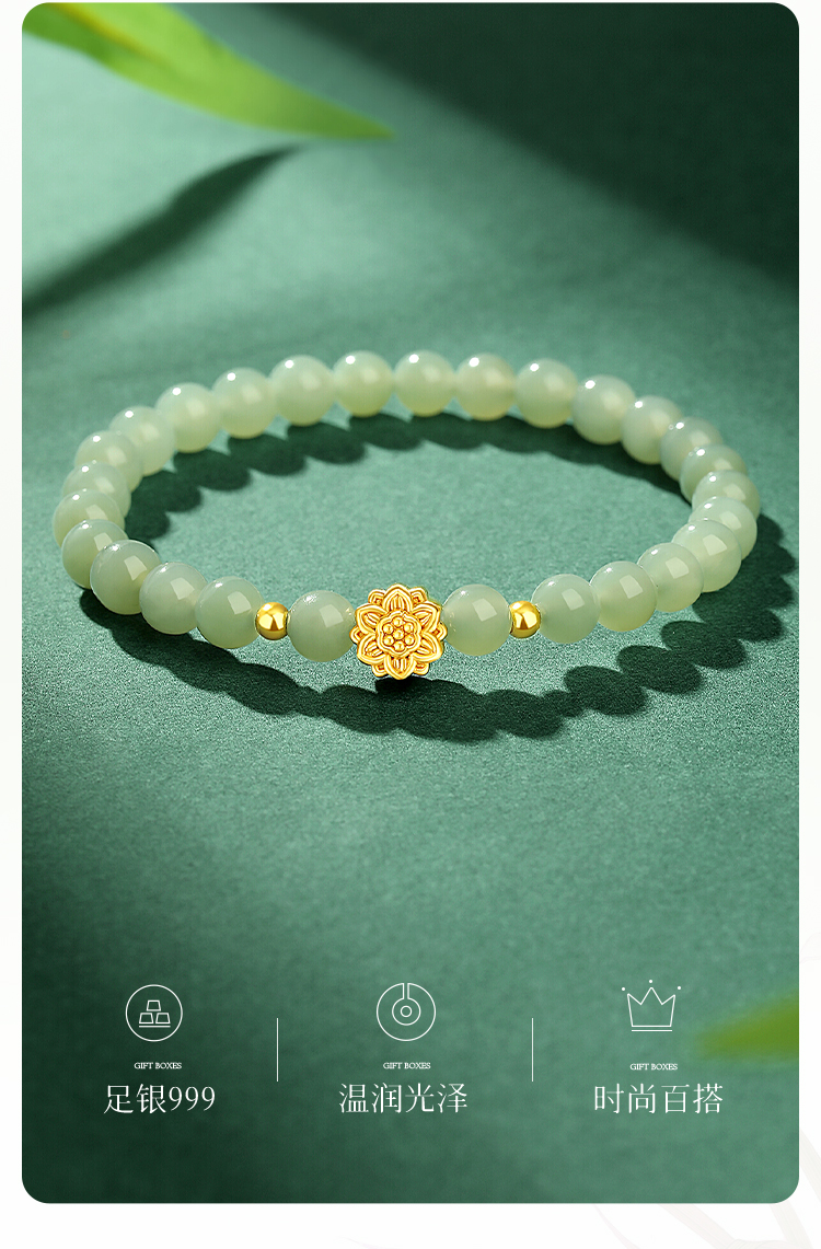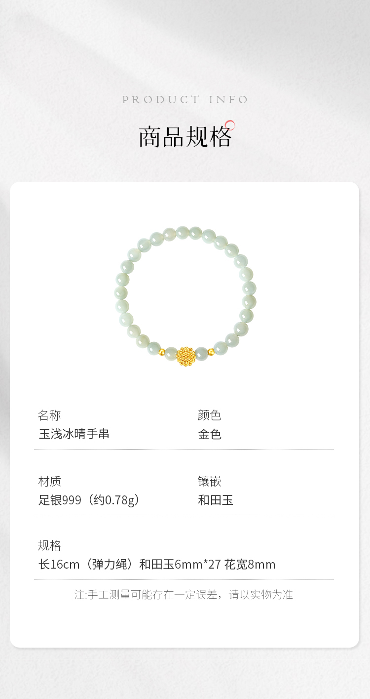 【Winy】 足银 999镀金花扣国风手链 浅冰晴和田玉手串女 天然冰透水润和田玉气质手饰