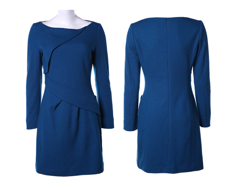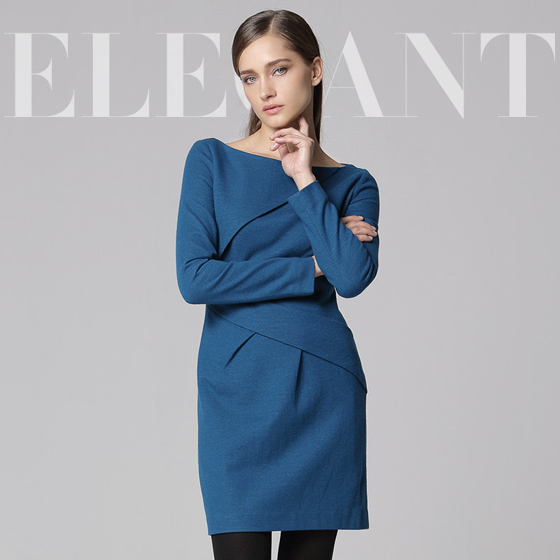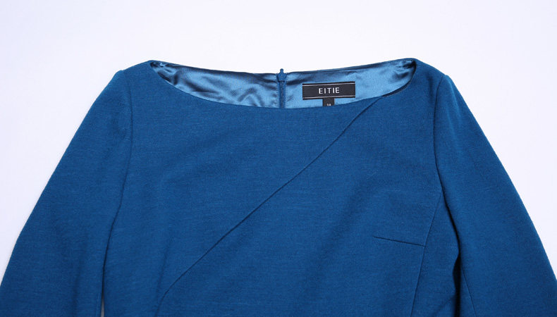 EITIE爱特爱秋冬纯色英伦时尚气质收腰拼接长袖连衣裙一步裙女5007778