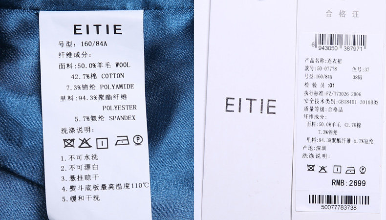 | 洗涤说明: | 分开洗涤 小心手洗 切勿浸泡 不可漂白 | ||||||||||||