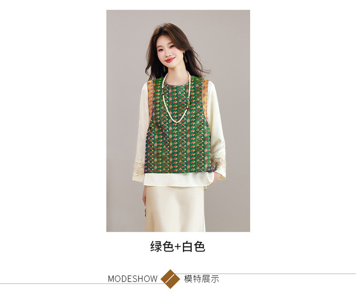 新中式减龄百搭圆领撞色马甲+刺绣衬衫打底两件套 商品图4