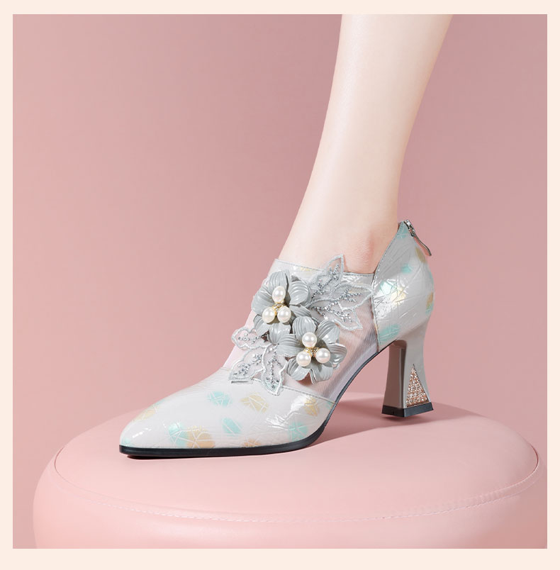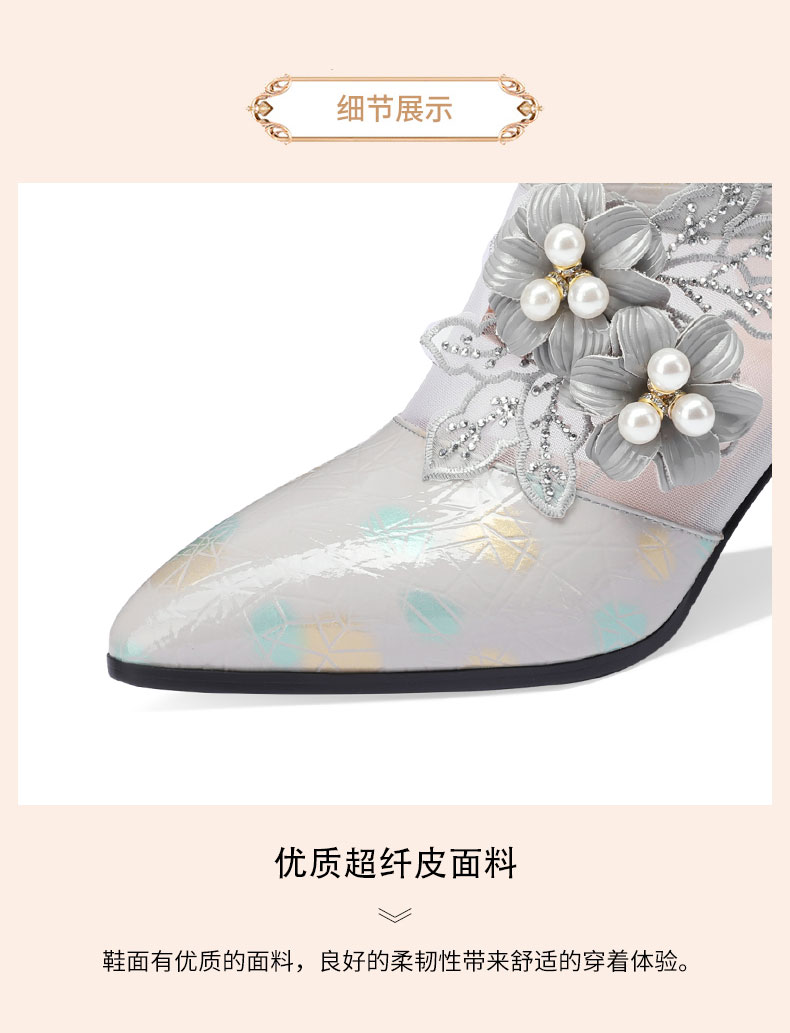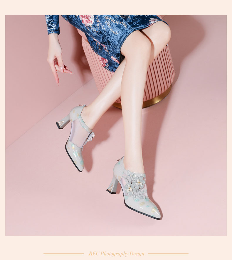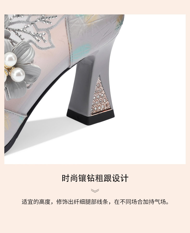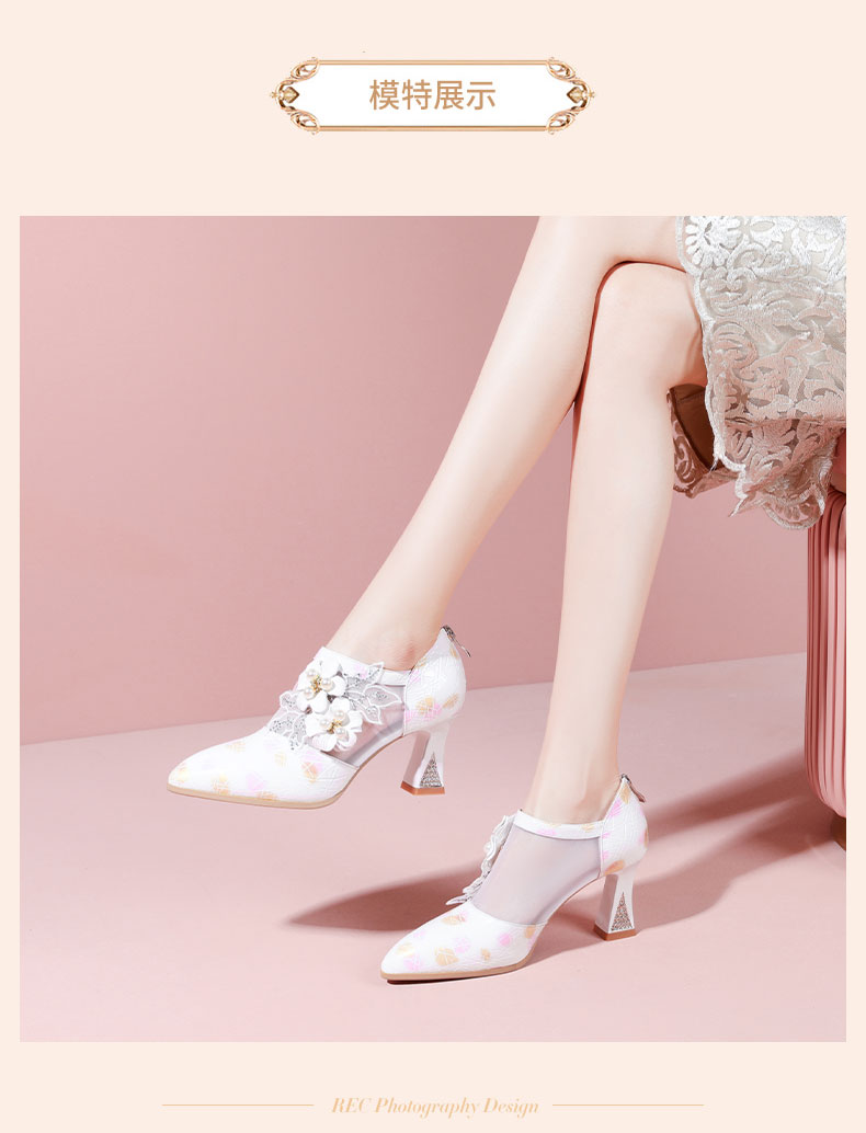 时尚个性,压花皮高跟网纱拼接凉鞋YSML-A025-K441-1