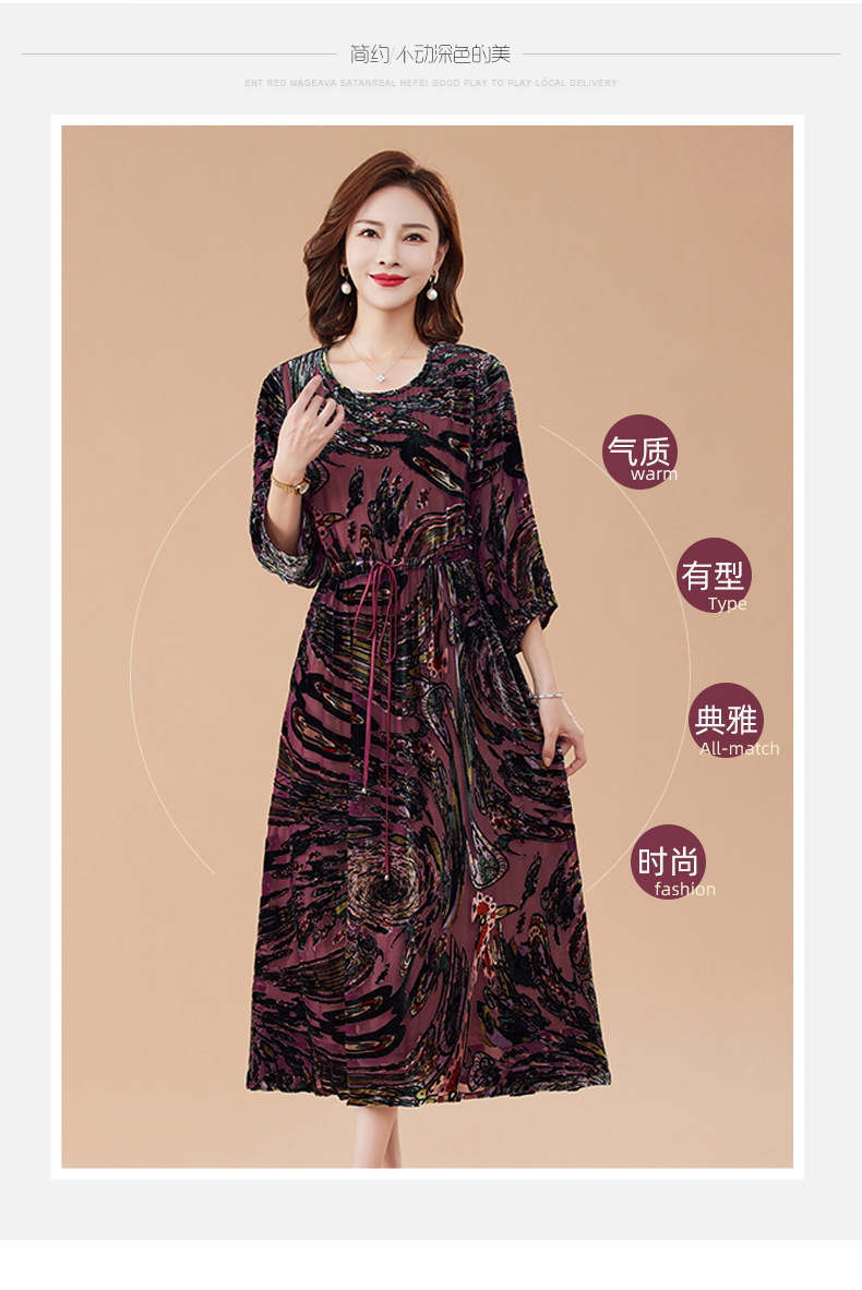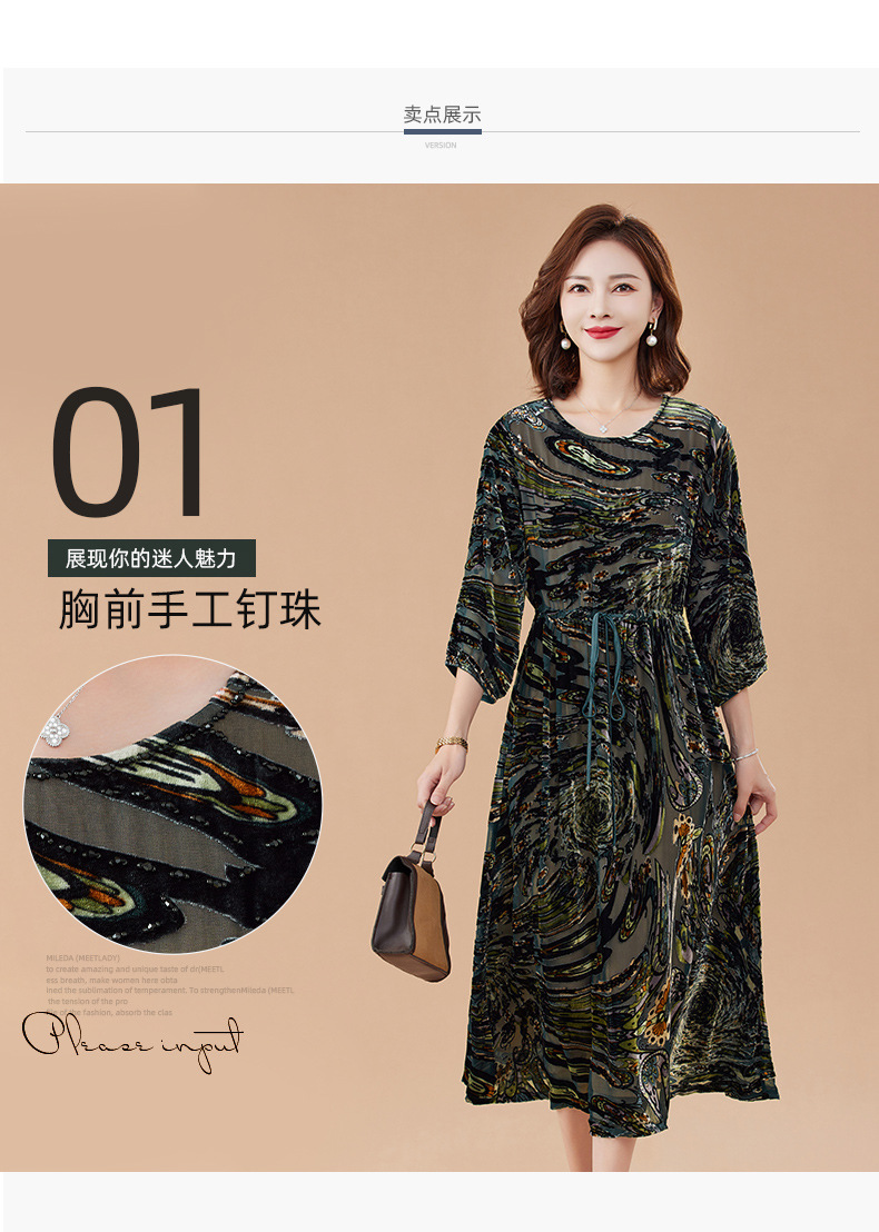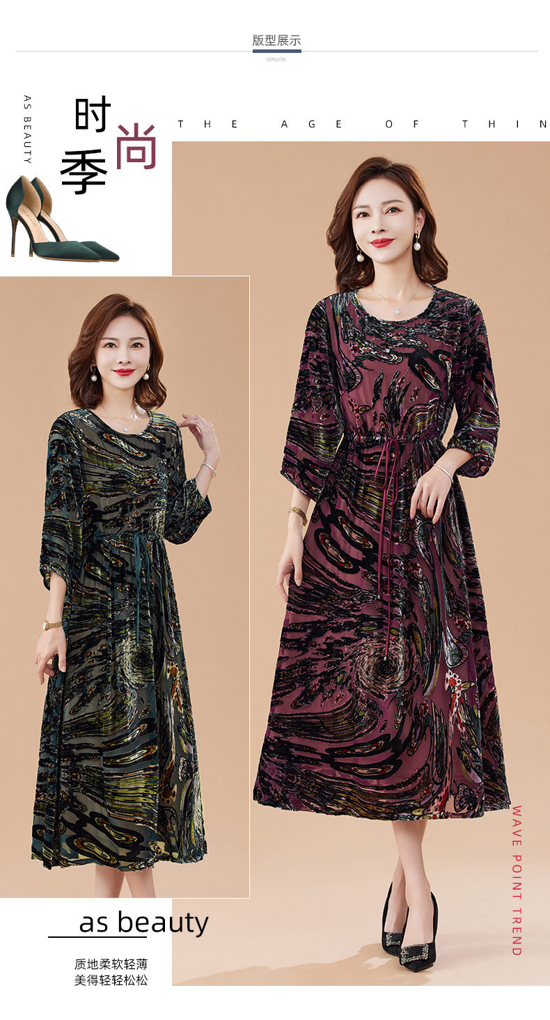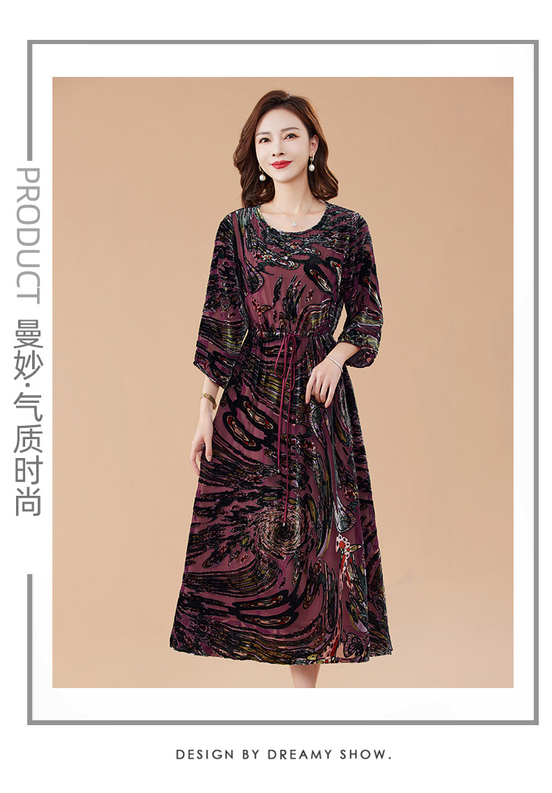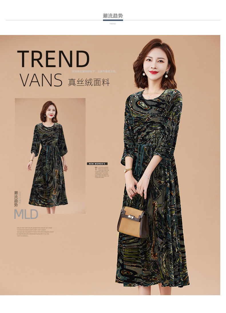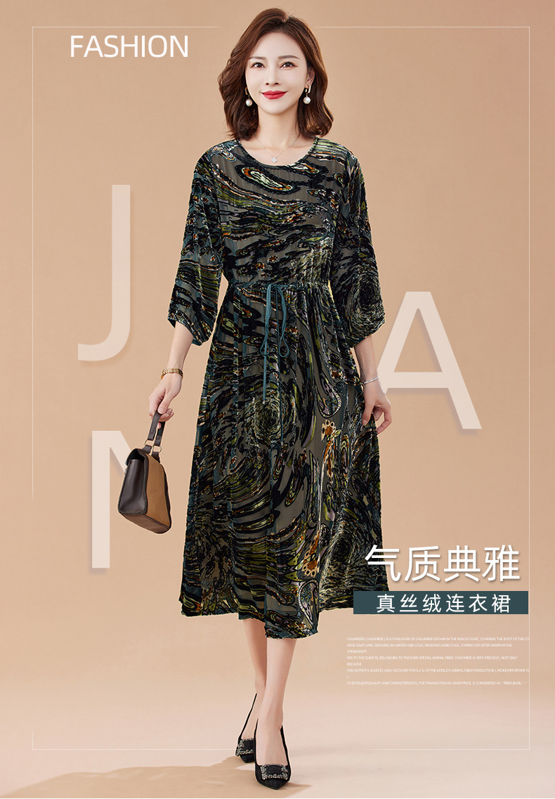 丁摩 真丝绒连衣裙新款春秋桑蚕丝植绒裙子女4ZF-2403