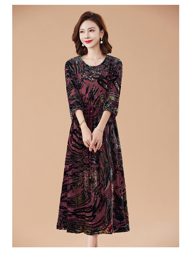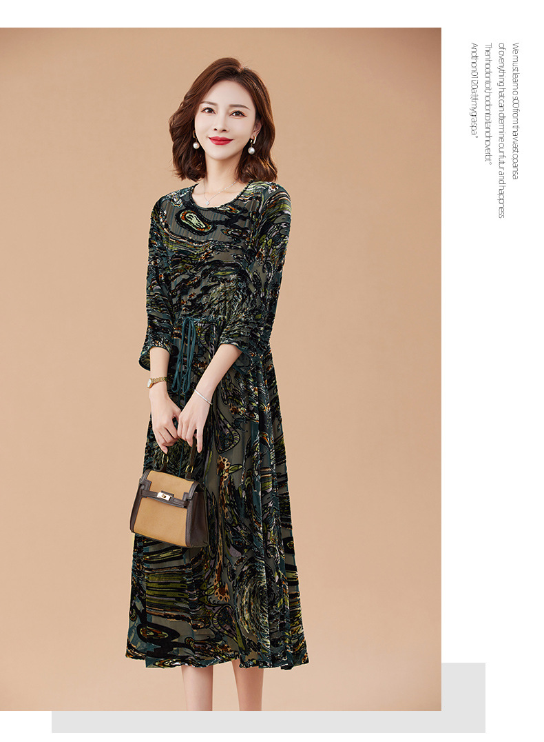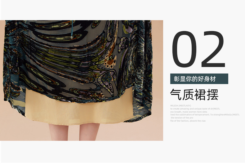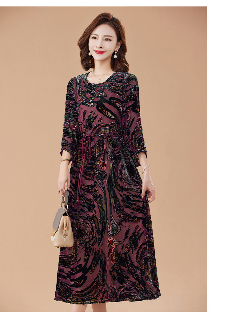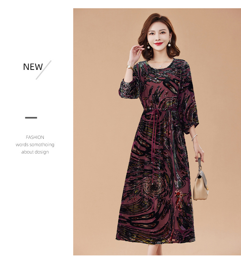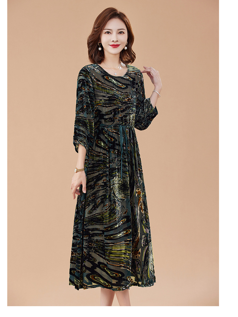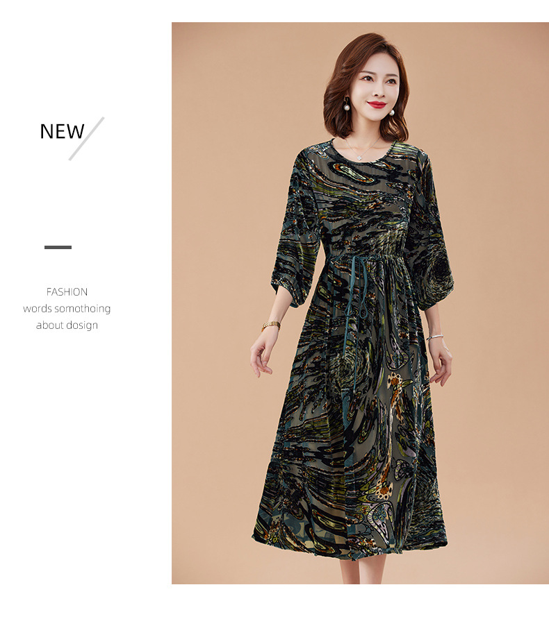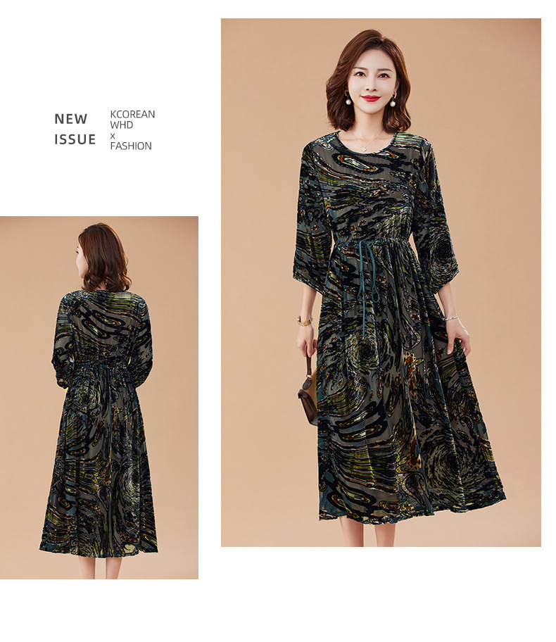 丁摩 真丝绒连衣裙新款春秋桑蚕丝植绒裙子女4ZF-2403
