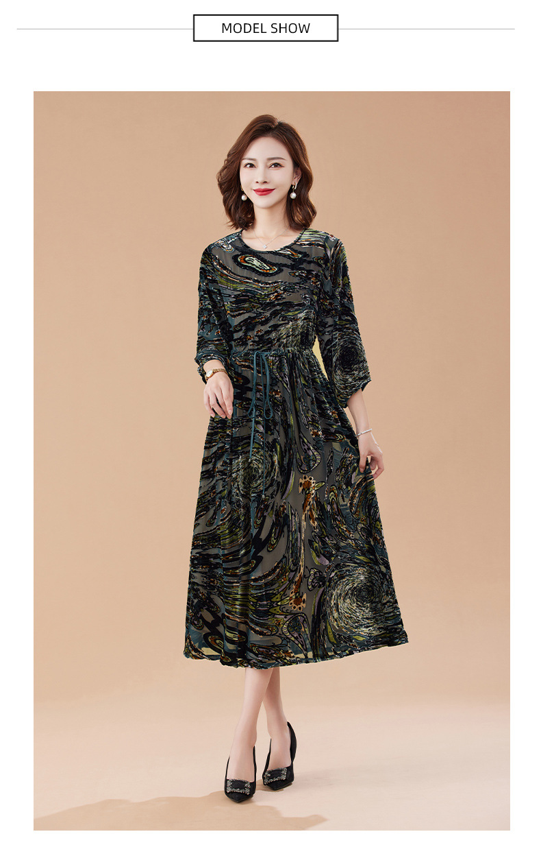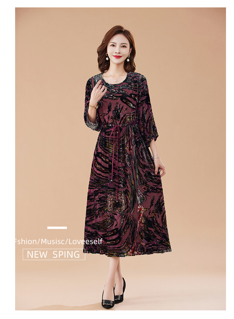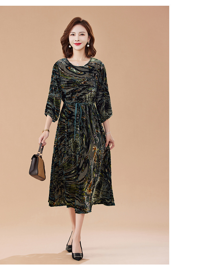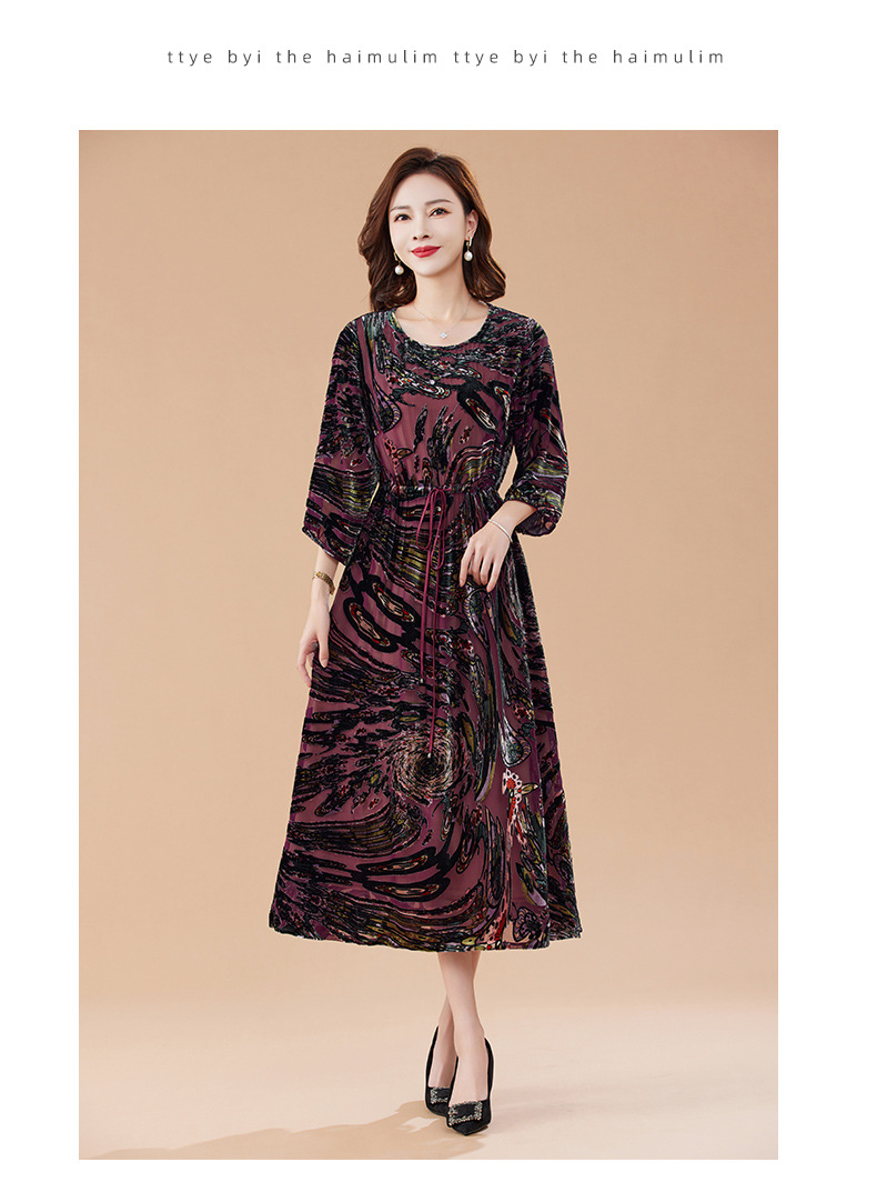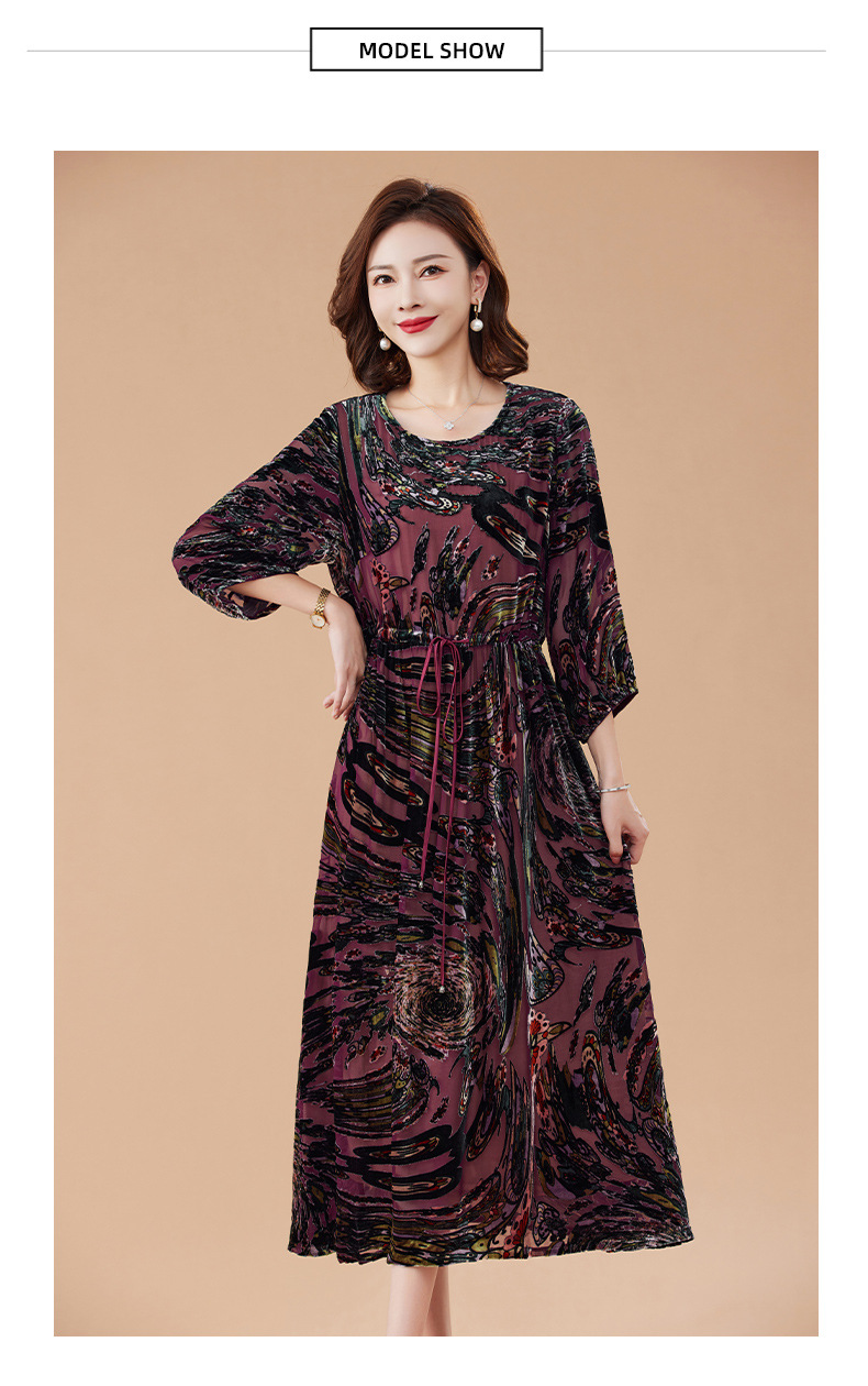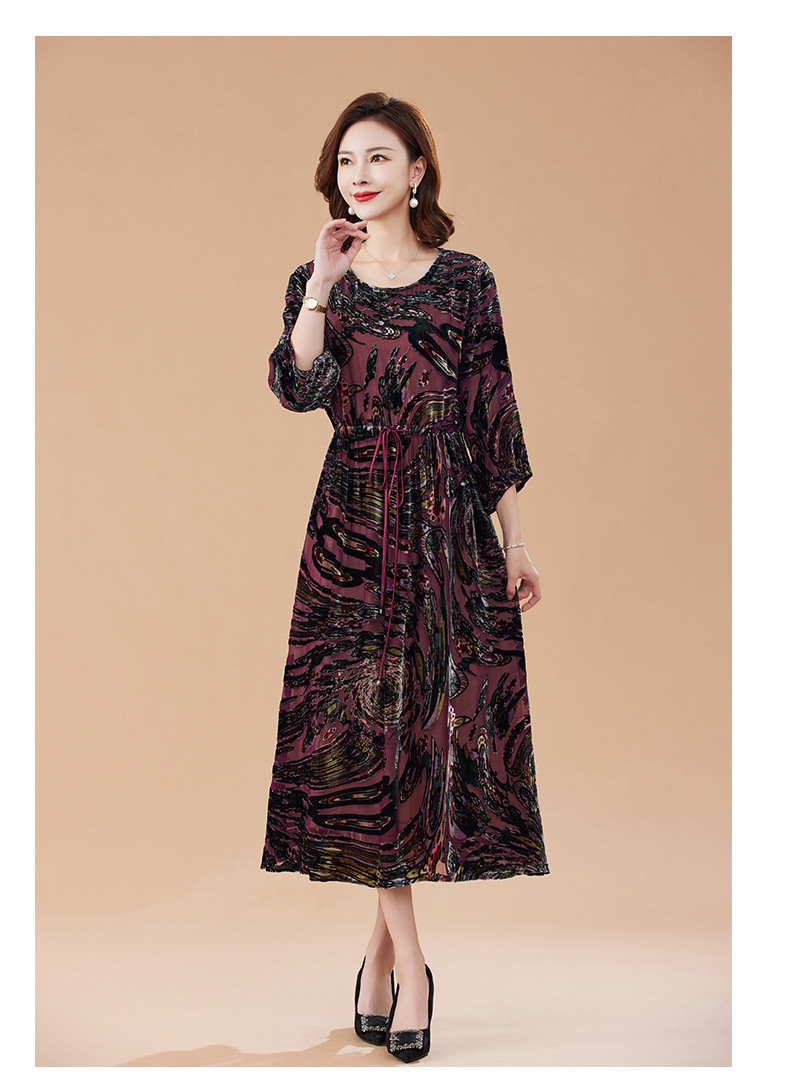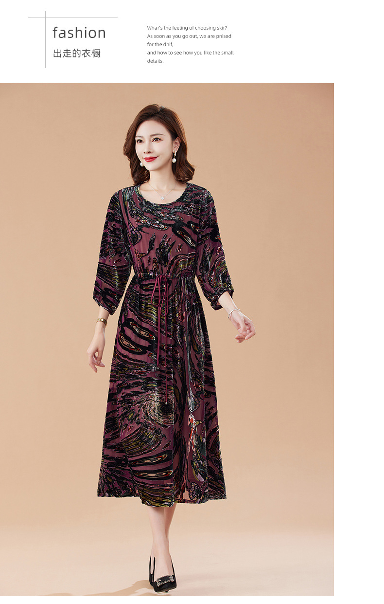 丁摩 真丝绒连衣裙新款春秋桑蚕丝植绒裙子女4ZF-2403