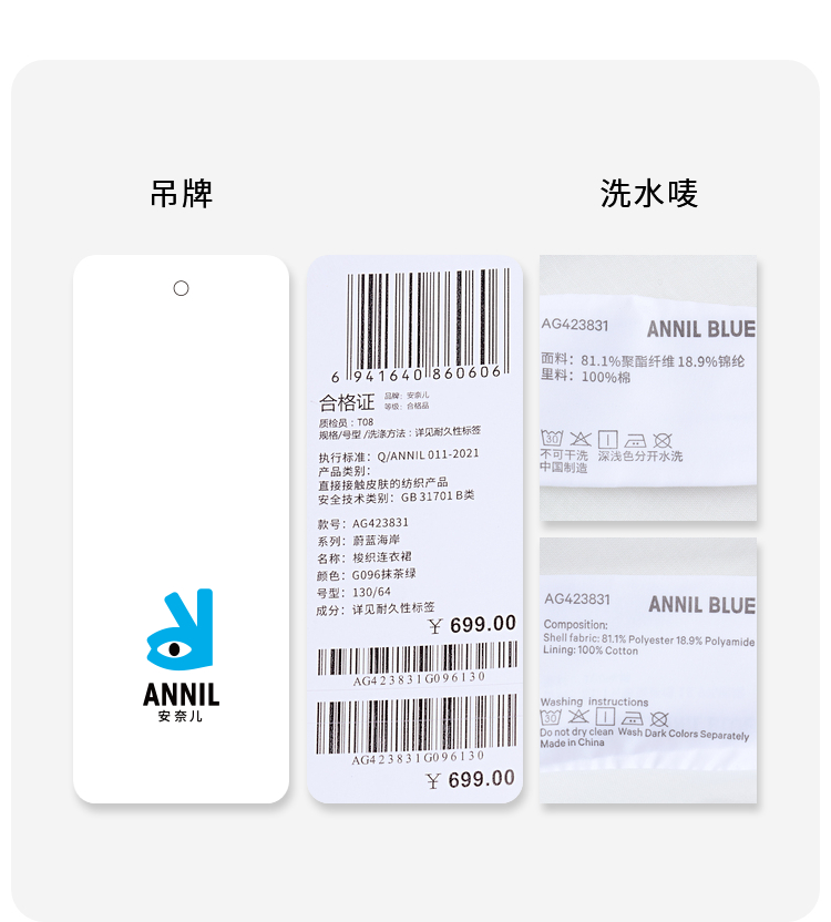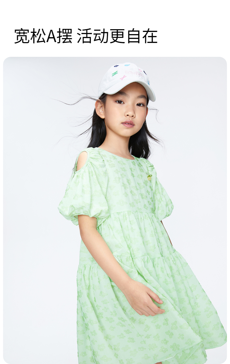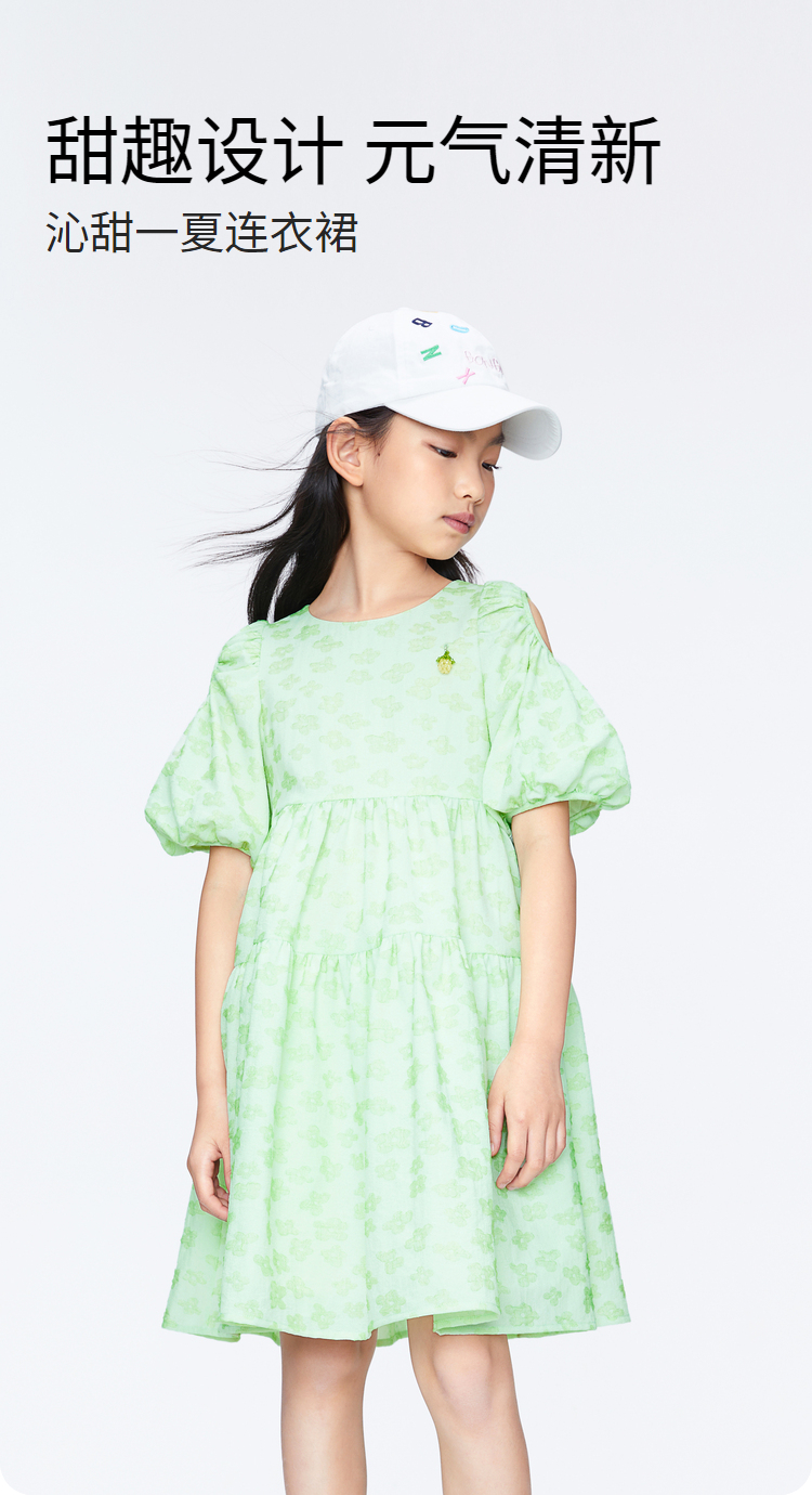 女童泡泡袖甜美连衣裙裙子BLUE新款安奈儿童装实体店同款AG423831